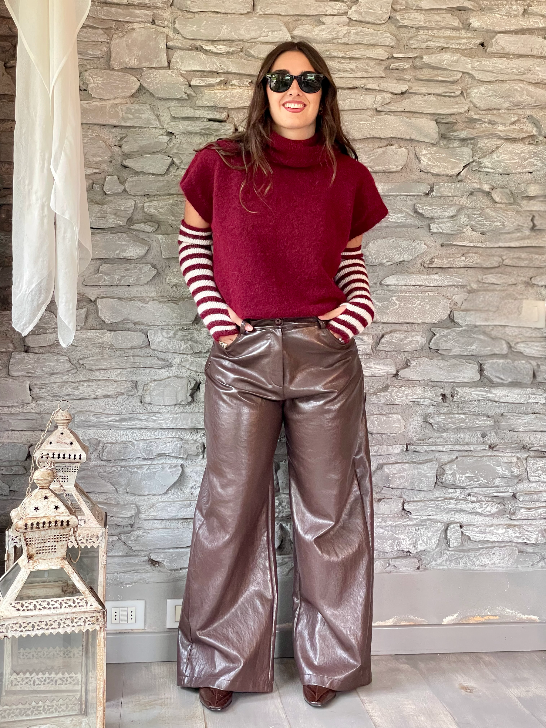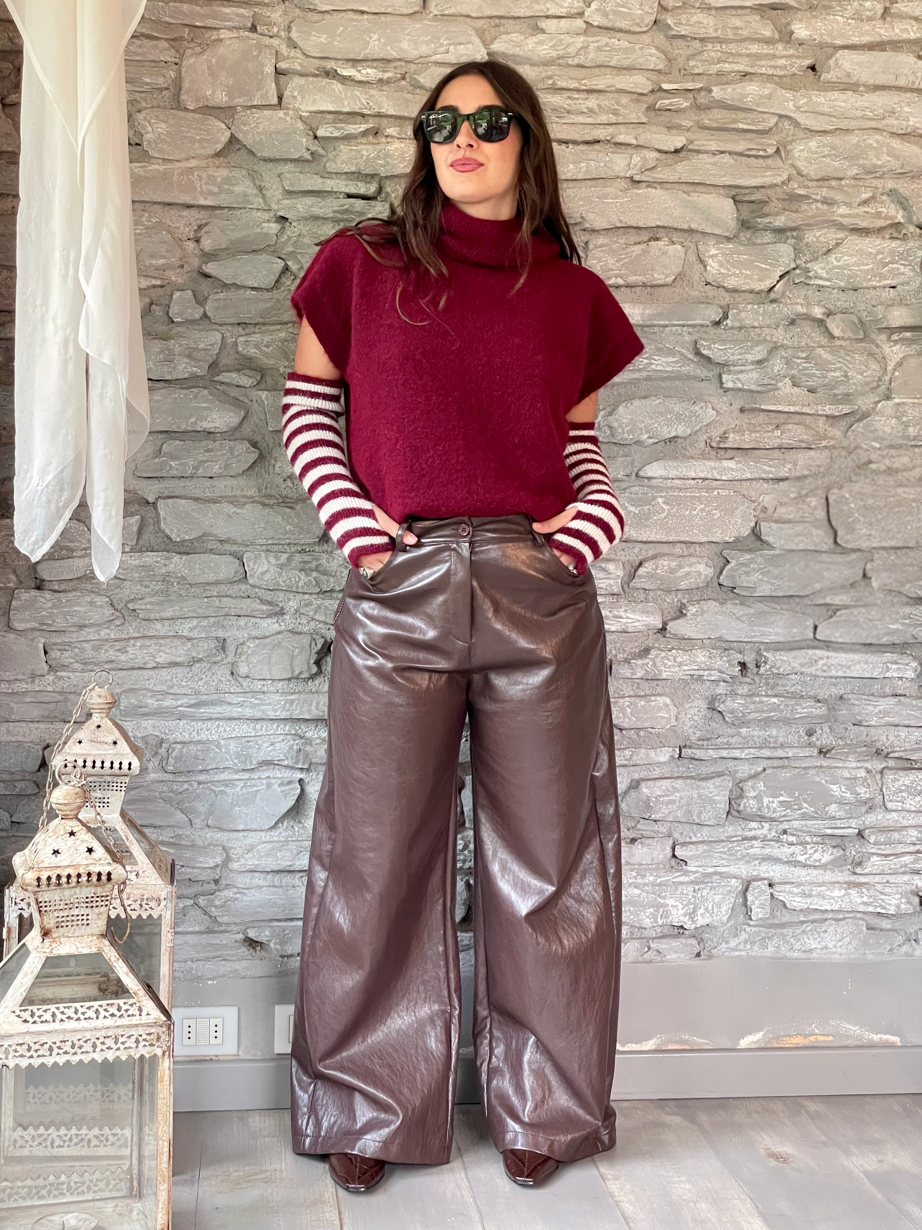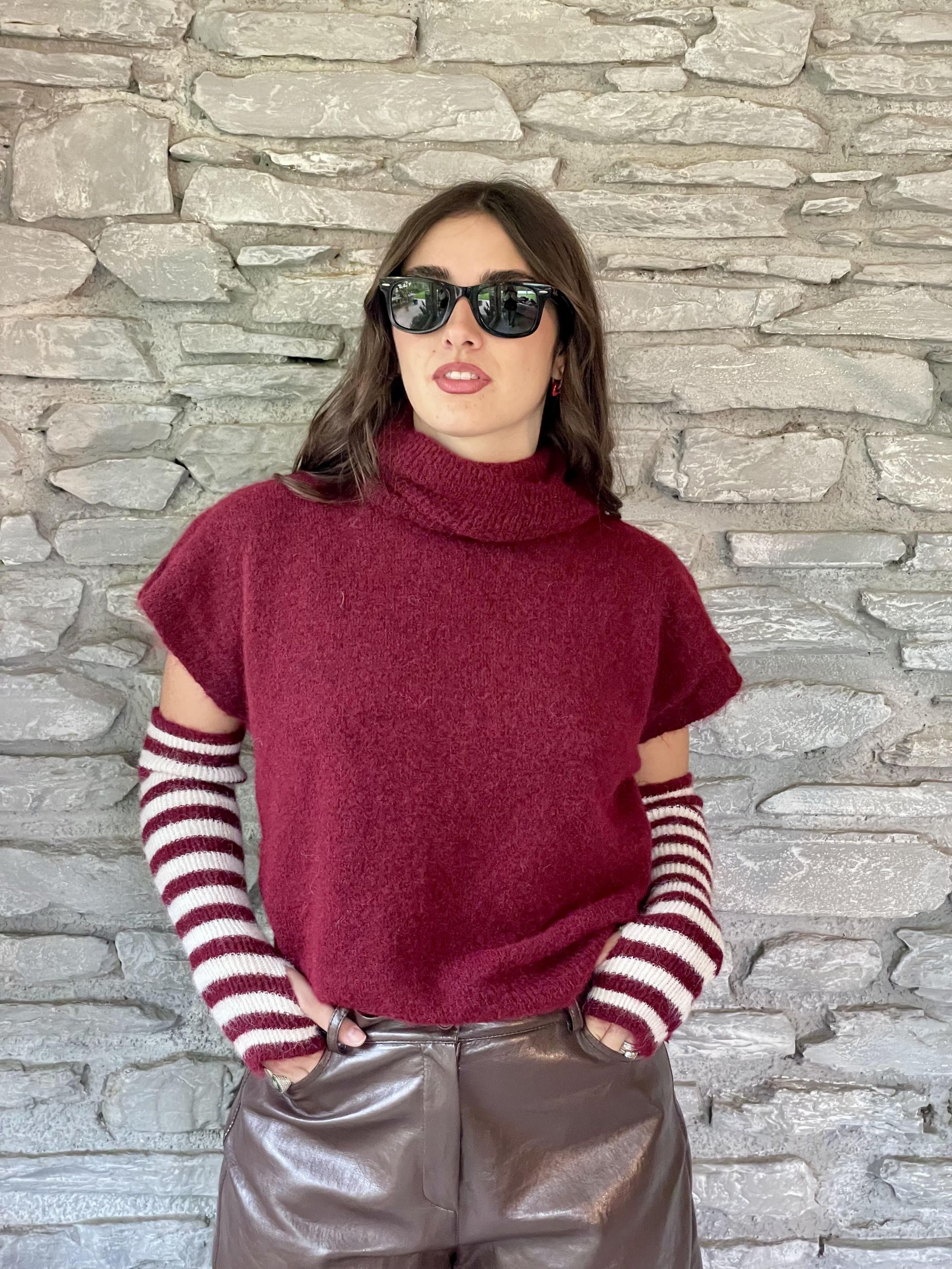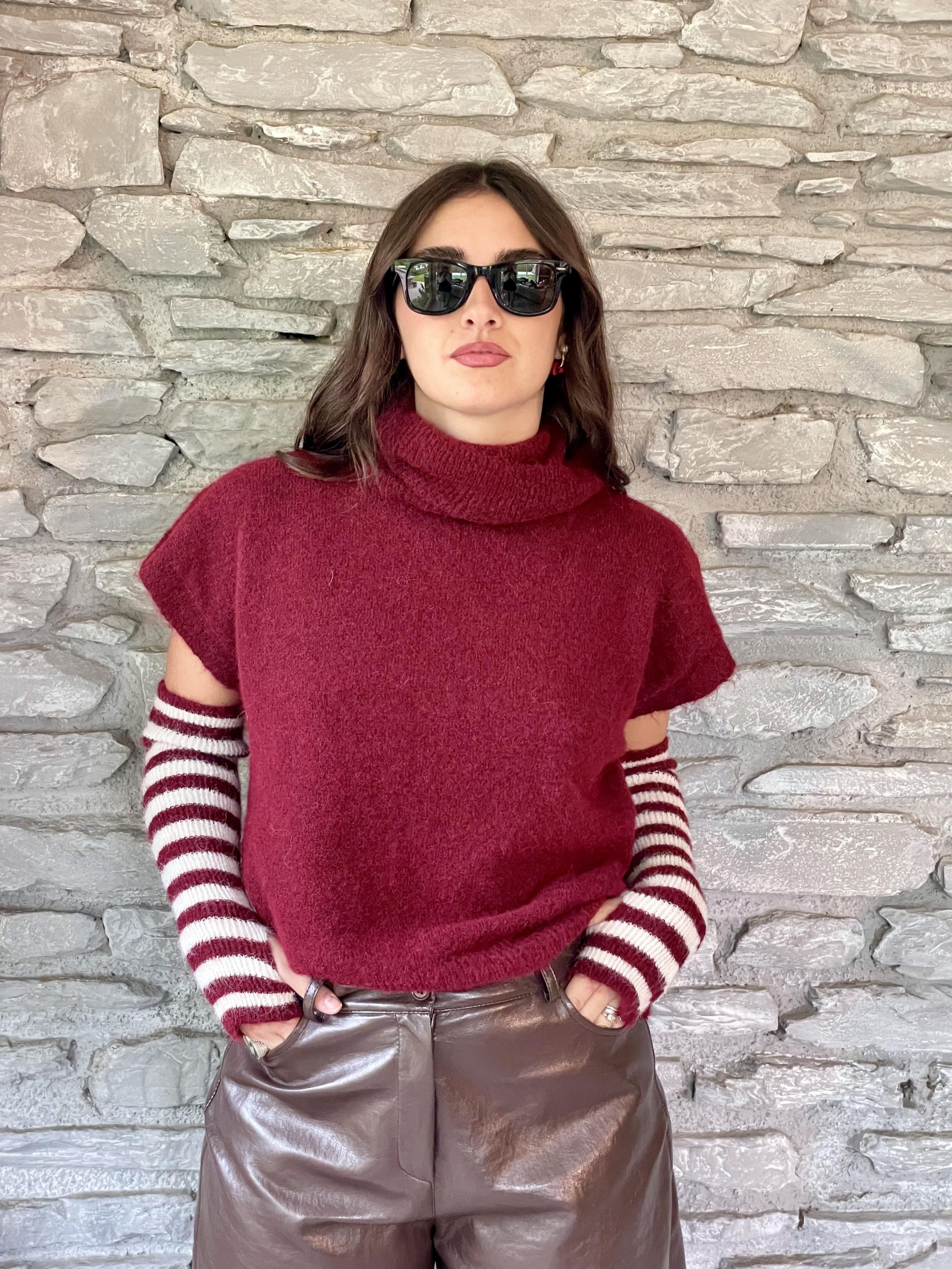 TENSIONE IN - GILET BORDEAUX CON MANICOTTI A RIGHE ART. 26031