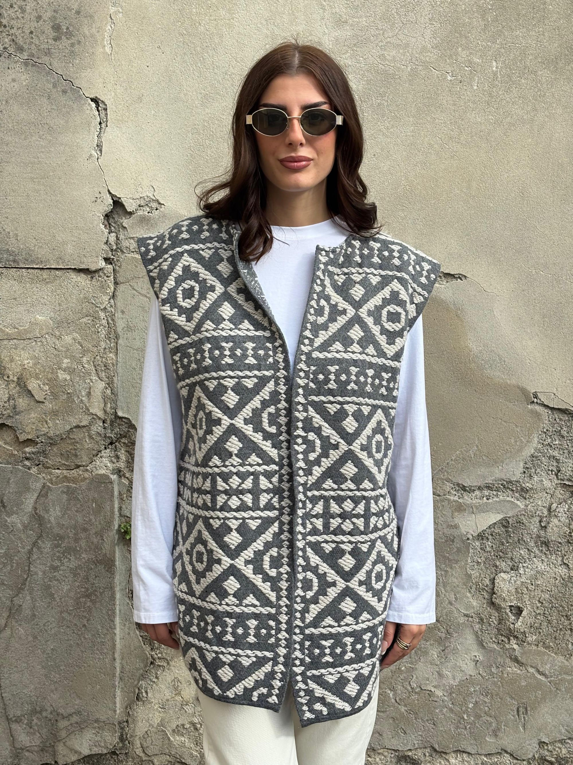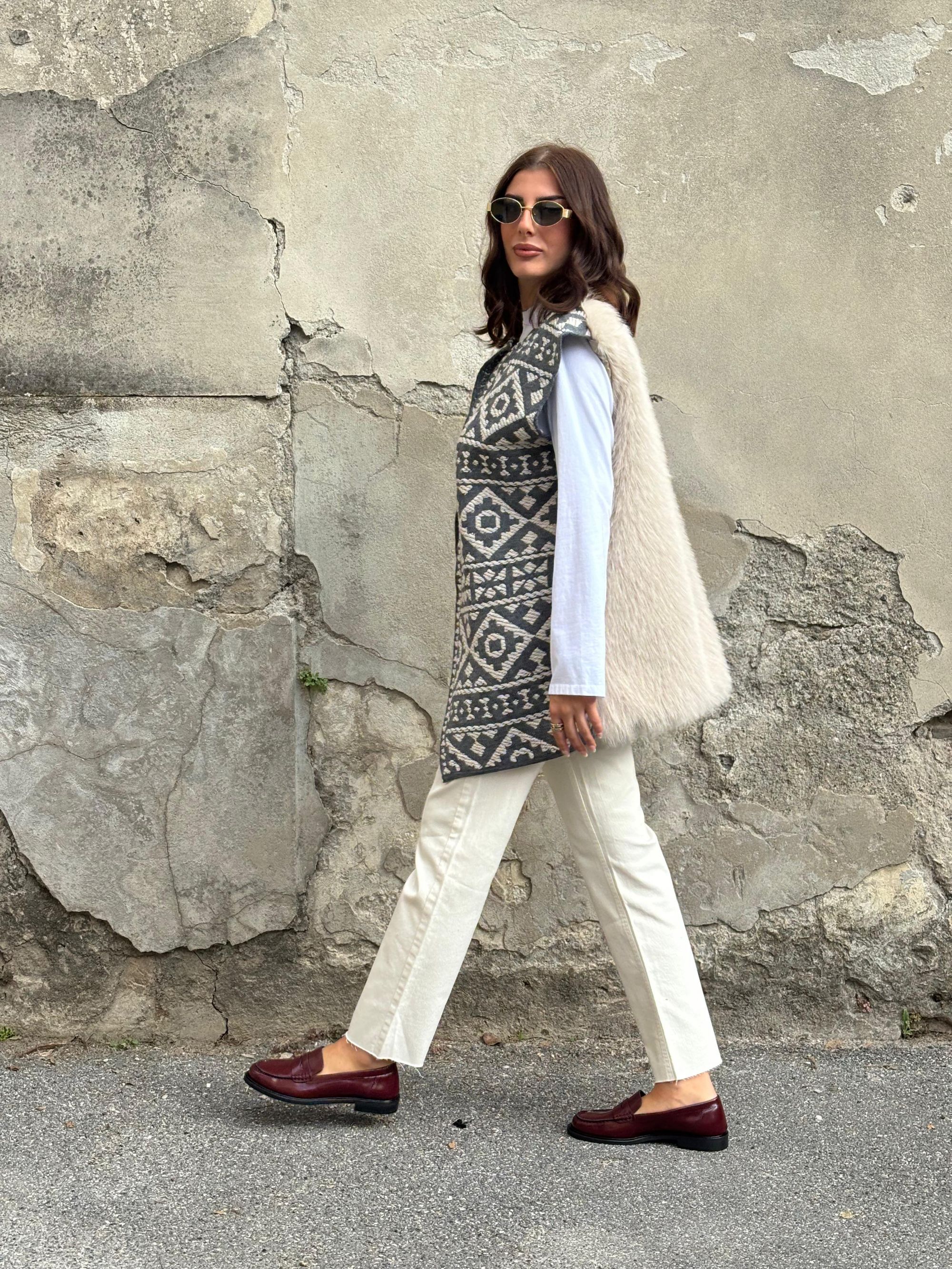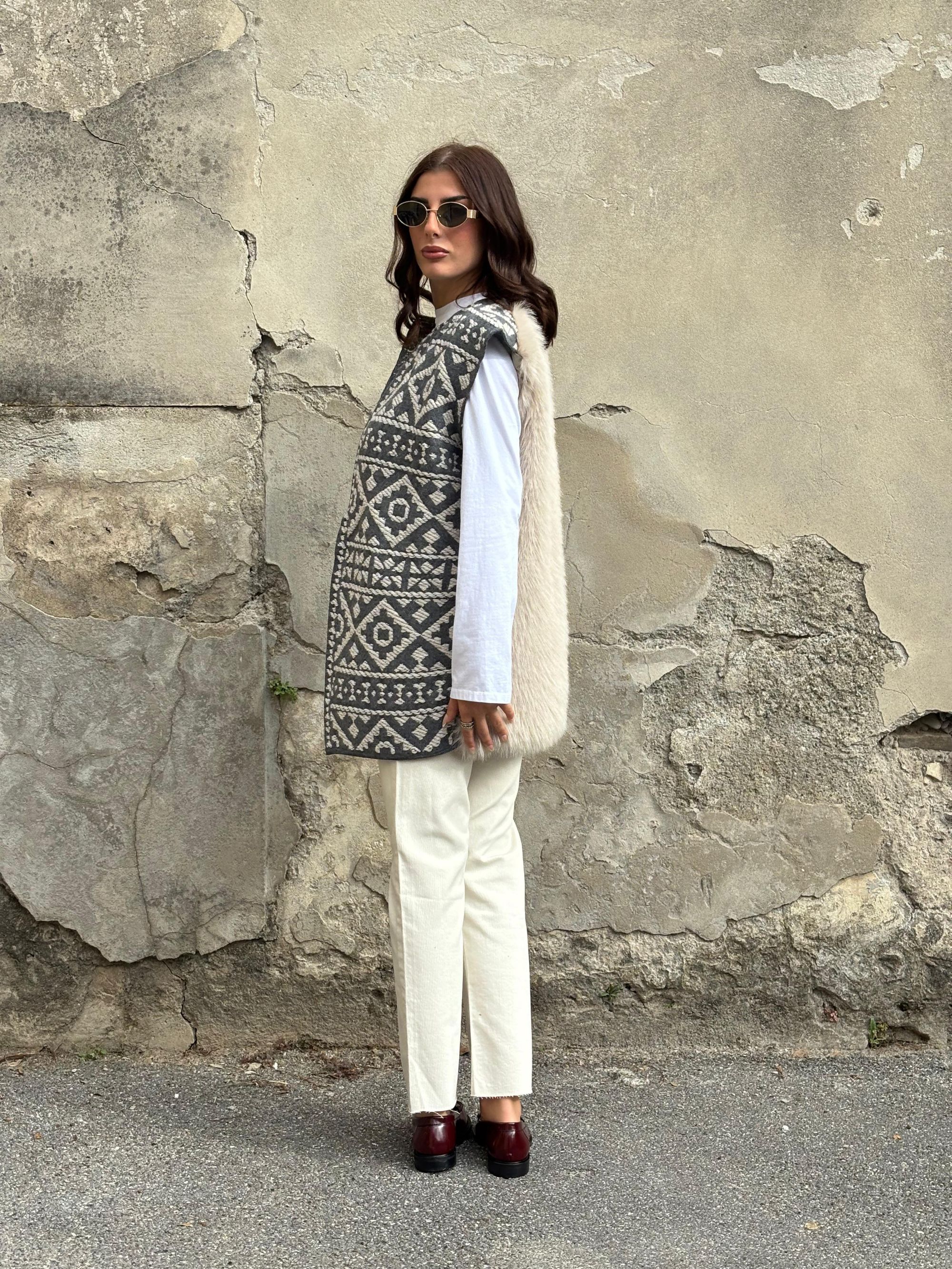 TENSIONE IN - GILET ETNICO GRIGIO CON ECOPELLICCIA ART. W5HMG80A400