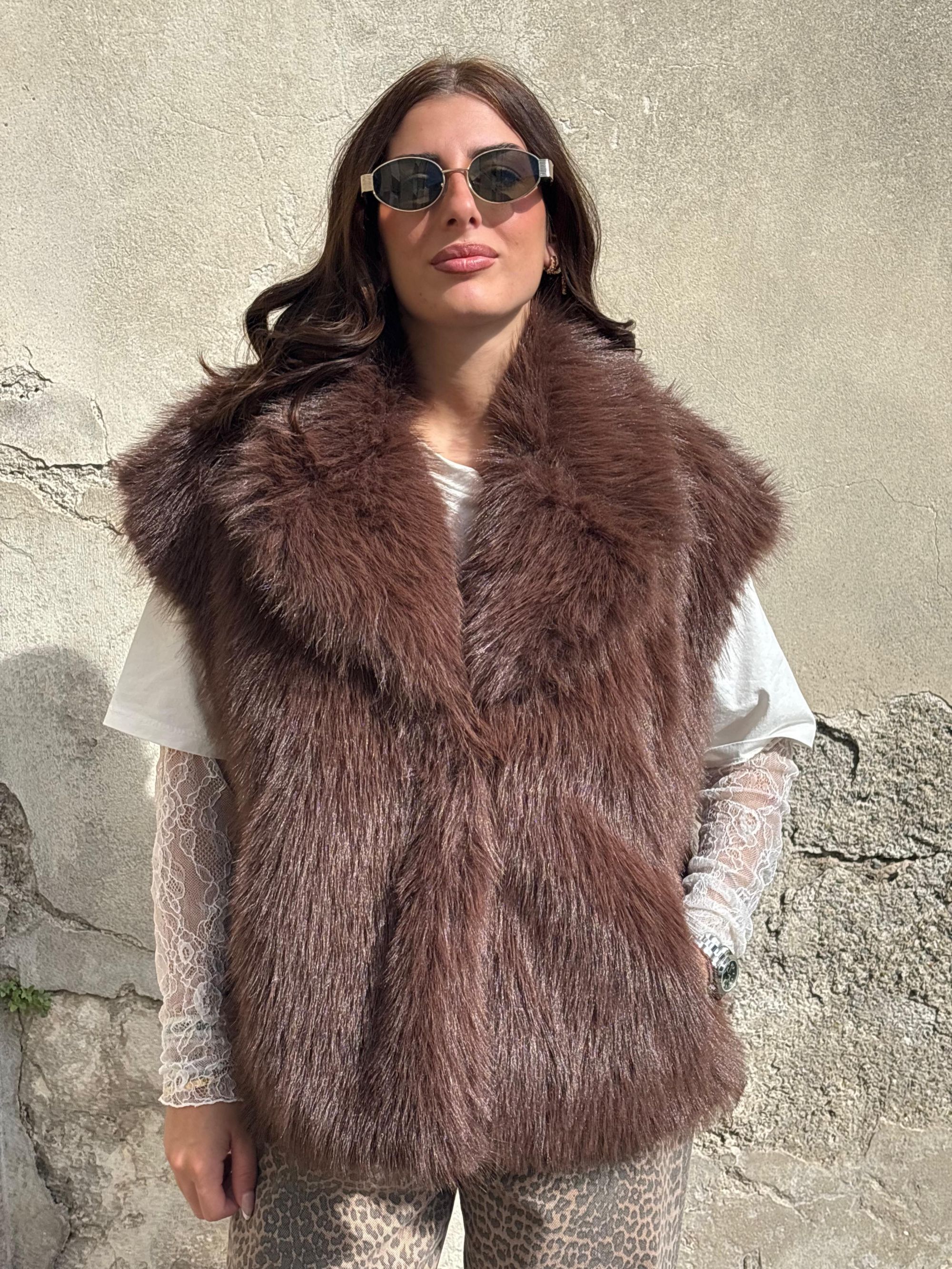 SUSY MIX - GILET ECOPELLICCIA MORO ART. GILETECOFUR