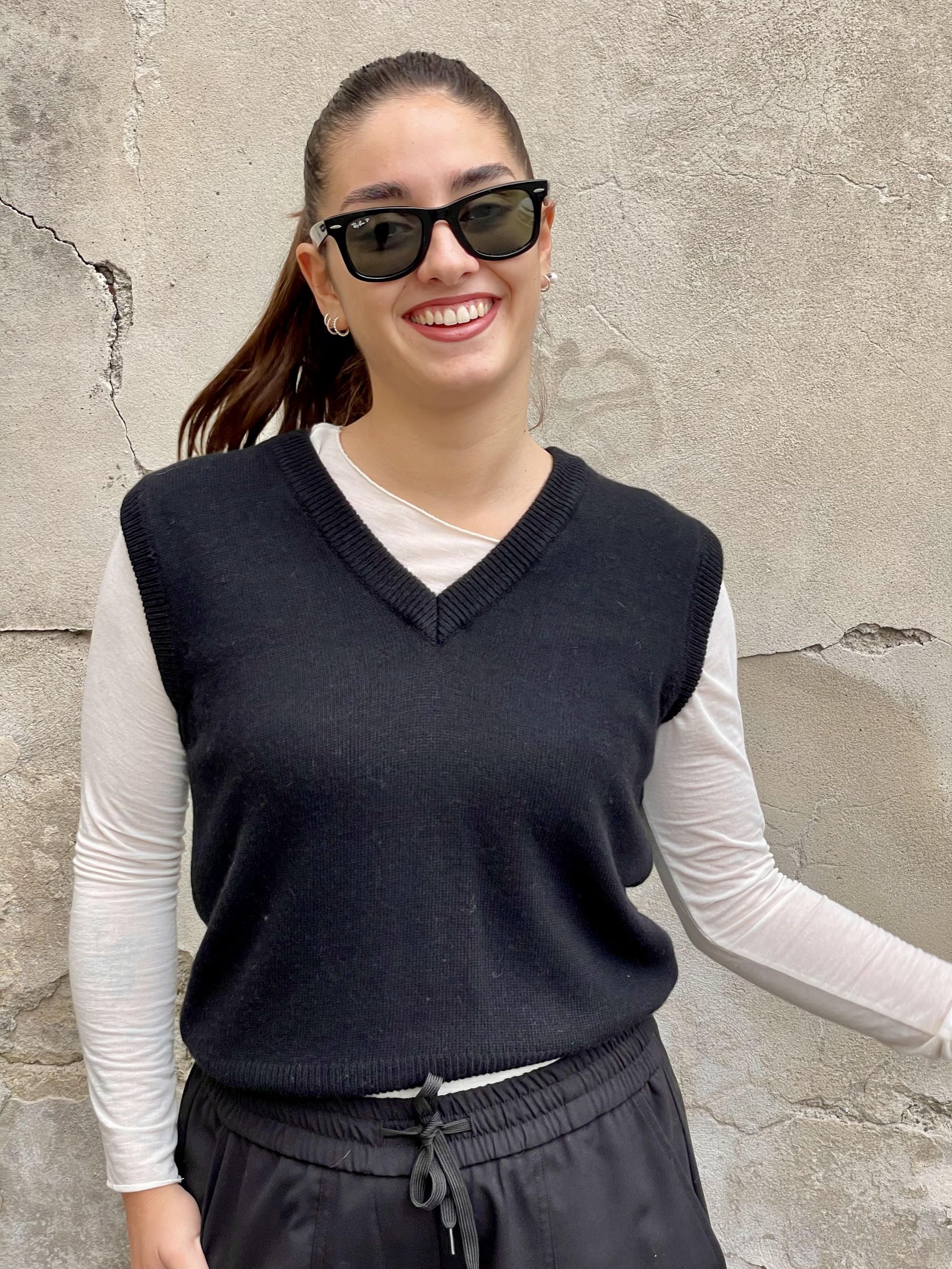 TENSIONE IN - GILET NERO SCOLLO A V ART. D80968