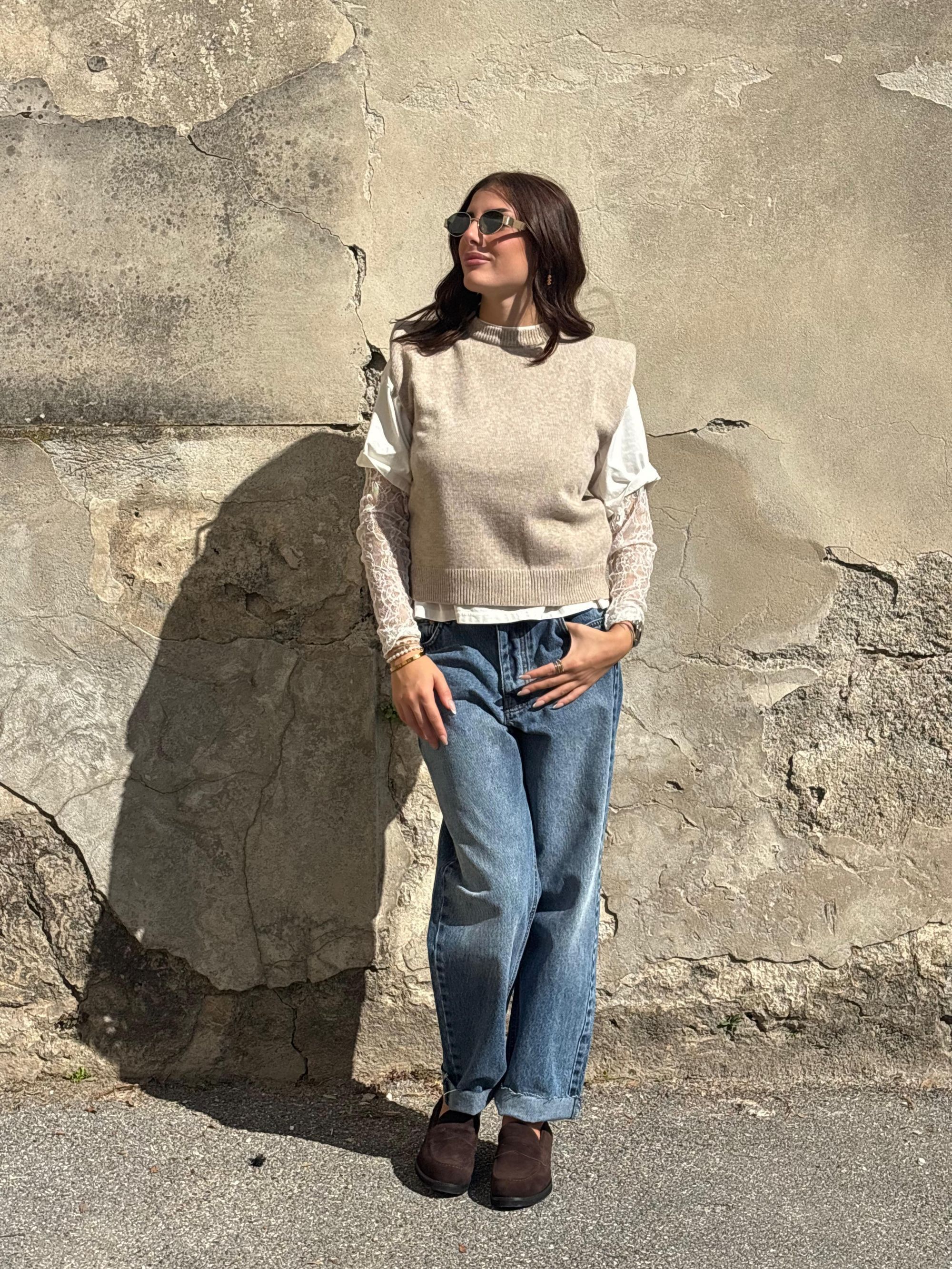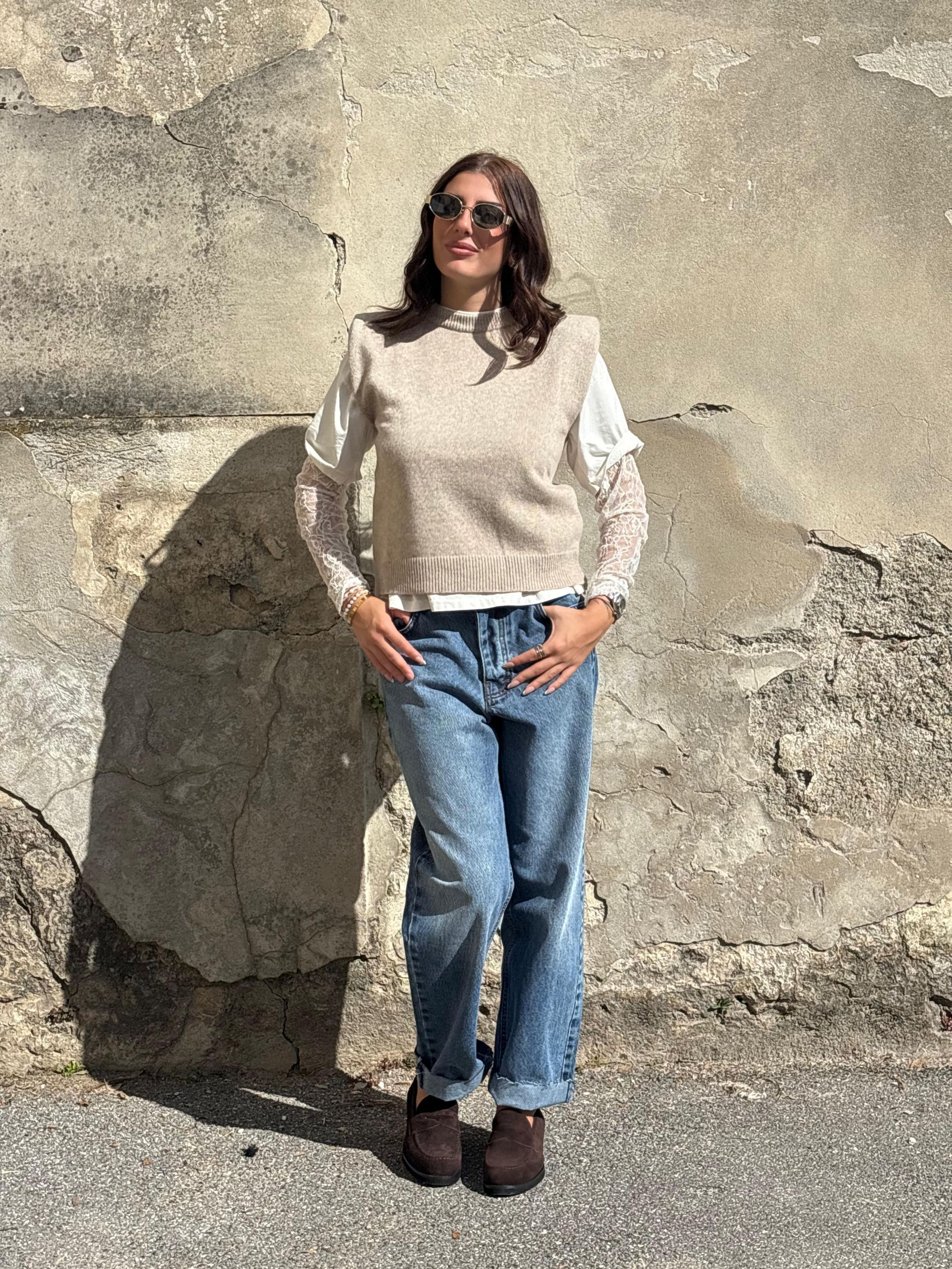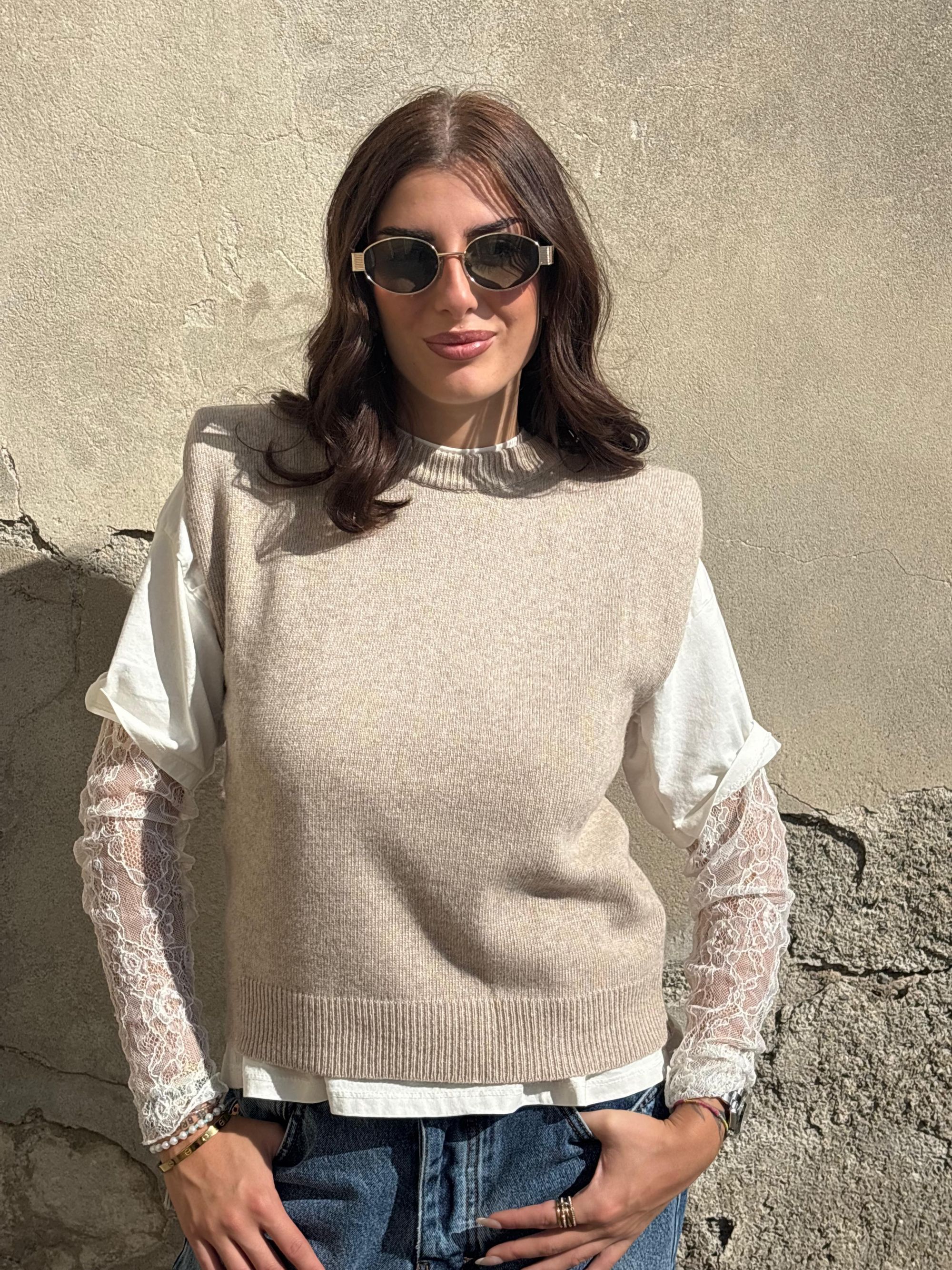 TENSIONE IN - GILET SABBIA CON SPALLINE IMBOTTITE ART. D80088