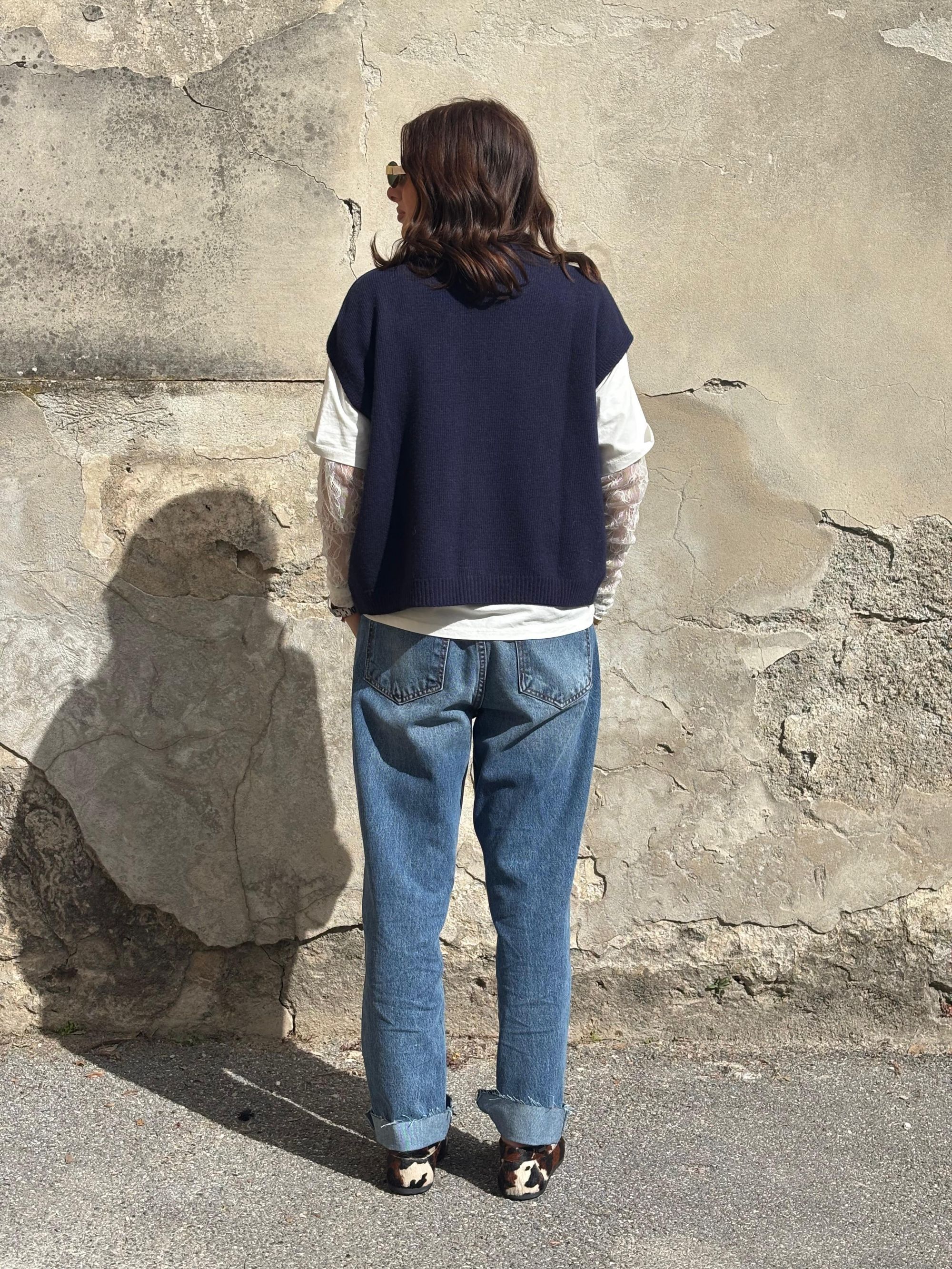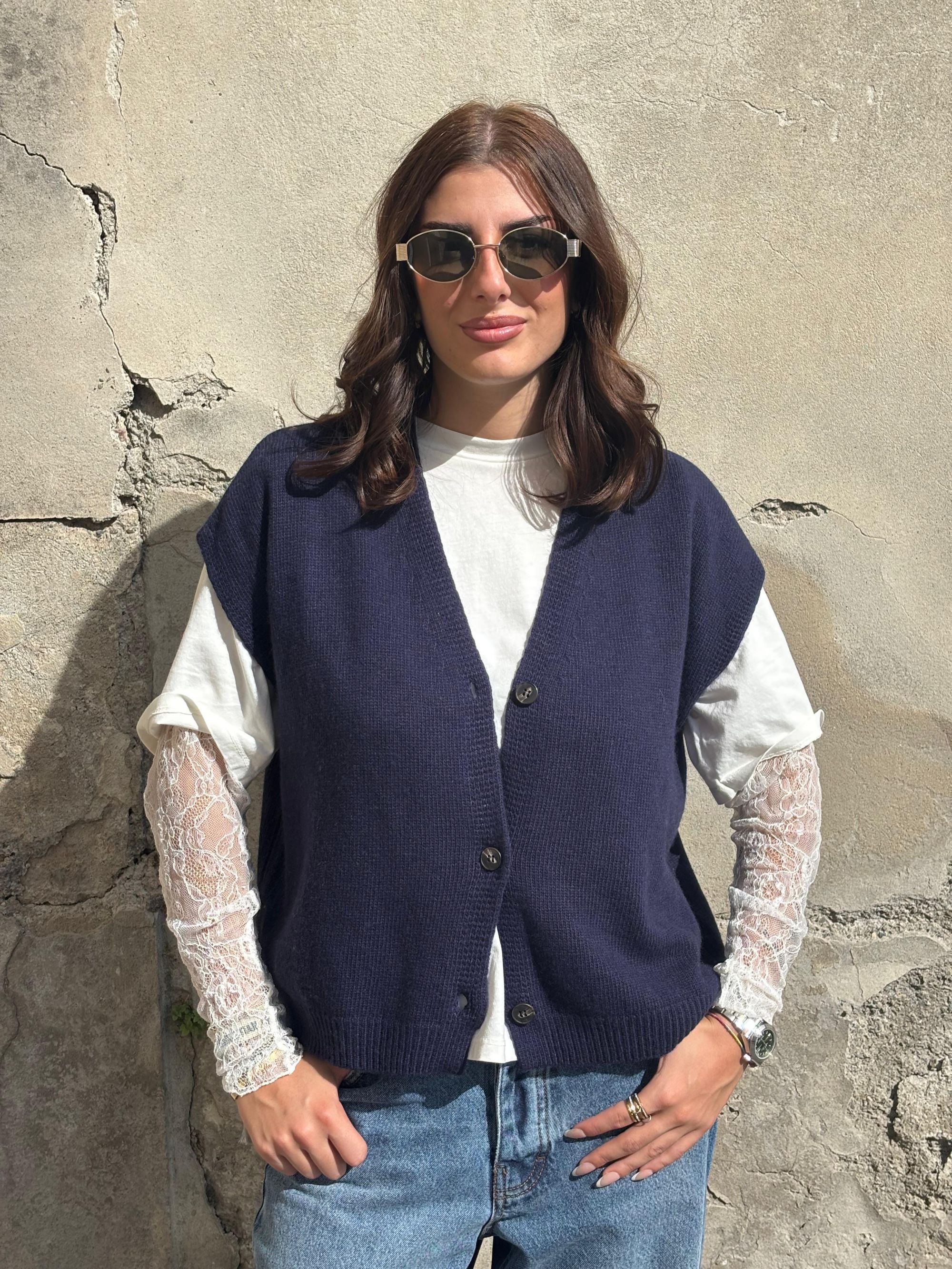 TENSIONE IN - GILET SCOLLO A V BLU CON ABBOTTONATURA ART. D80014