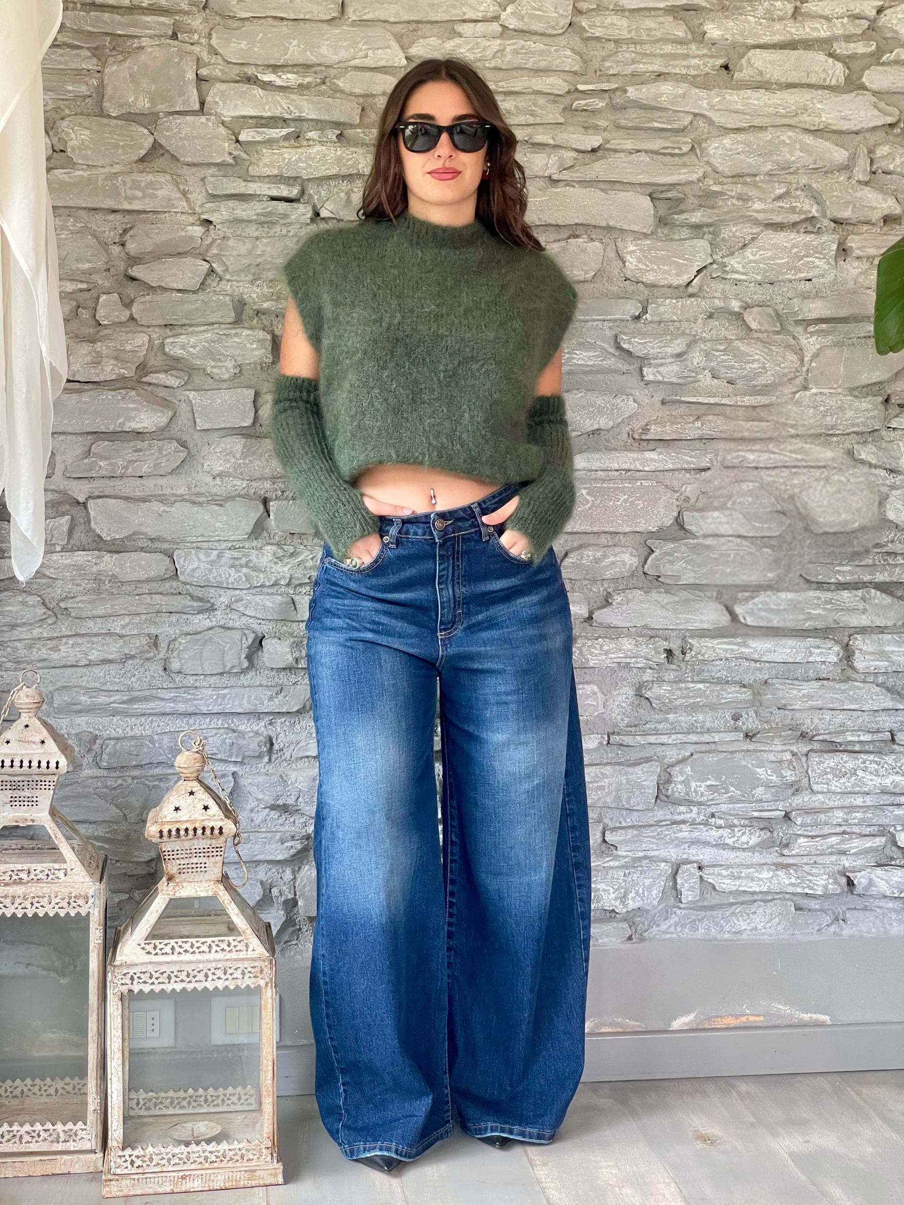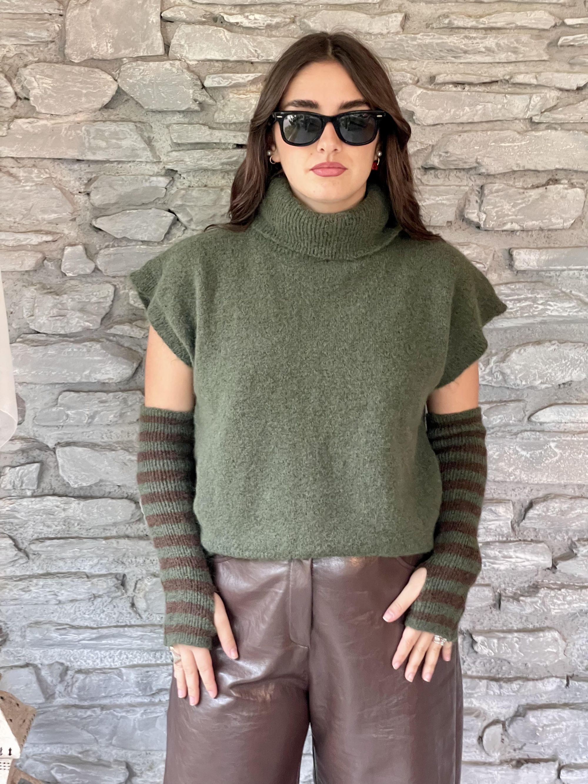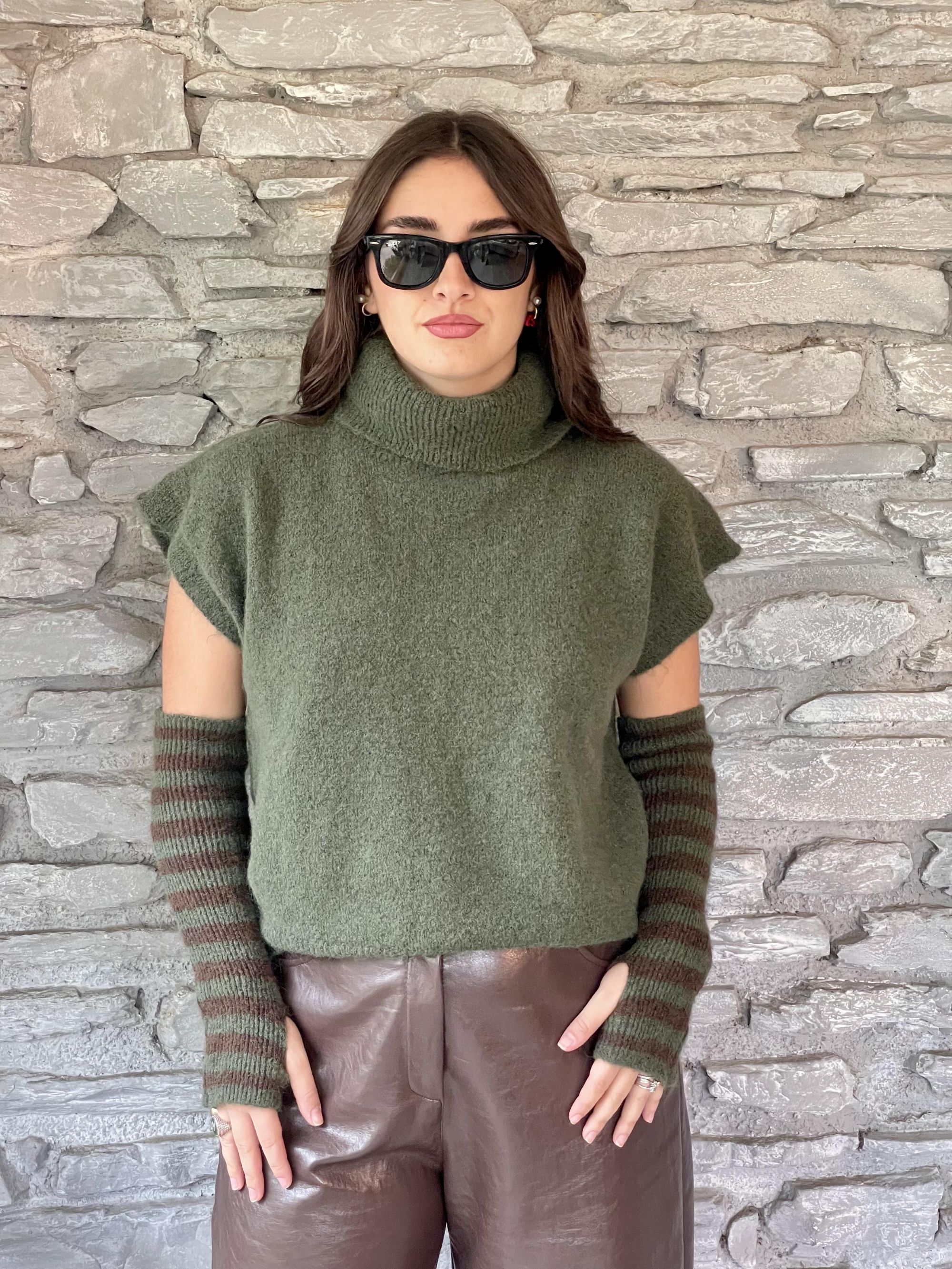 TENSIONE IN - GILET VERDE CON MANICOTTI A RIGHE ART. 26031