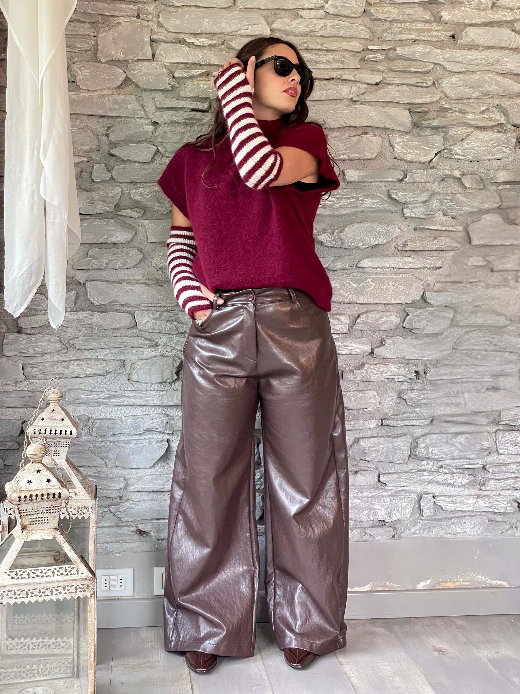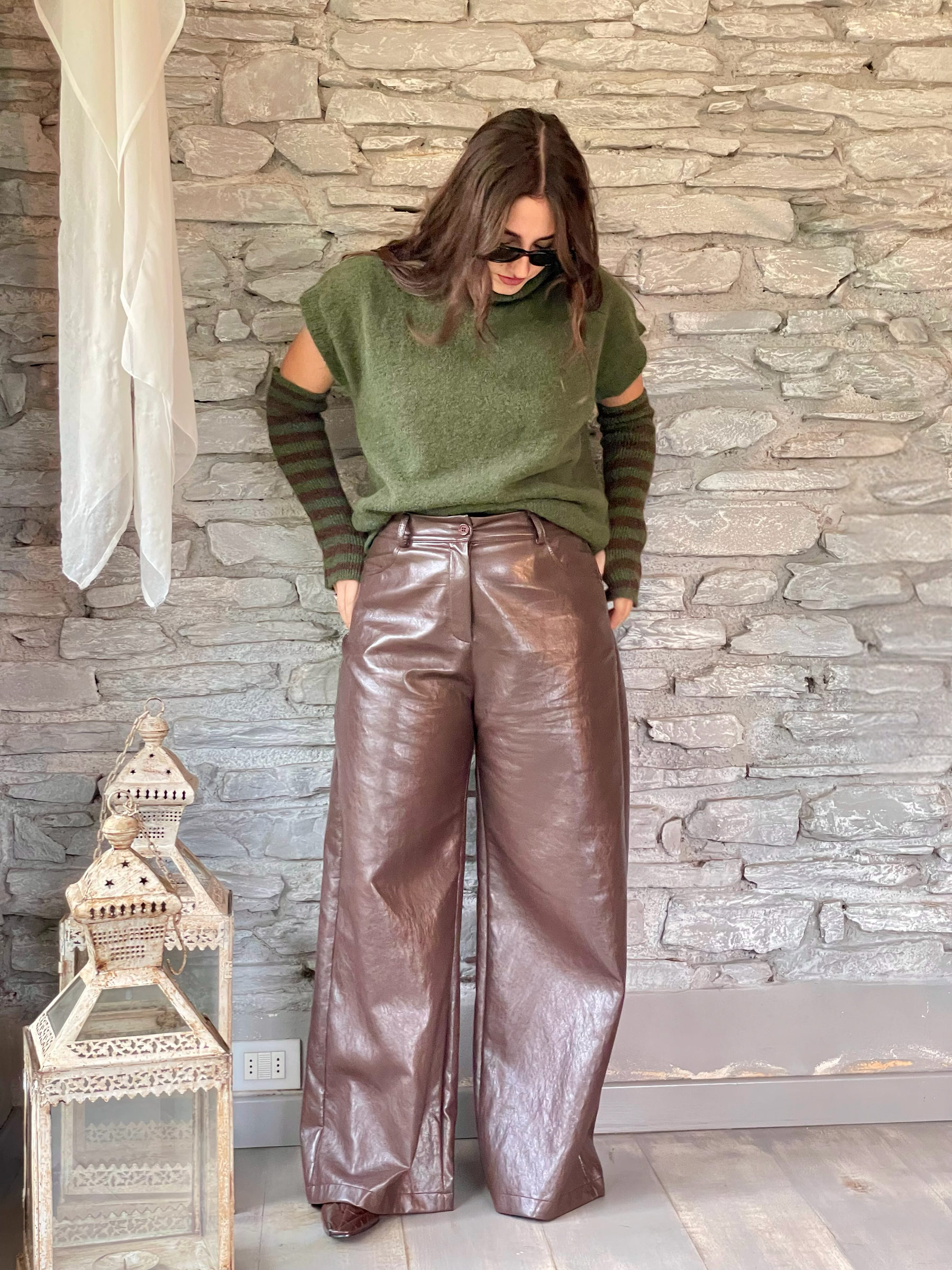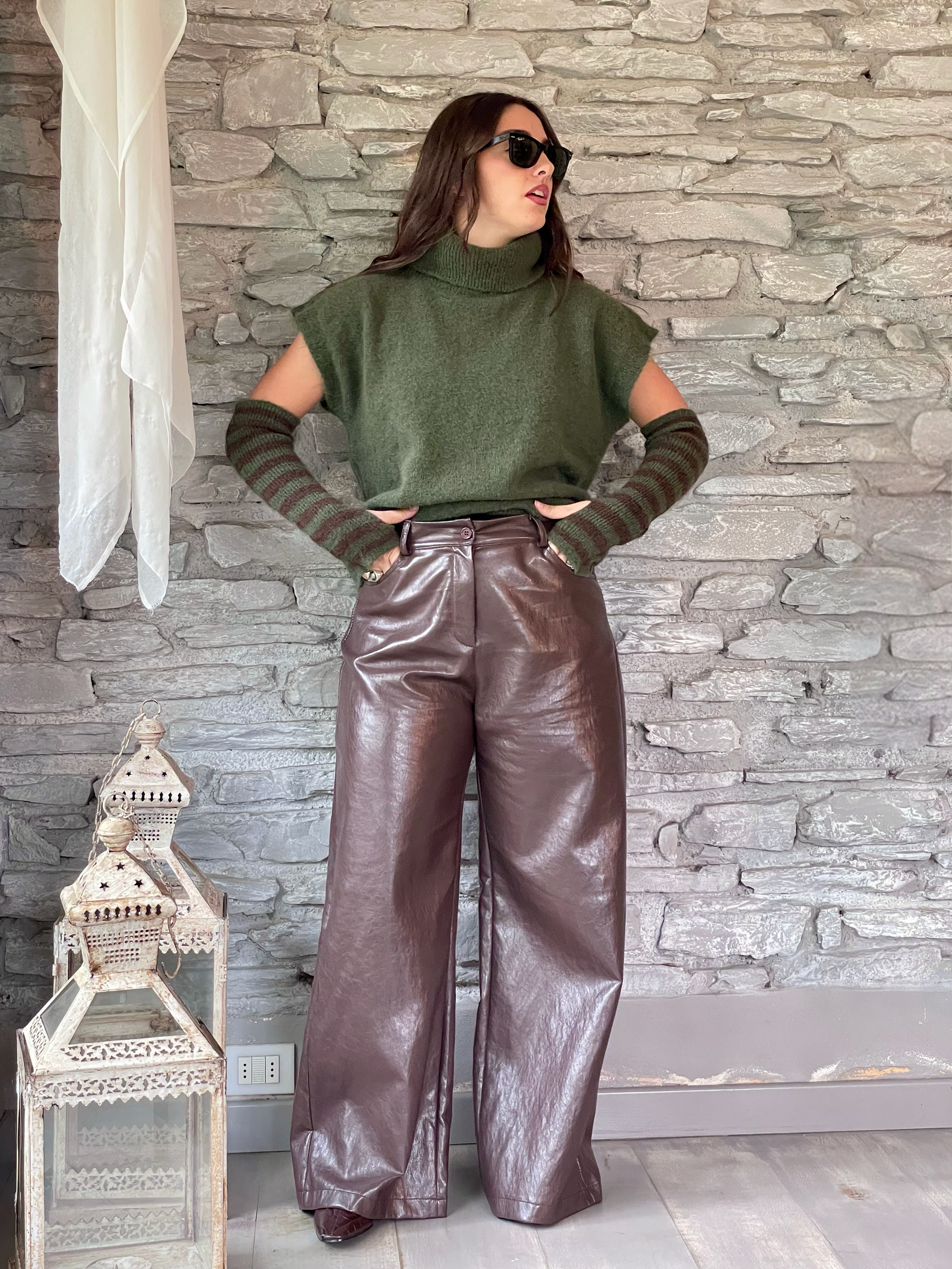 TENSIONE IN - GILET VERDE CON MANICOTTI A RIGHE ART. 26031