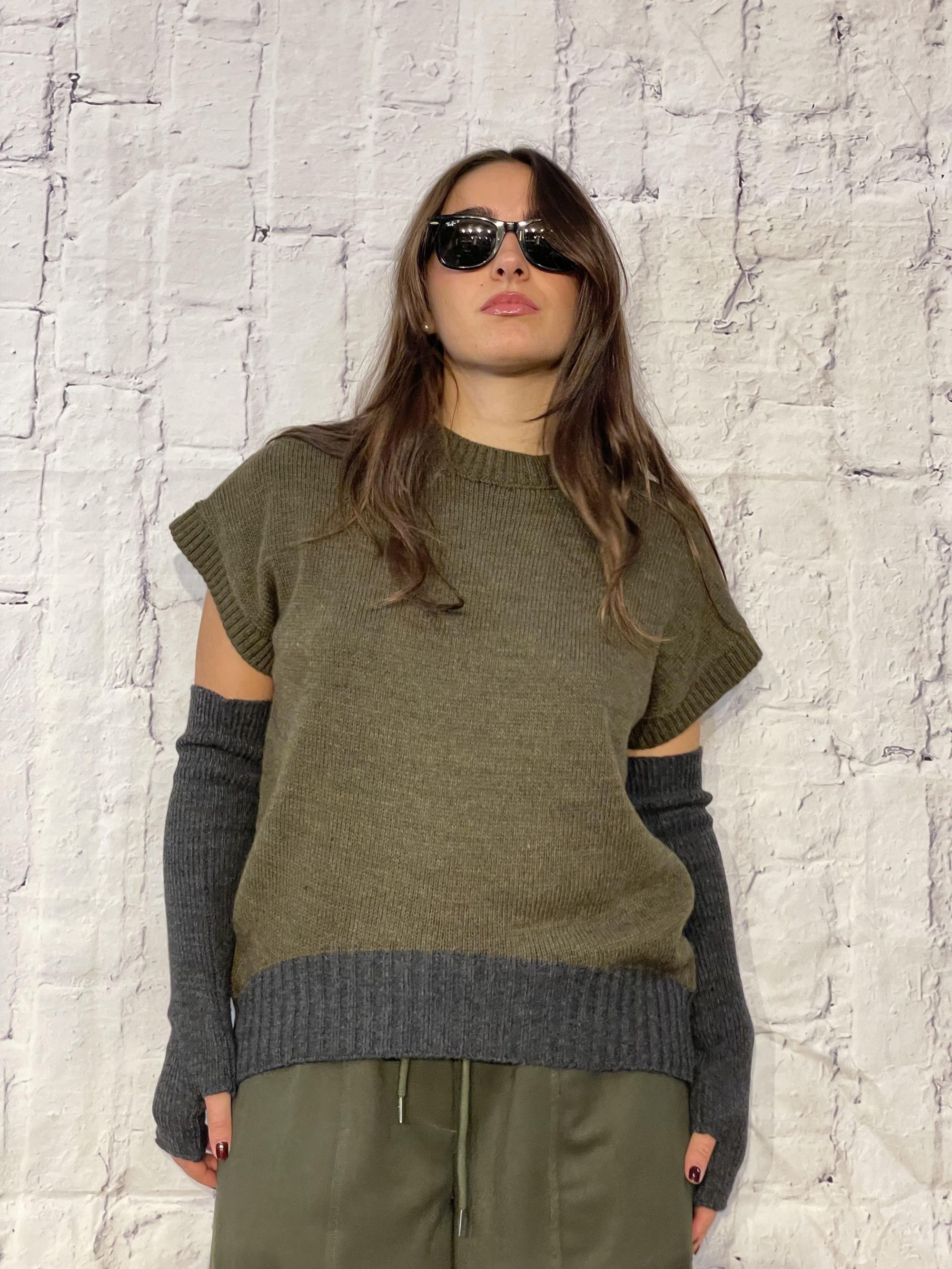 TENSIONE IN - GILET VERDE STONDATO CON MANICOTTI ART. W5HMT33A400