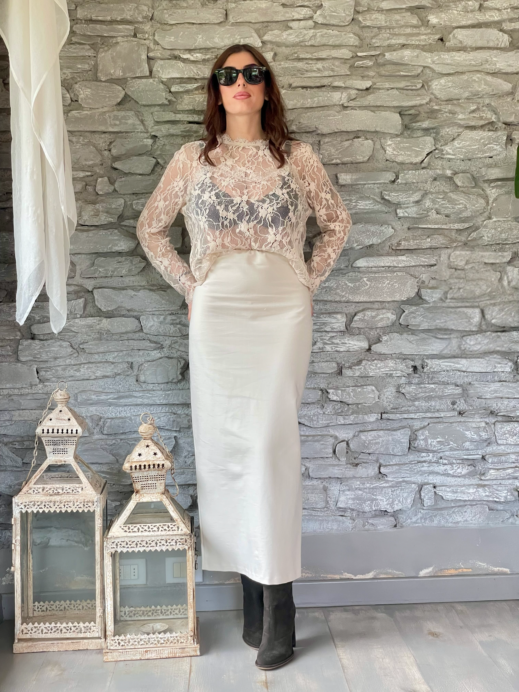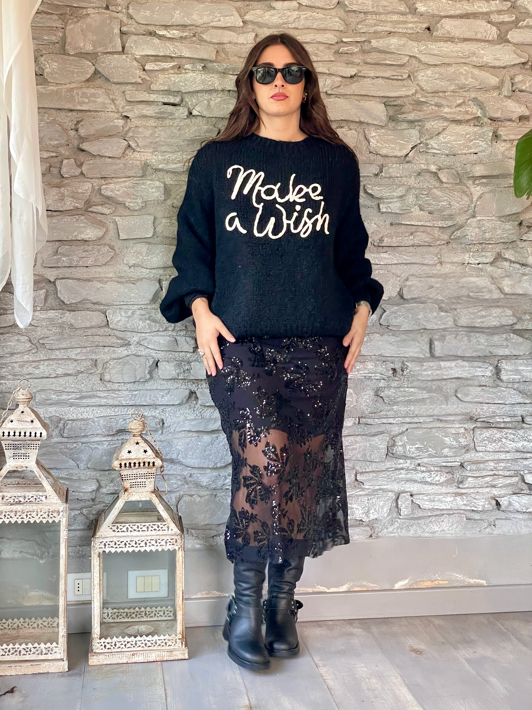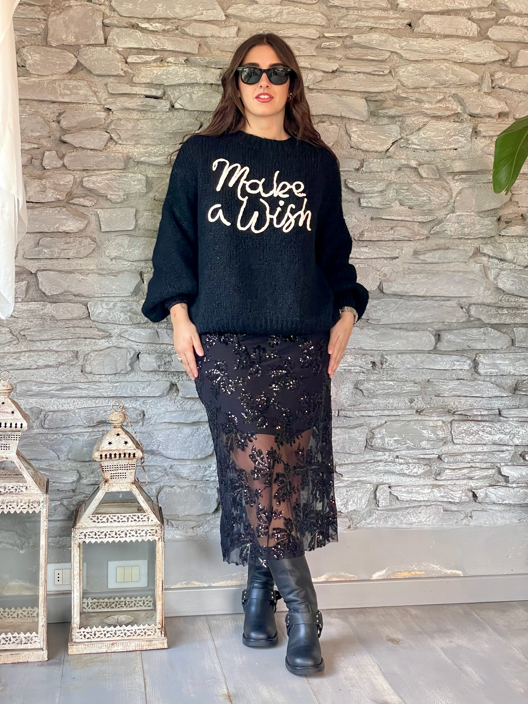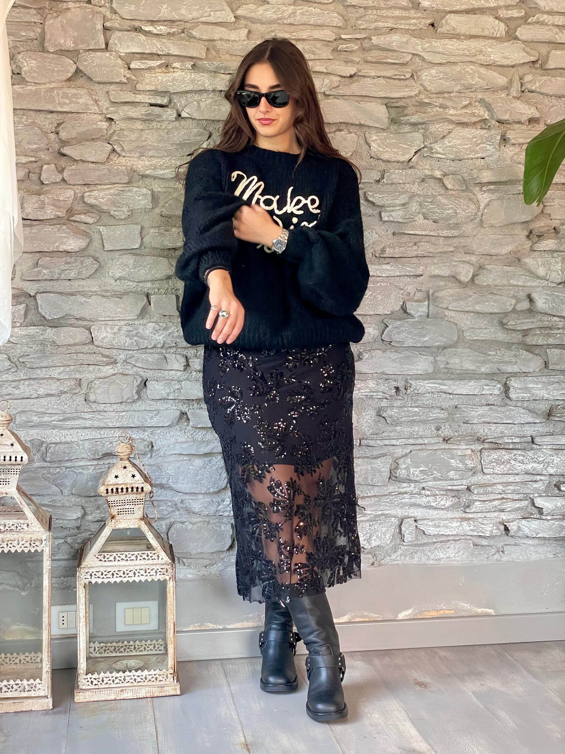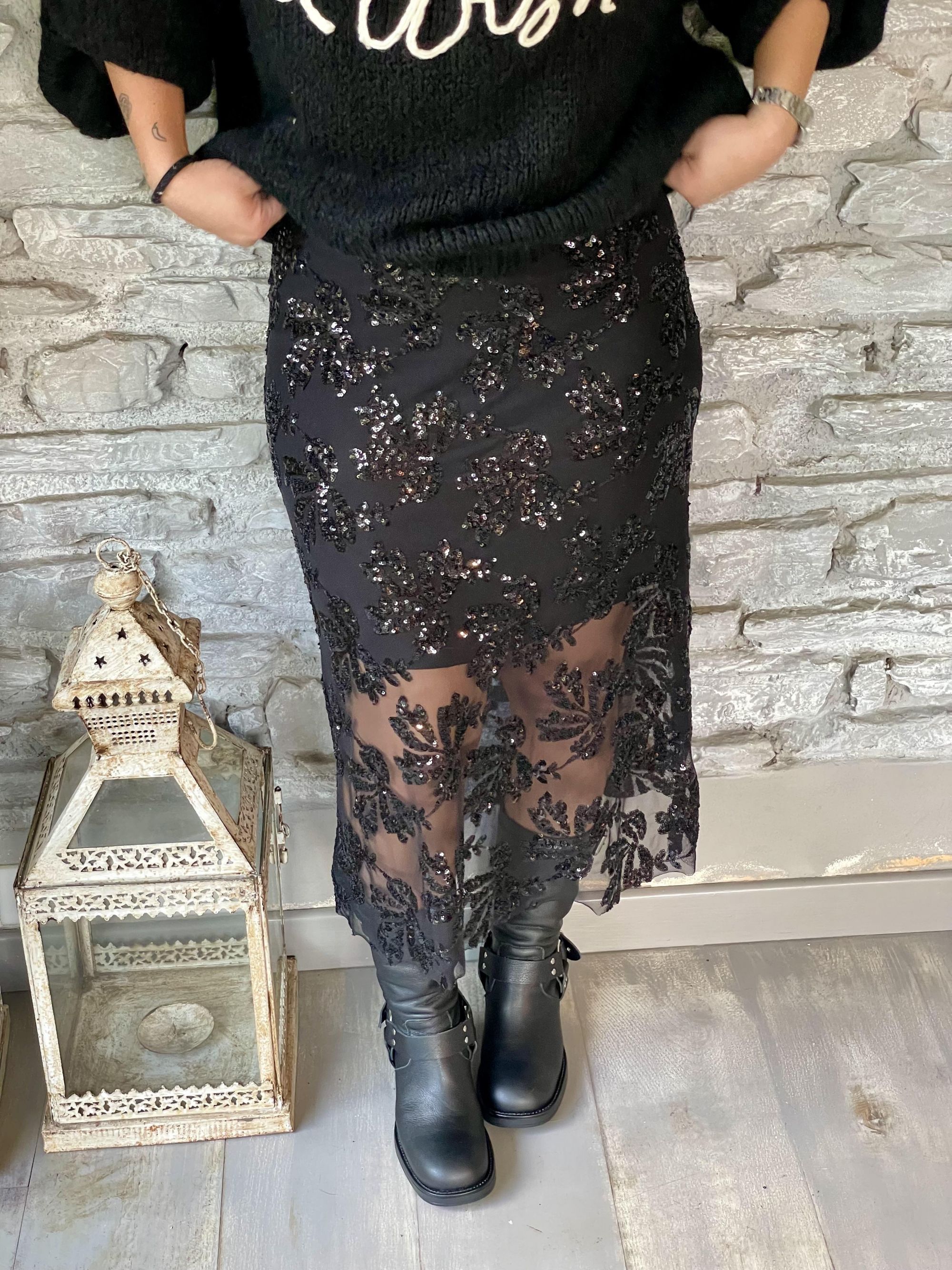 MDIMATILDE - GONNA NERA IN TULLE RICAMATO CON PAILLETTES