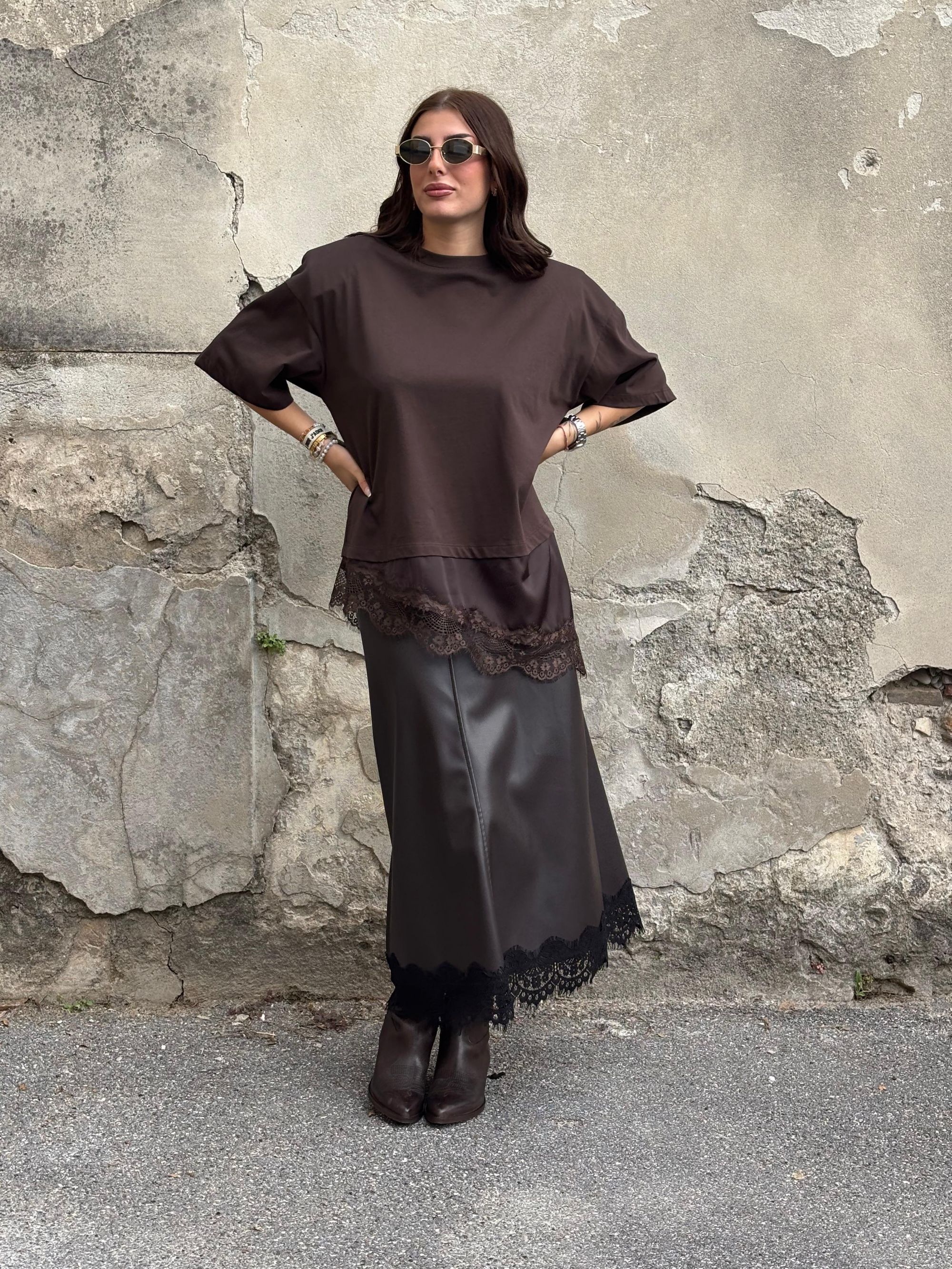 TENSIONE IN - GONNA IN RASO MARRONE CON PIZZO ART. 37527