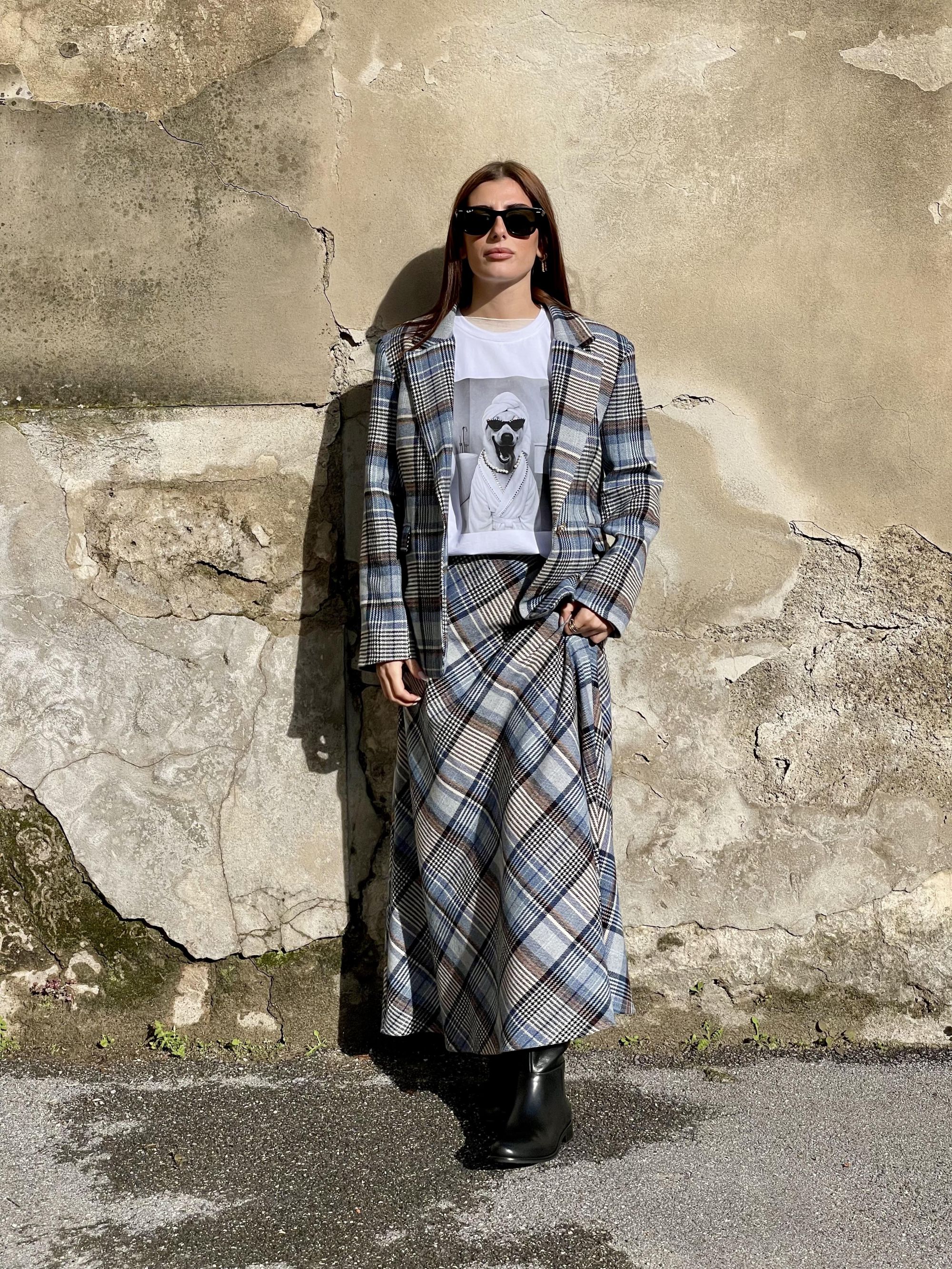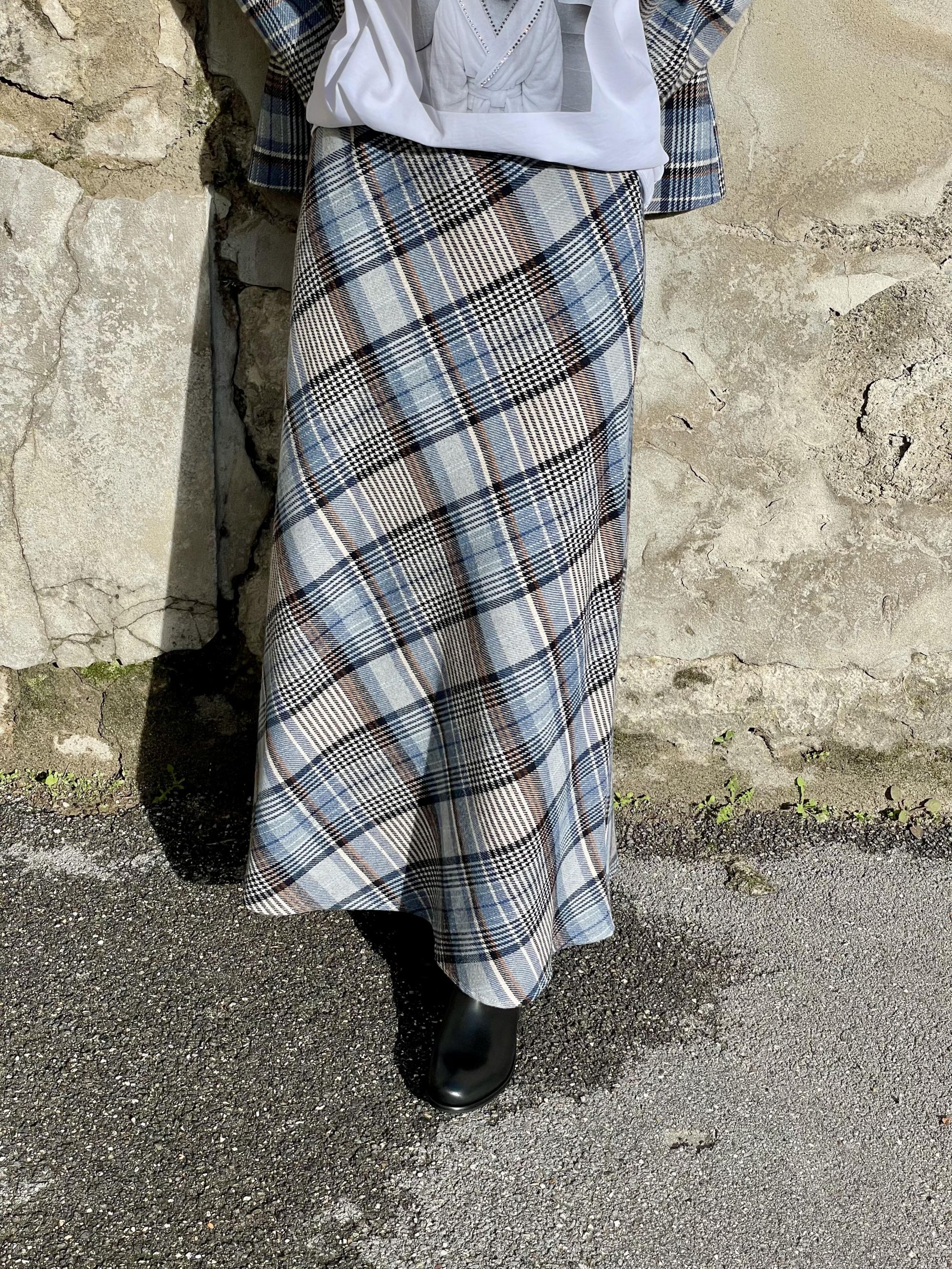 TENSIONE IN - GONNA LUNGA SVASATA A QUADRI CELESTI ART. 26G1425