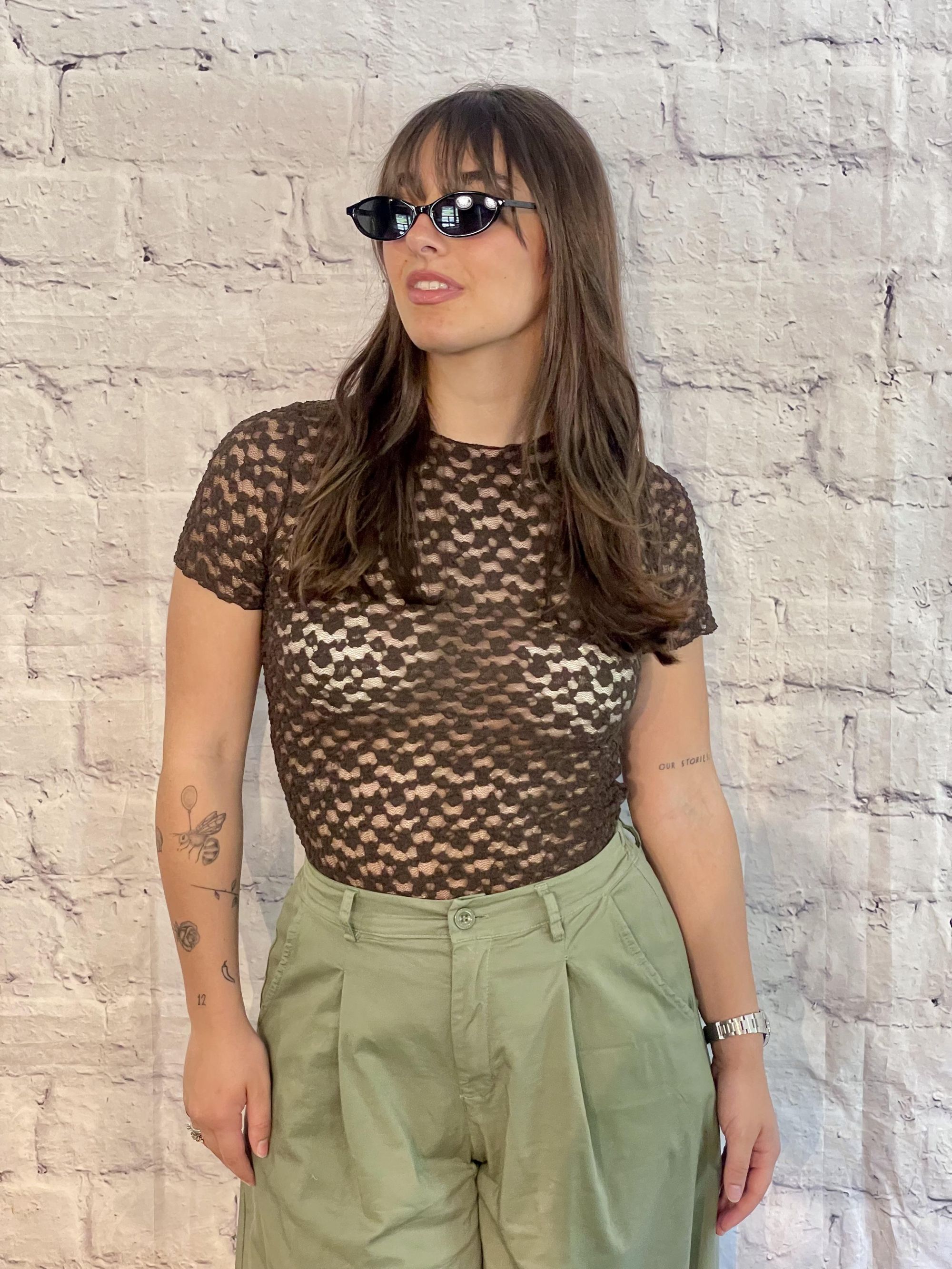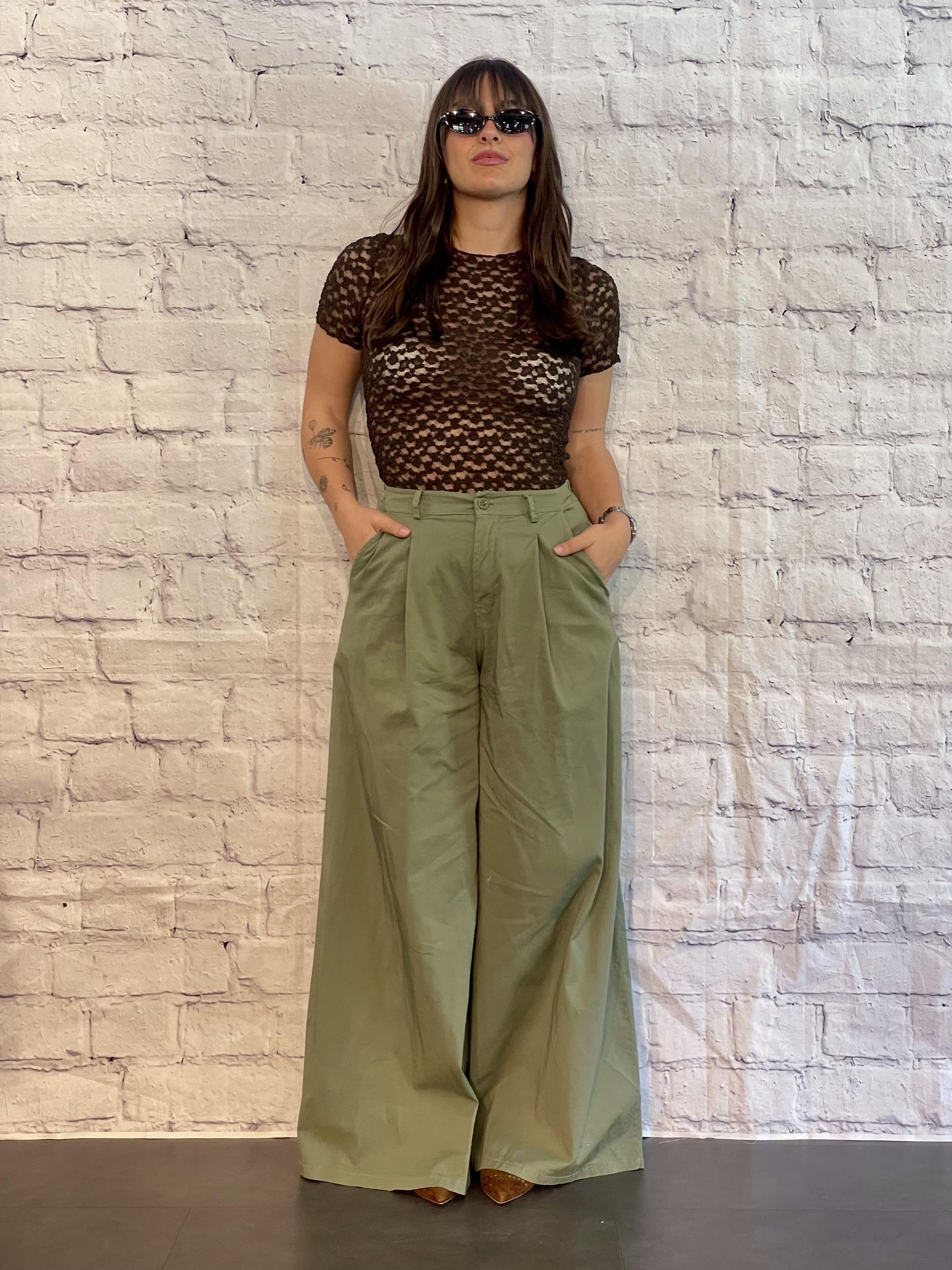 MDIMATILDE - MAGLIA IN PIZZO VERDE MEZZA MANICA ART. N1873