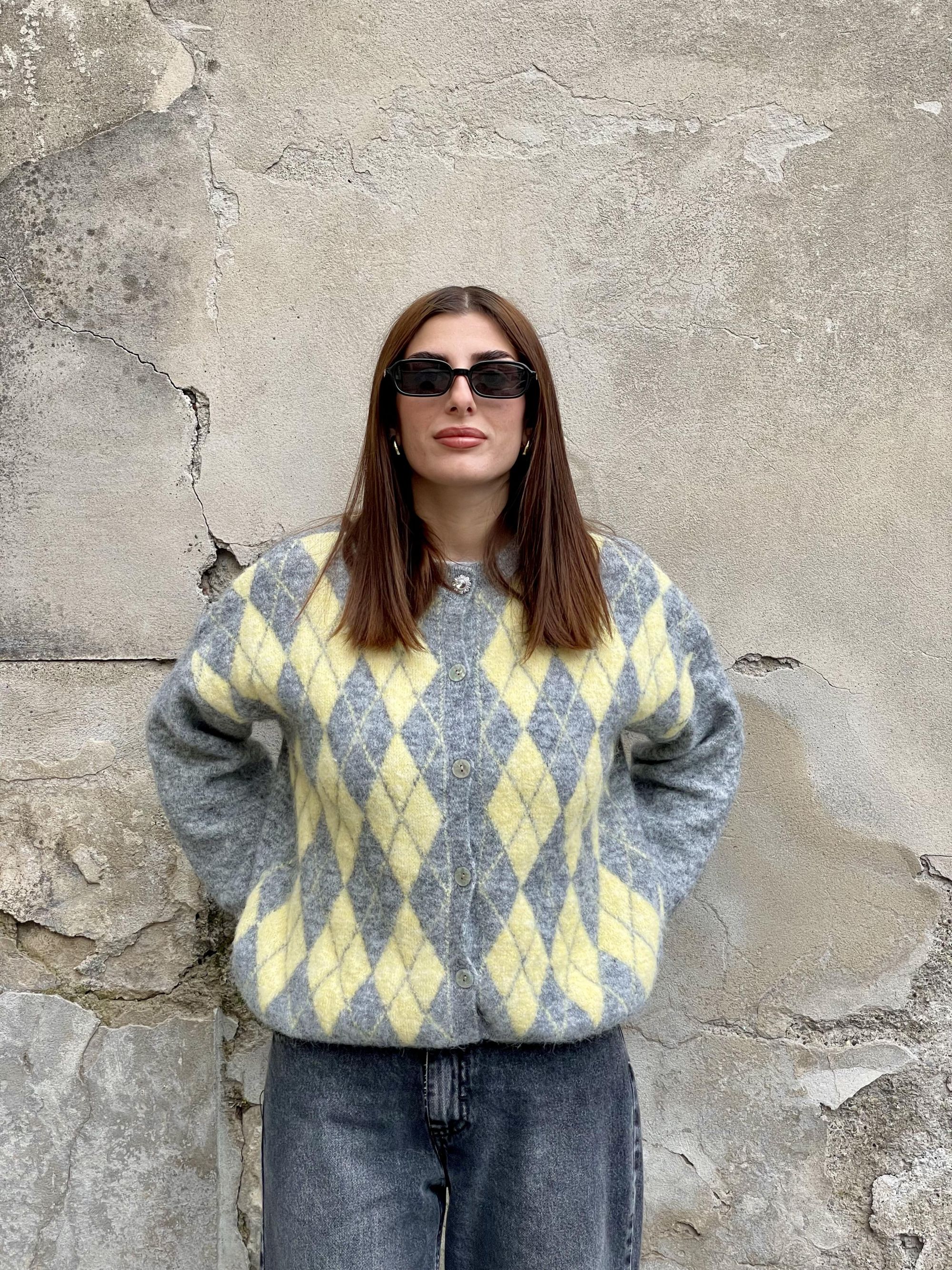 SUSY MIX - CARDIGAN GRIGIO PARICOLLO A ROMBI ART. 61131