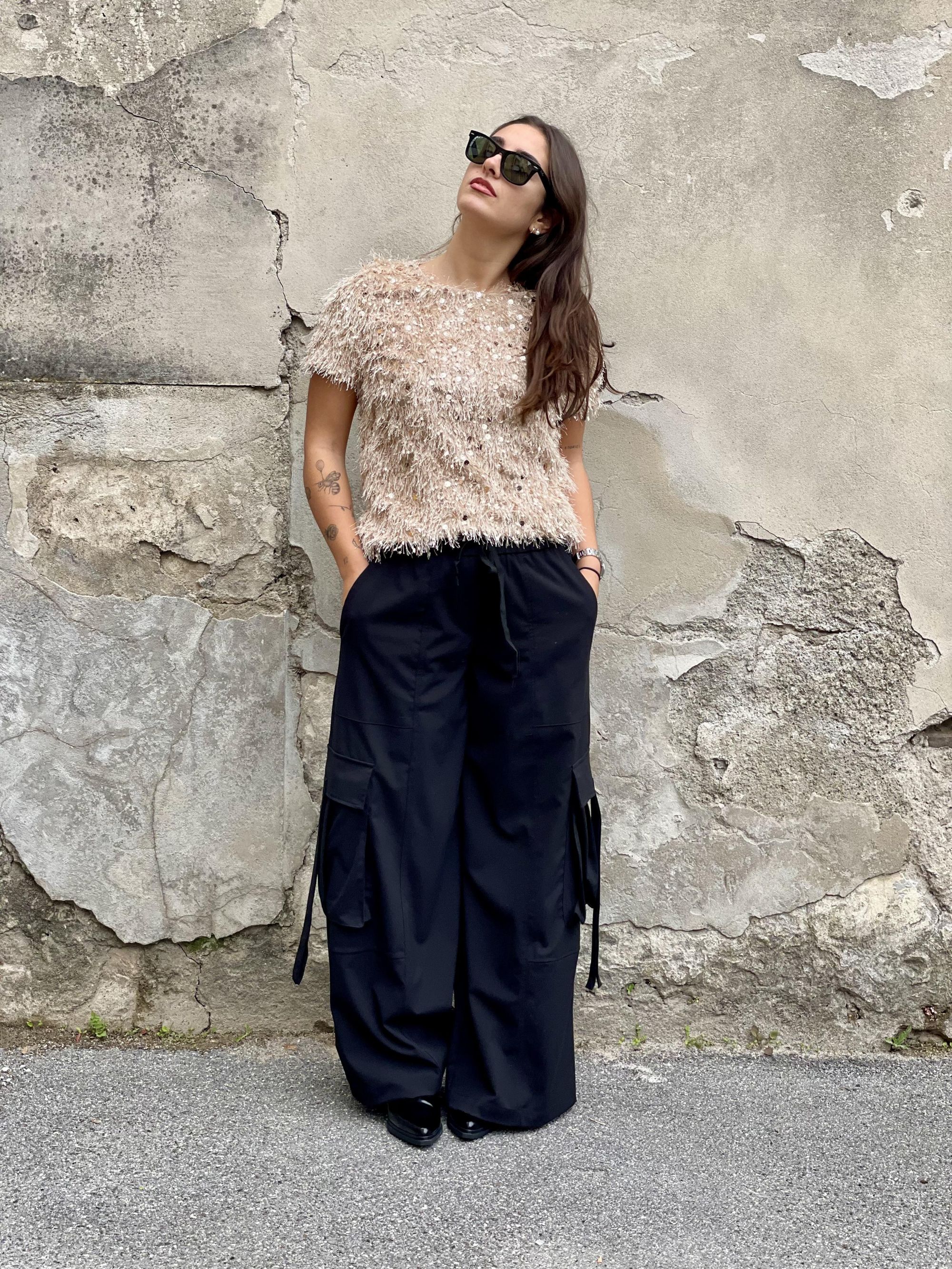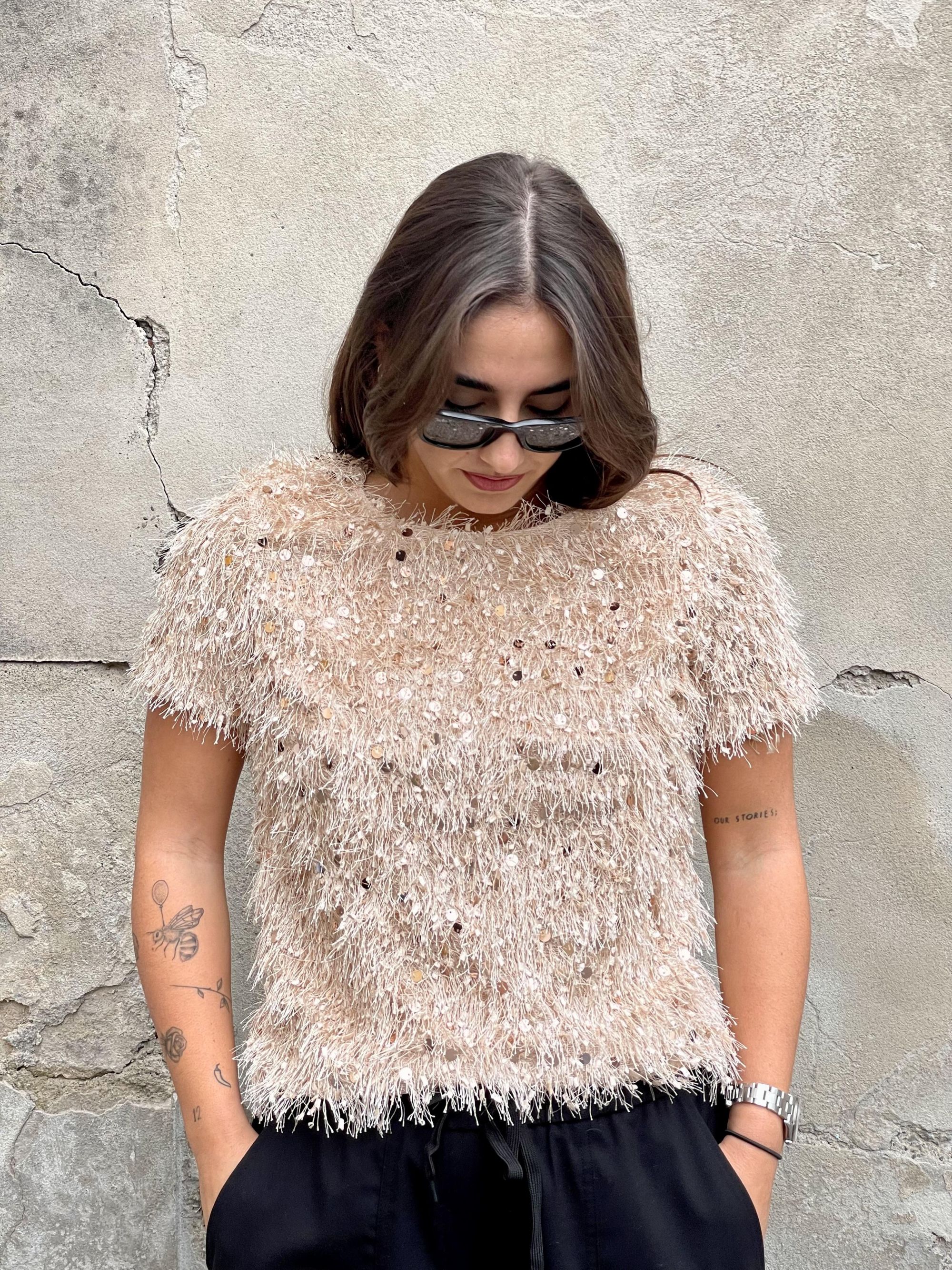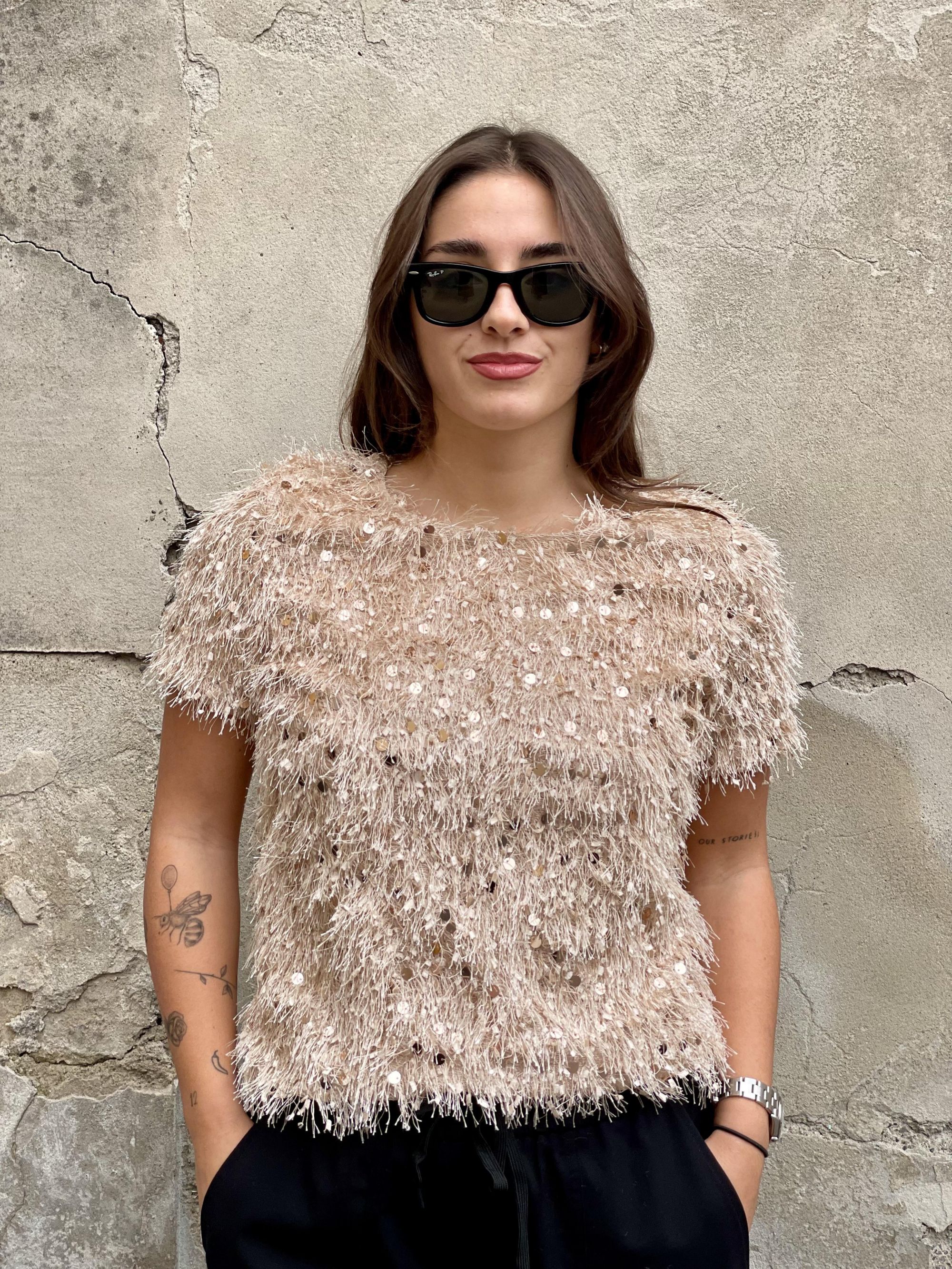 SUSY MIX - MAGLIA BEIGE CON PAILLETTES ART. B1051