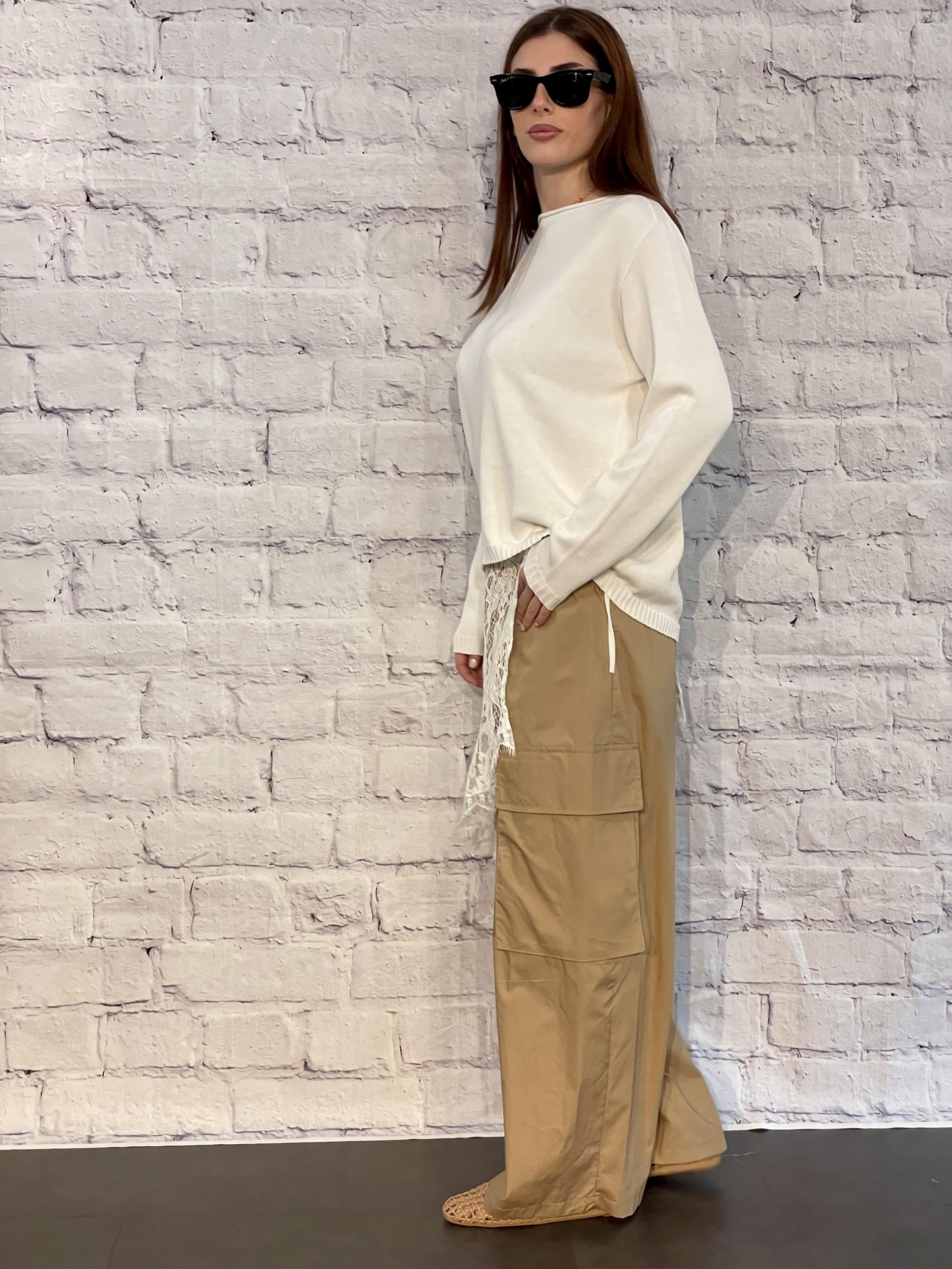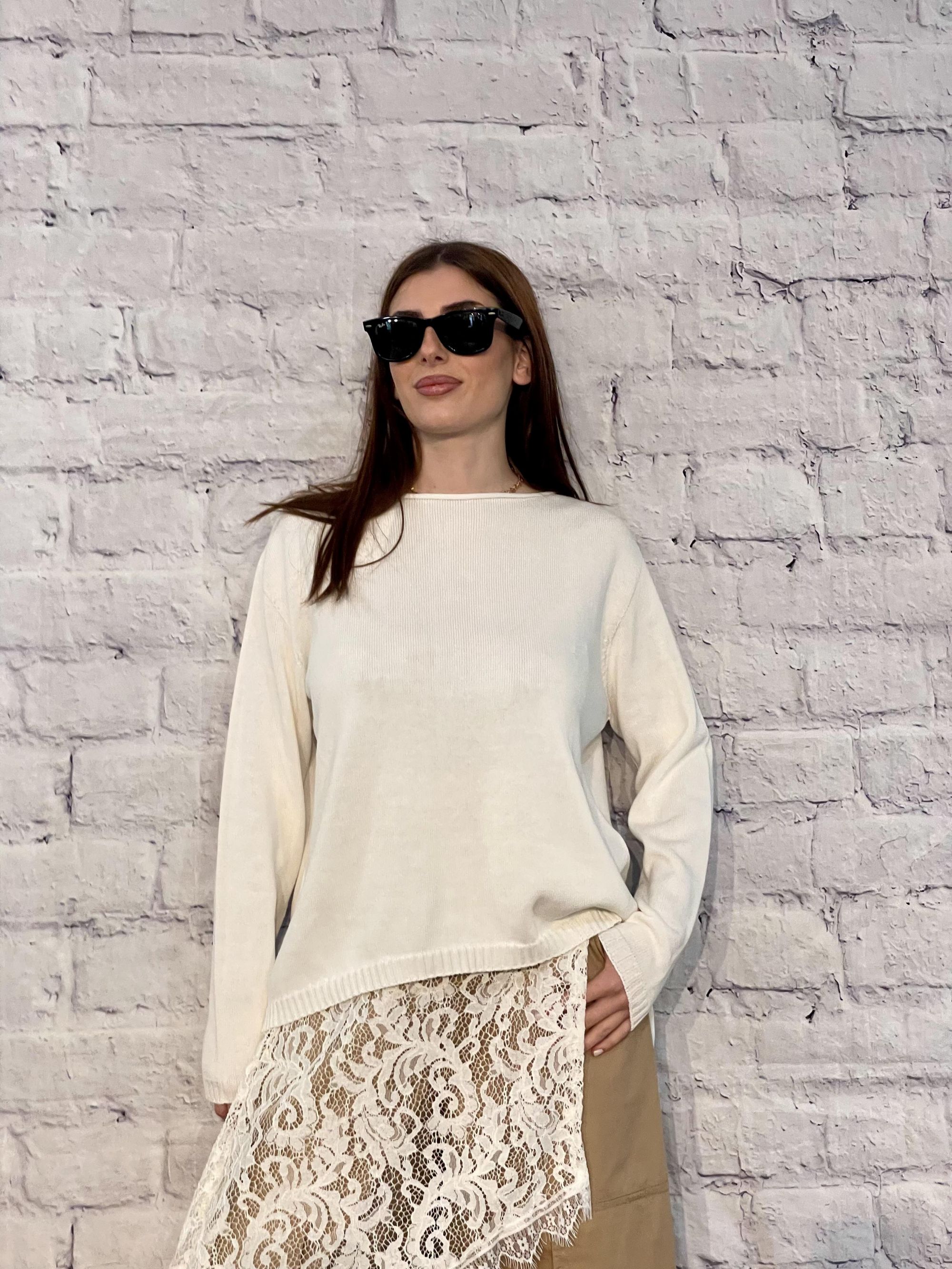 SUSY MIX - MAGLIA BEIGE SCOLLO A BARCA ART. 61042
