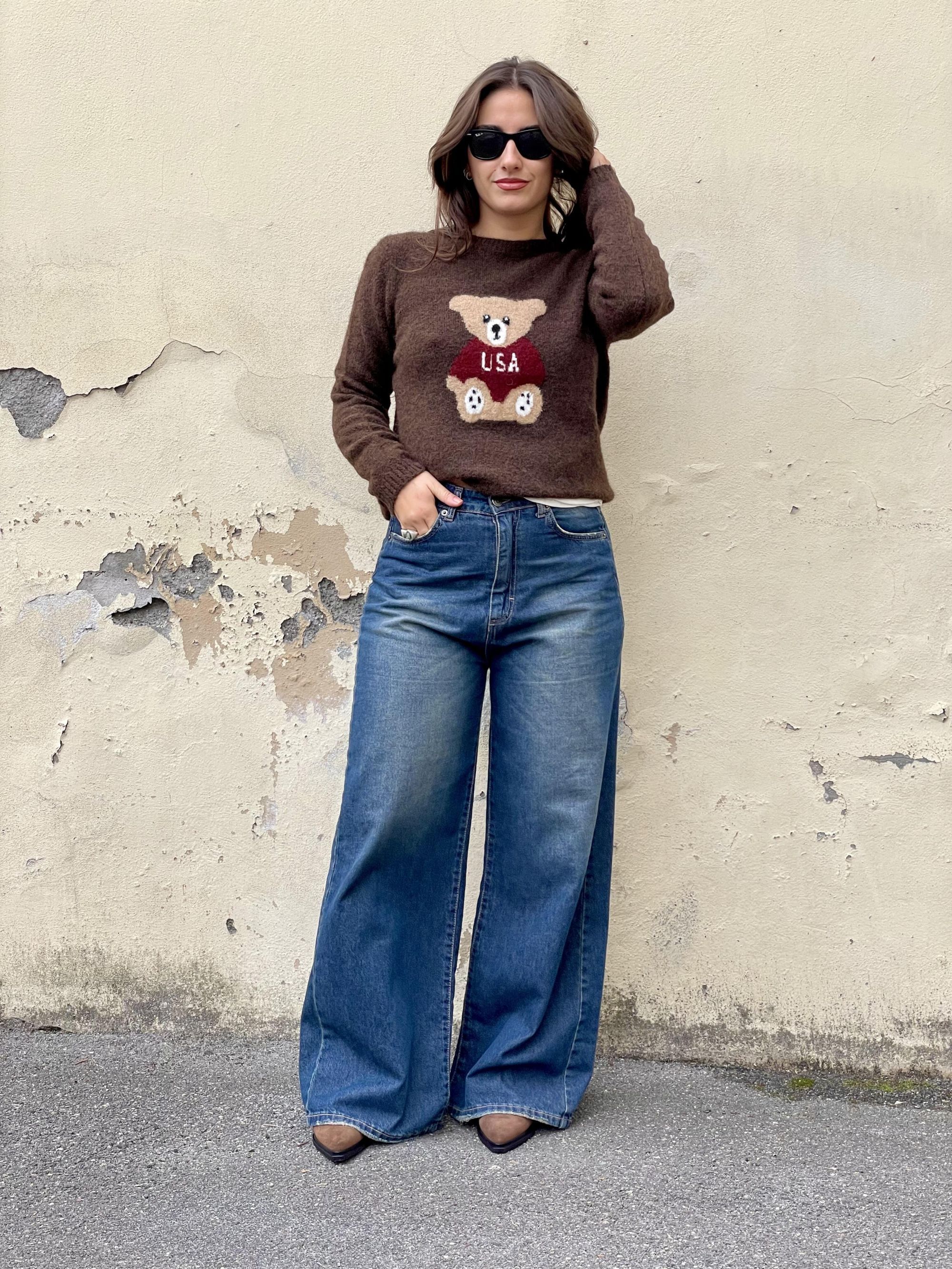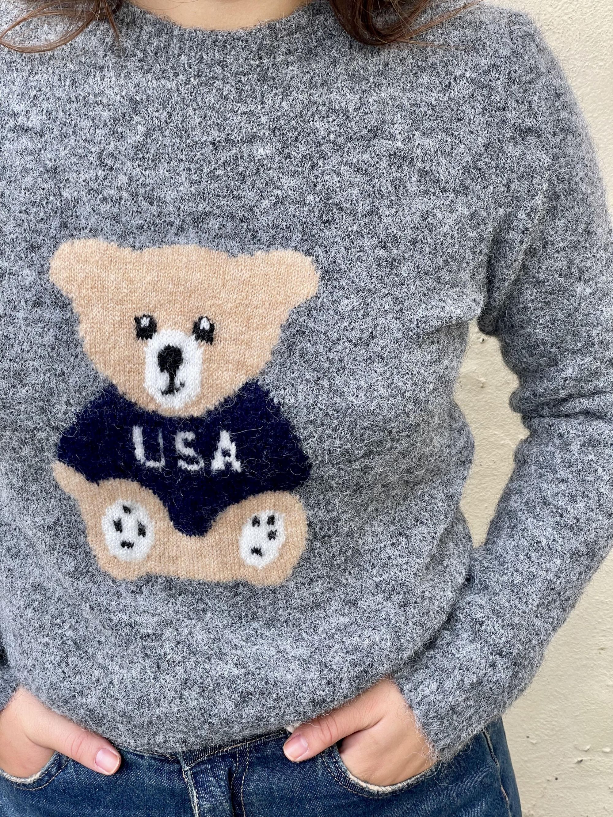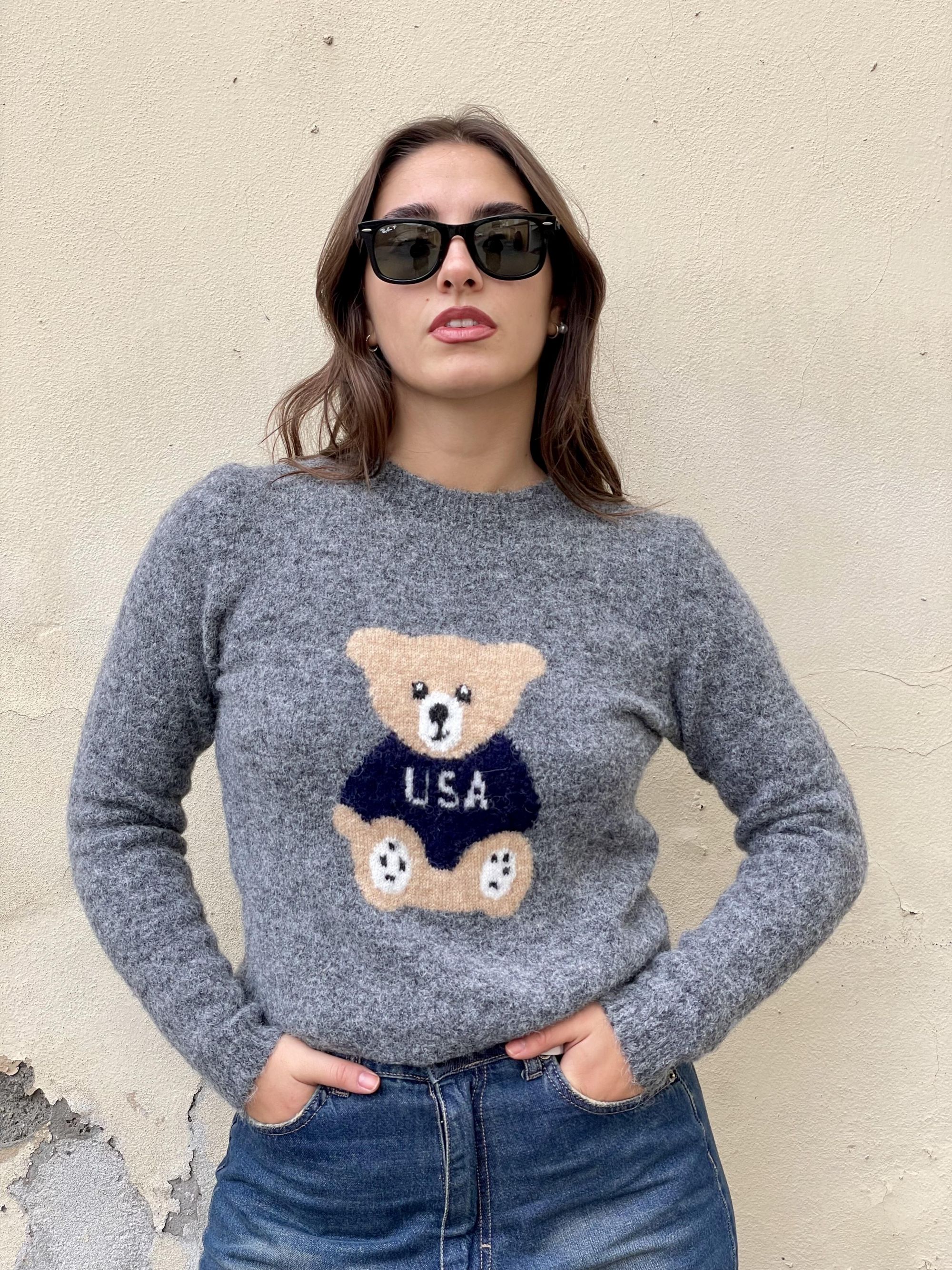 SUSY MIX - MAGLIA GRIGIA CON RICAMO ORSETTO ART. 25760