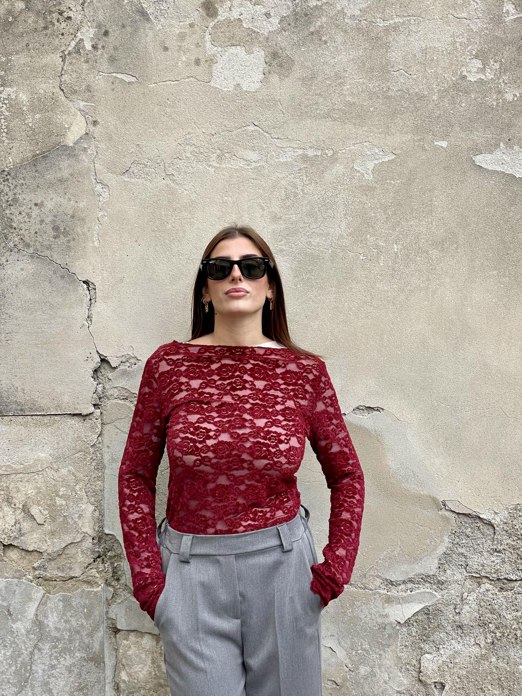 SUSY MIX - MAGLIA IN PIZZO BORDEAUX ART. C305PP