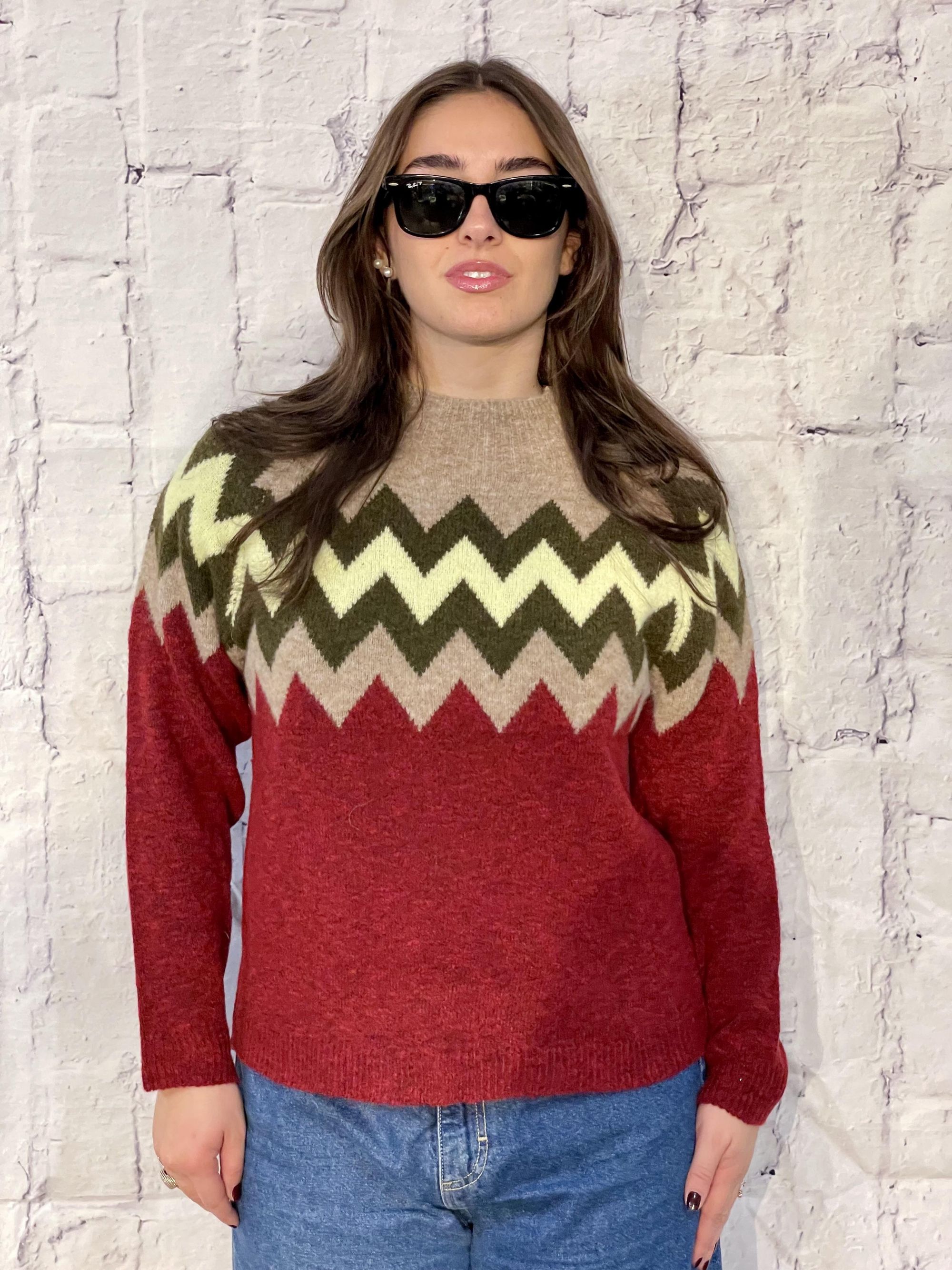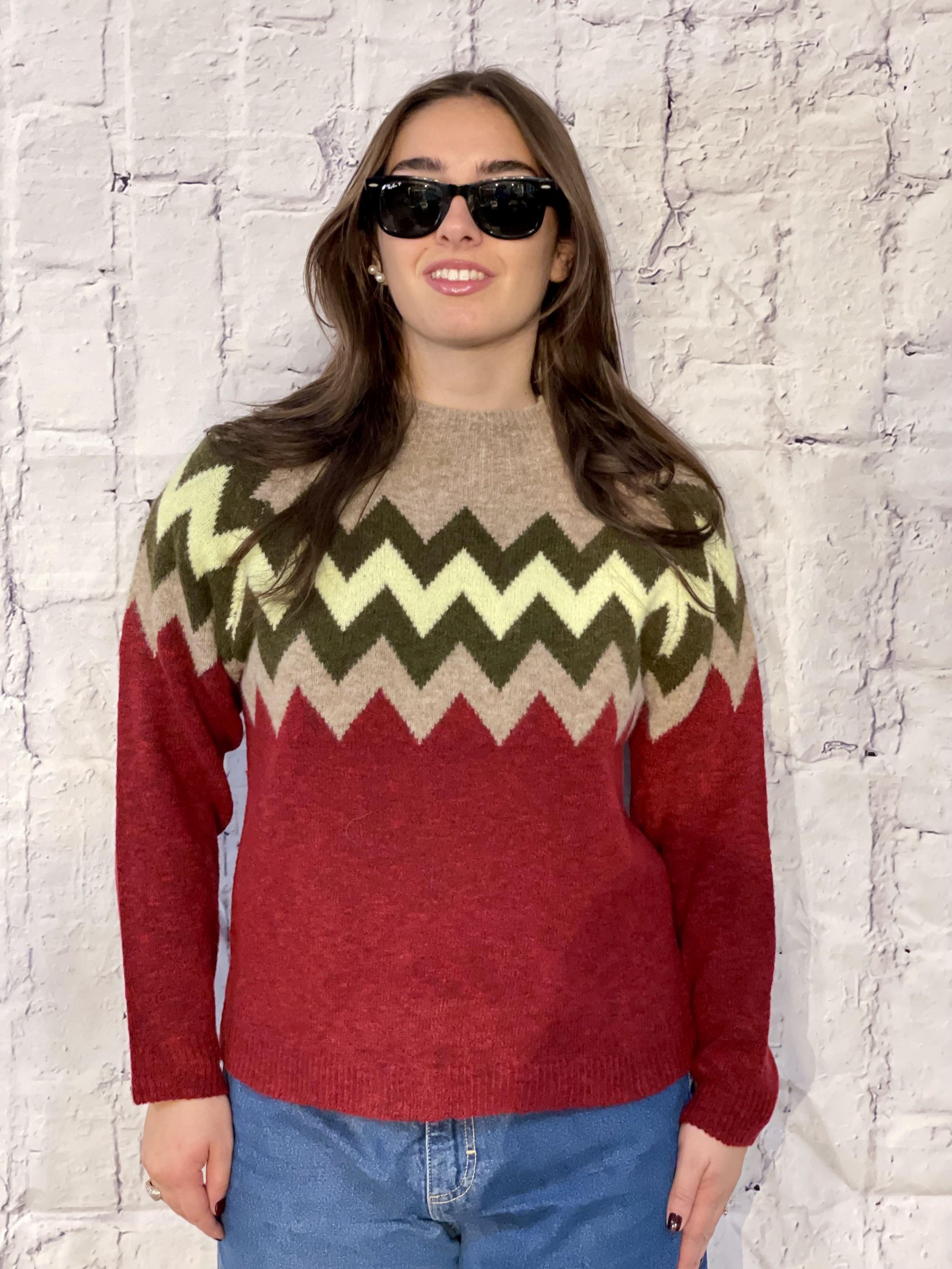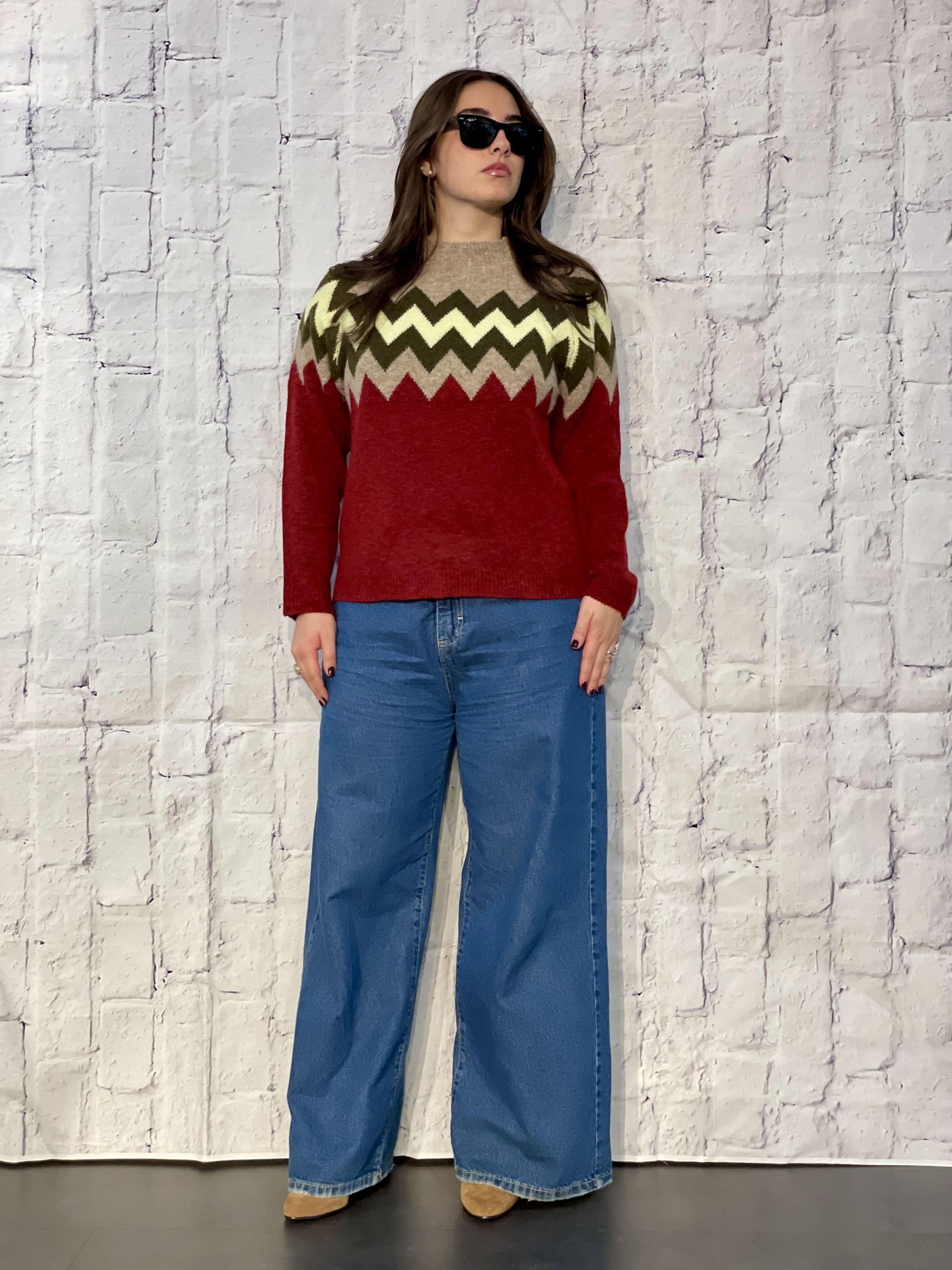 SUSY MIX - MAGLIA PARICOLLO BORDEAUX CON FANTASIA GEOMETRICA ART. M92154