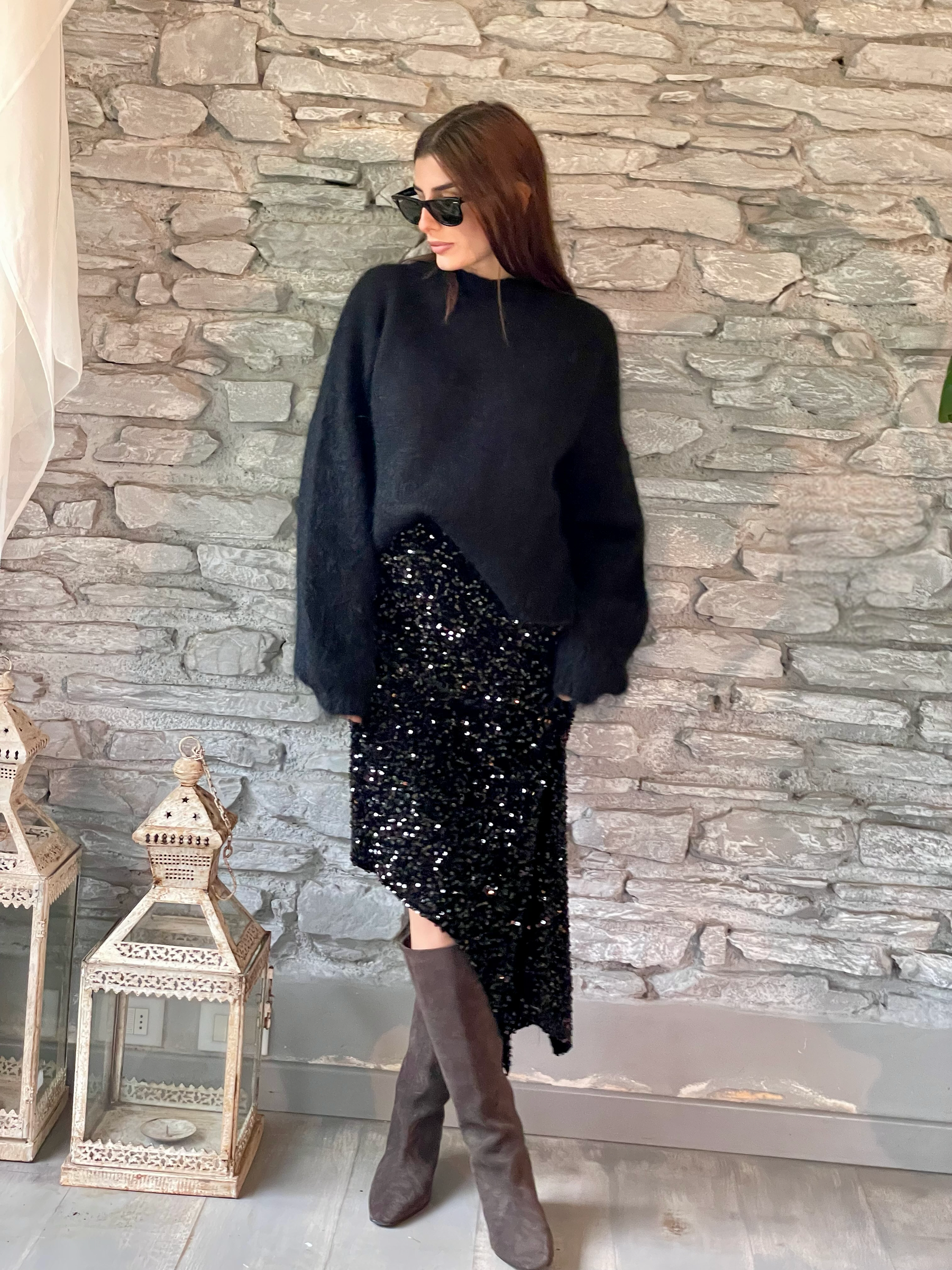TENSIONE IN - MAGLIA BLU COLLO A CRATERE ART. D82044
