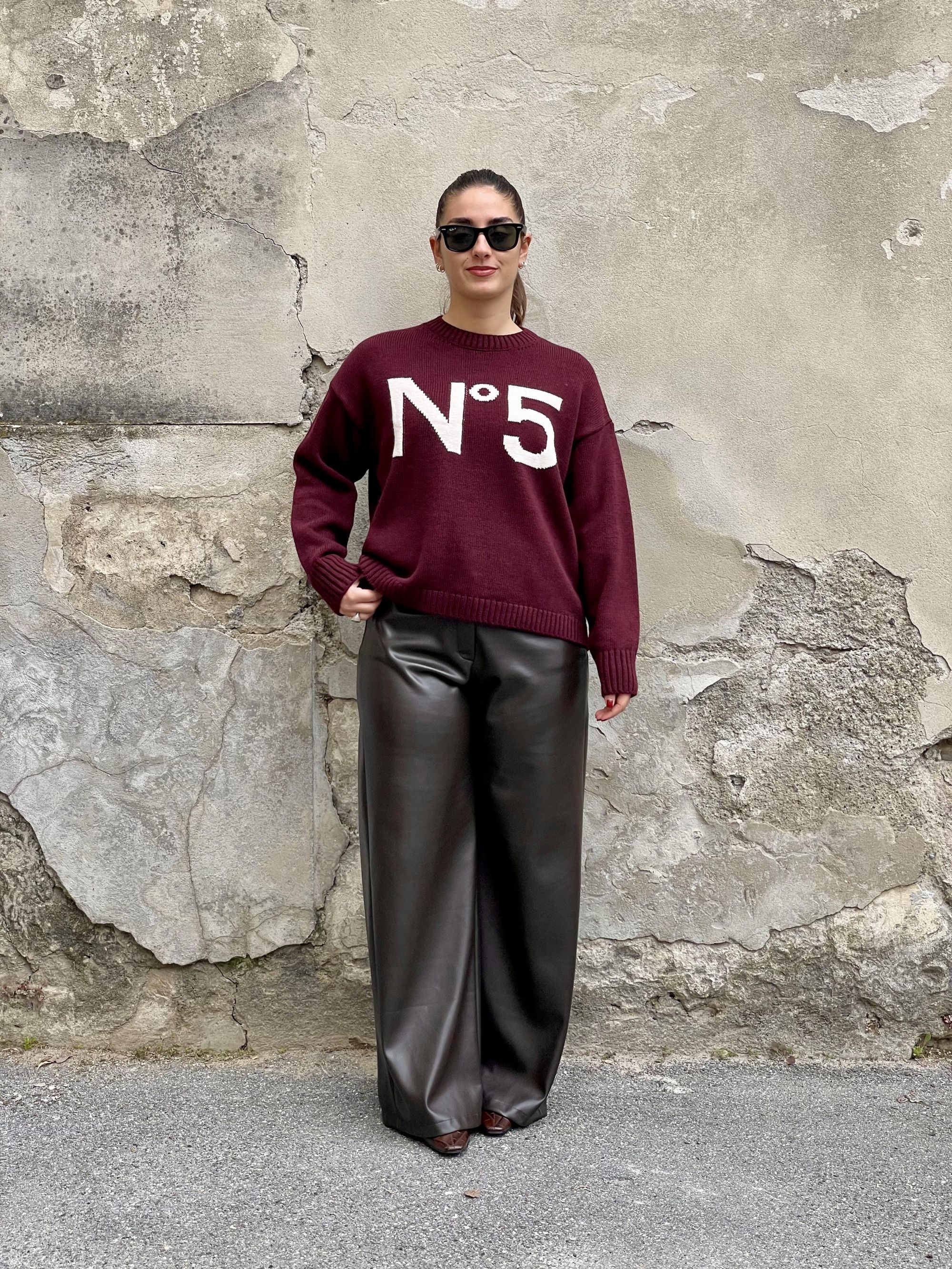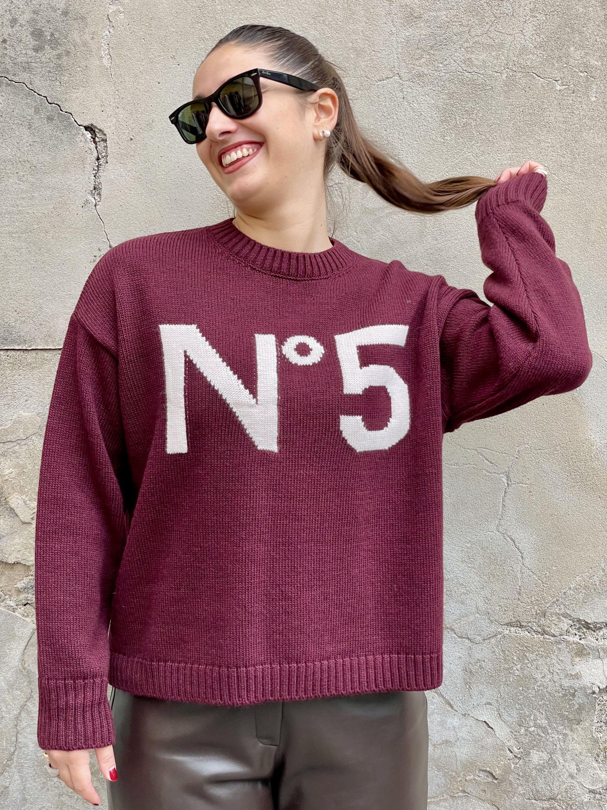 TENSIONE IN - MAGLIA BORDEAUX CON RICAMO N°5 ART. W5HMJ56A400