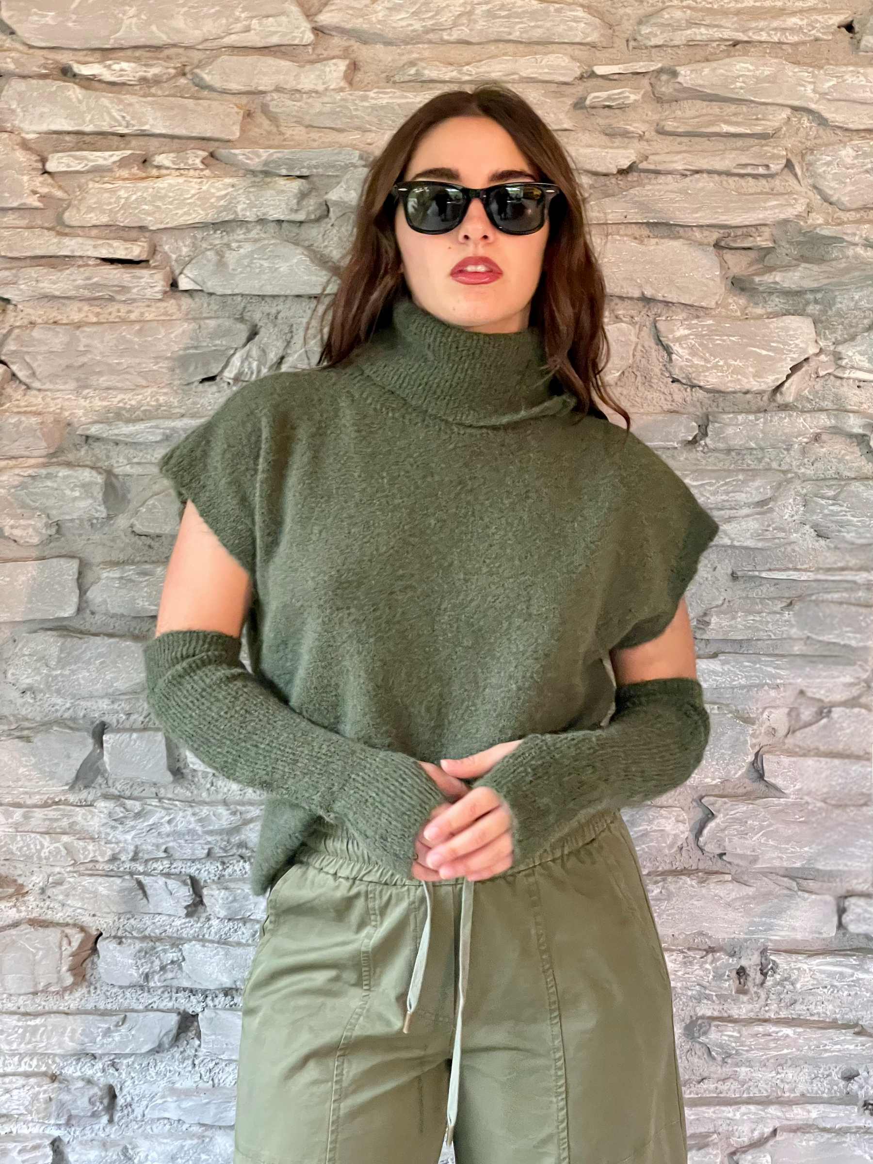 TENSIONE IN - MAGLIA COLLO ALTO CON MANICOTTI VERDE ART. 26030