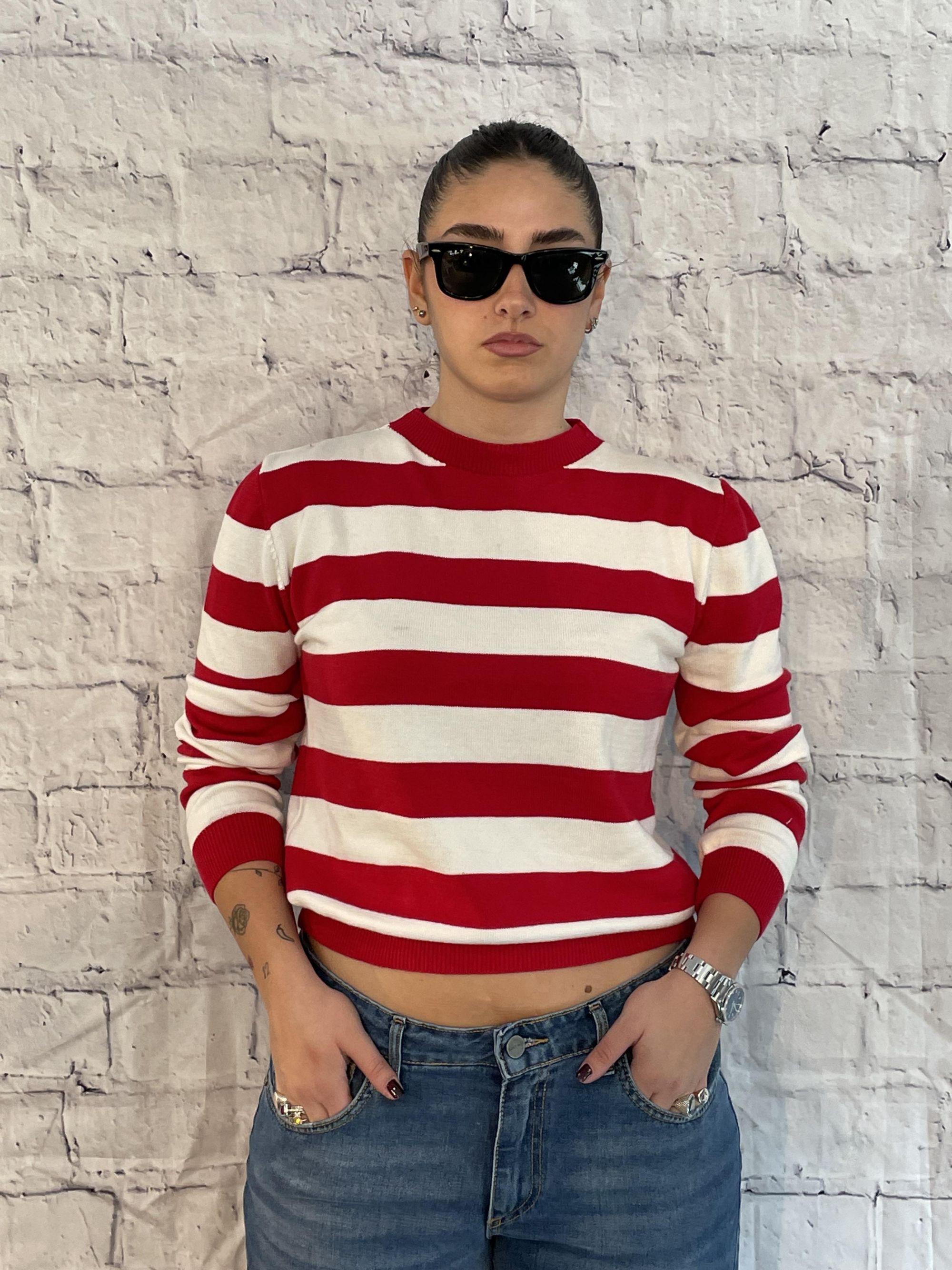 TENSIONE IN - MAGLIA CROPPED A RIGHE ROSSE ART. 26138