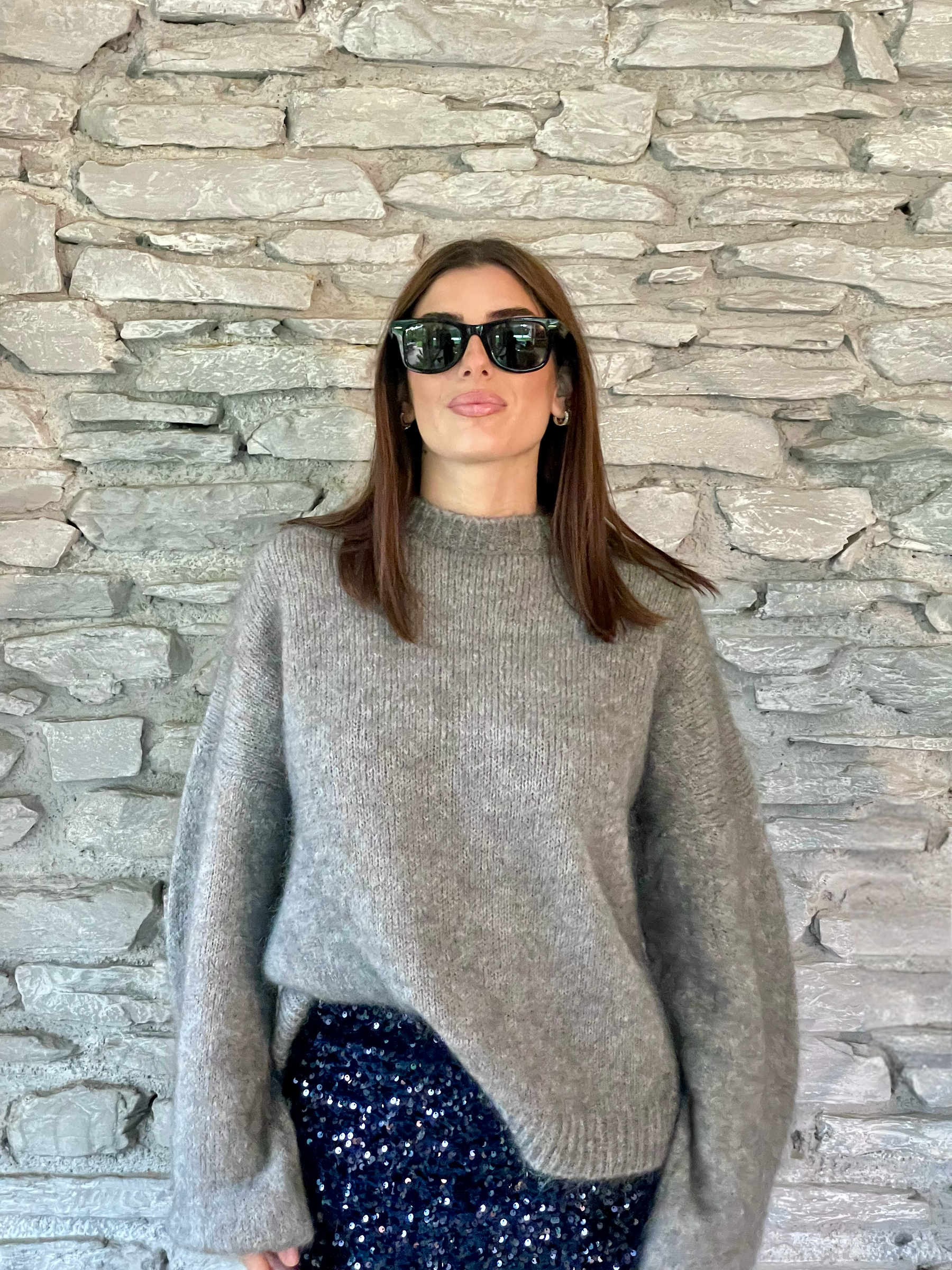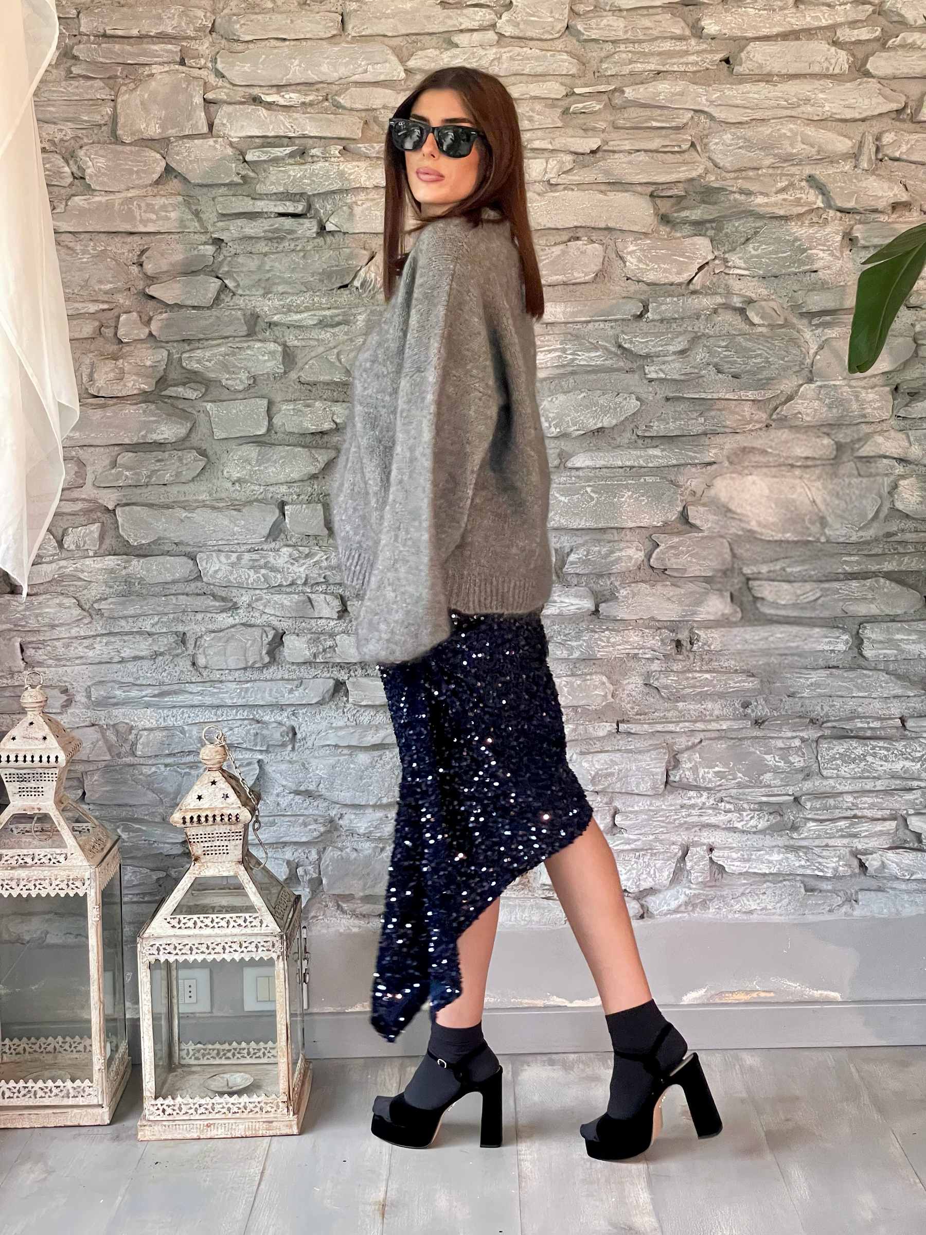 TENSIONE IN - MAGLIA GRIGIA CON MANICHE A PALLONCINO ART. 252PA9393