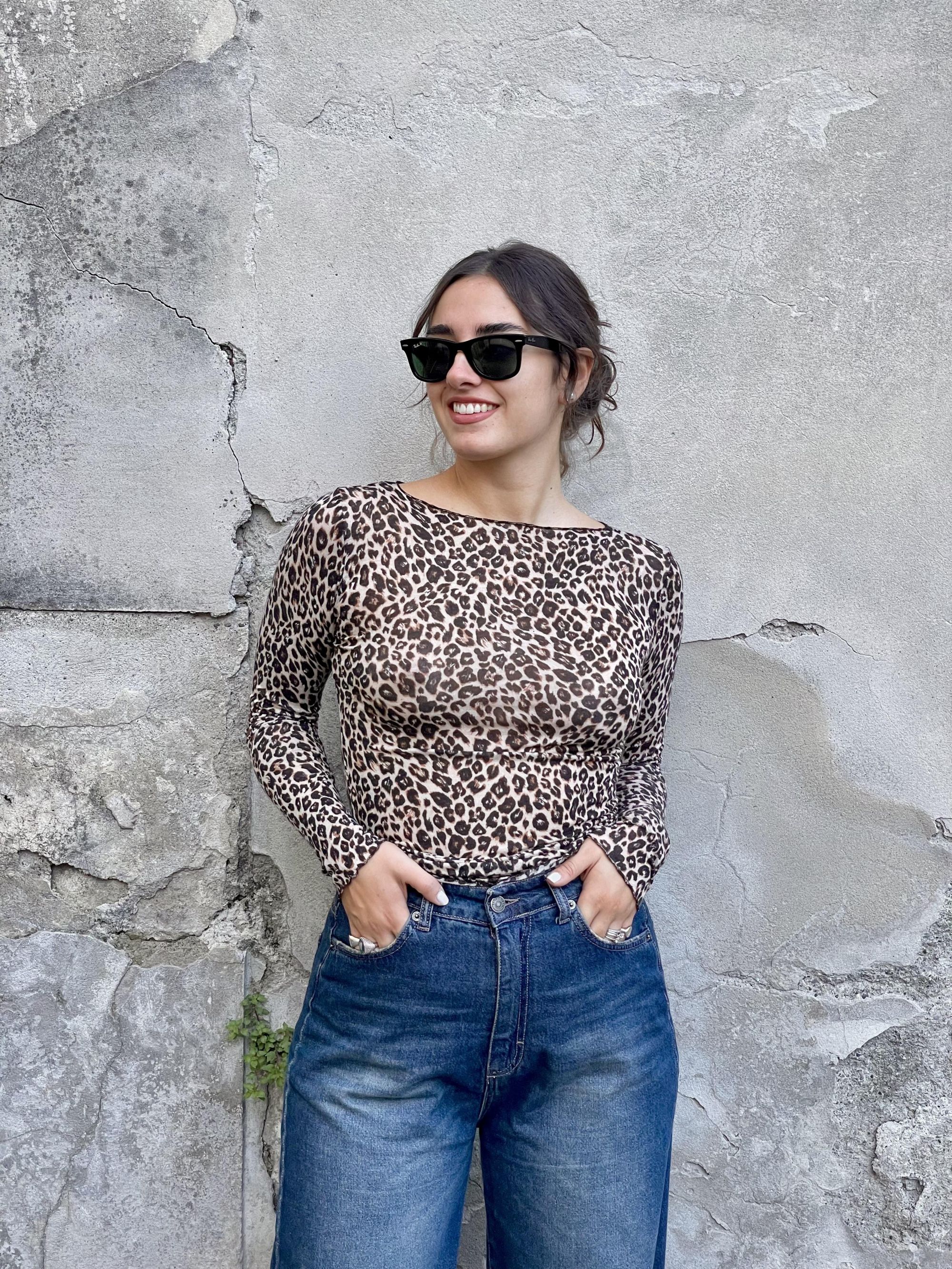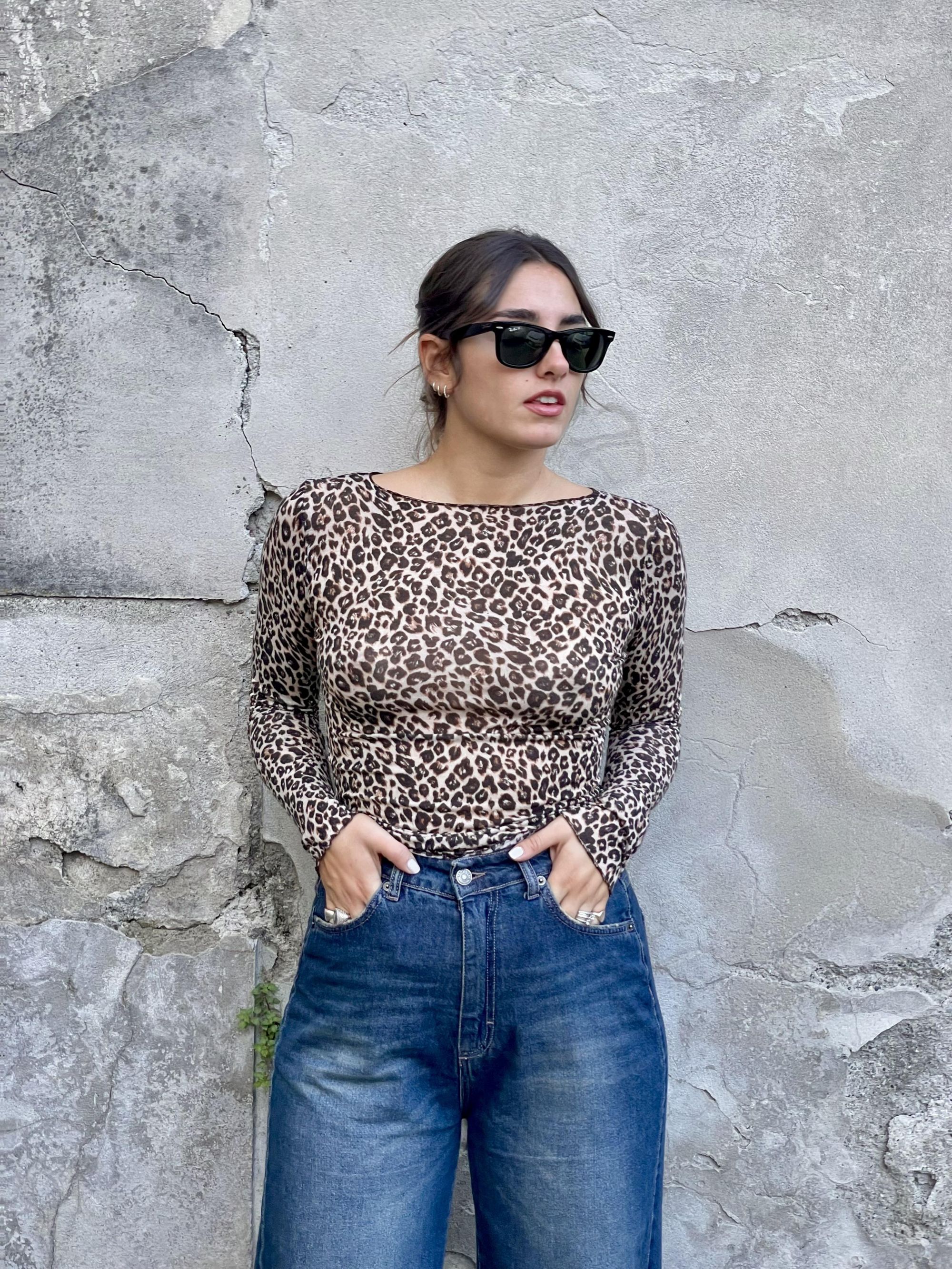 TENSIONE IN - MAGLIA LEOPARDATA SCOLLO A BARCA MISTO CACHEMIRE ART. 100BARCA-AI25