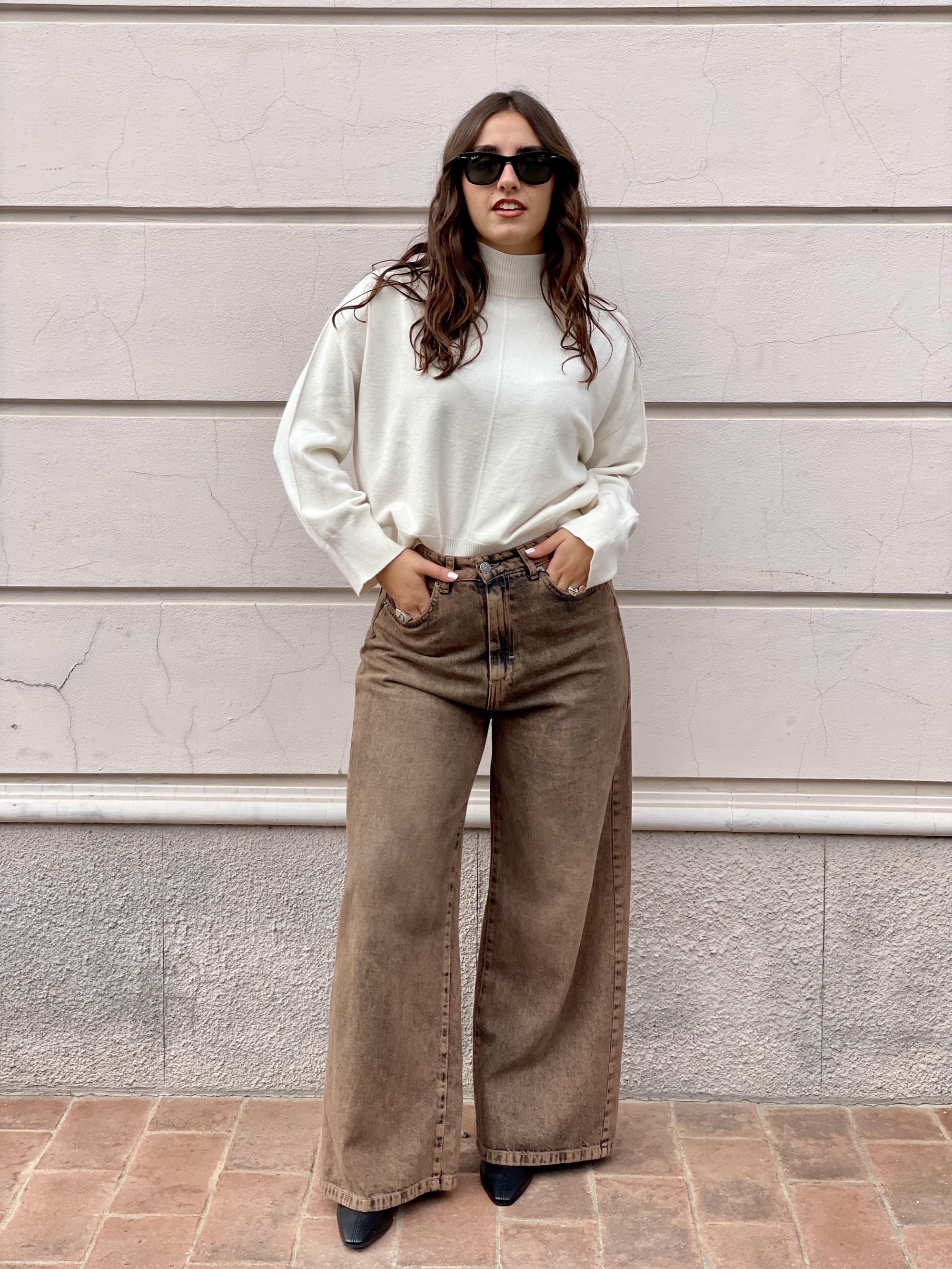 TENSIONE IN - MAGLIA MARRONE CON RICAMO N°5 ART. W5HMJ56A400