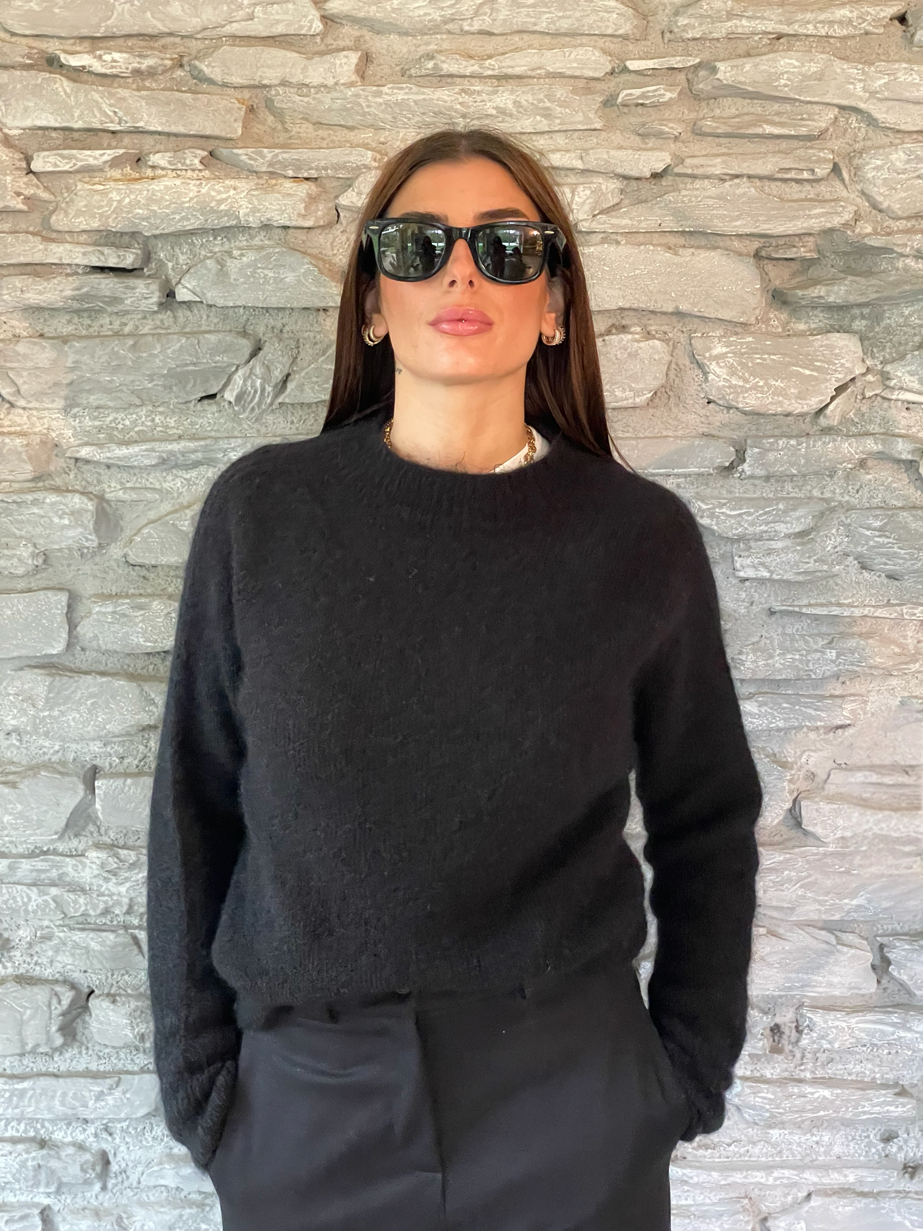 TENSIONE IN - MAGLIA NERA COLLO ALTO CON MANICOTTI ART. 26030