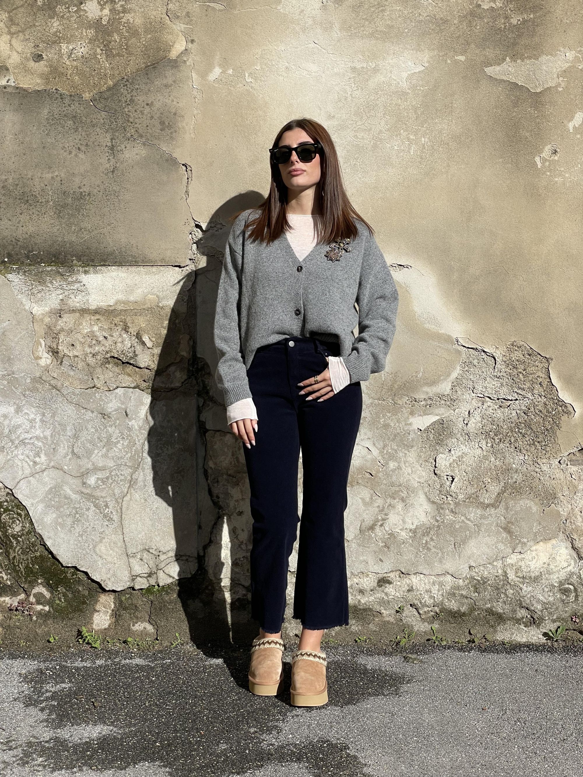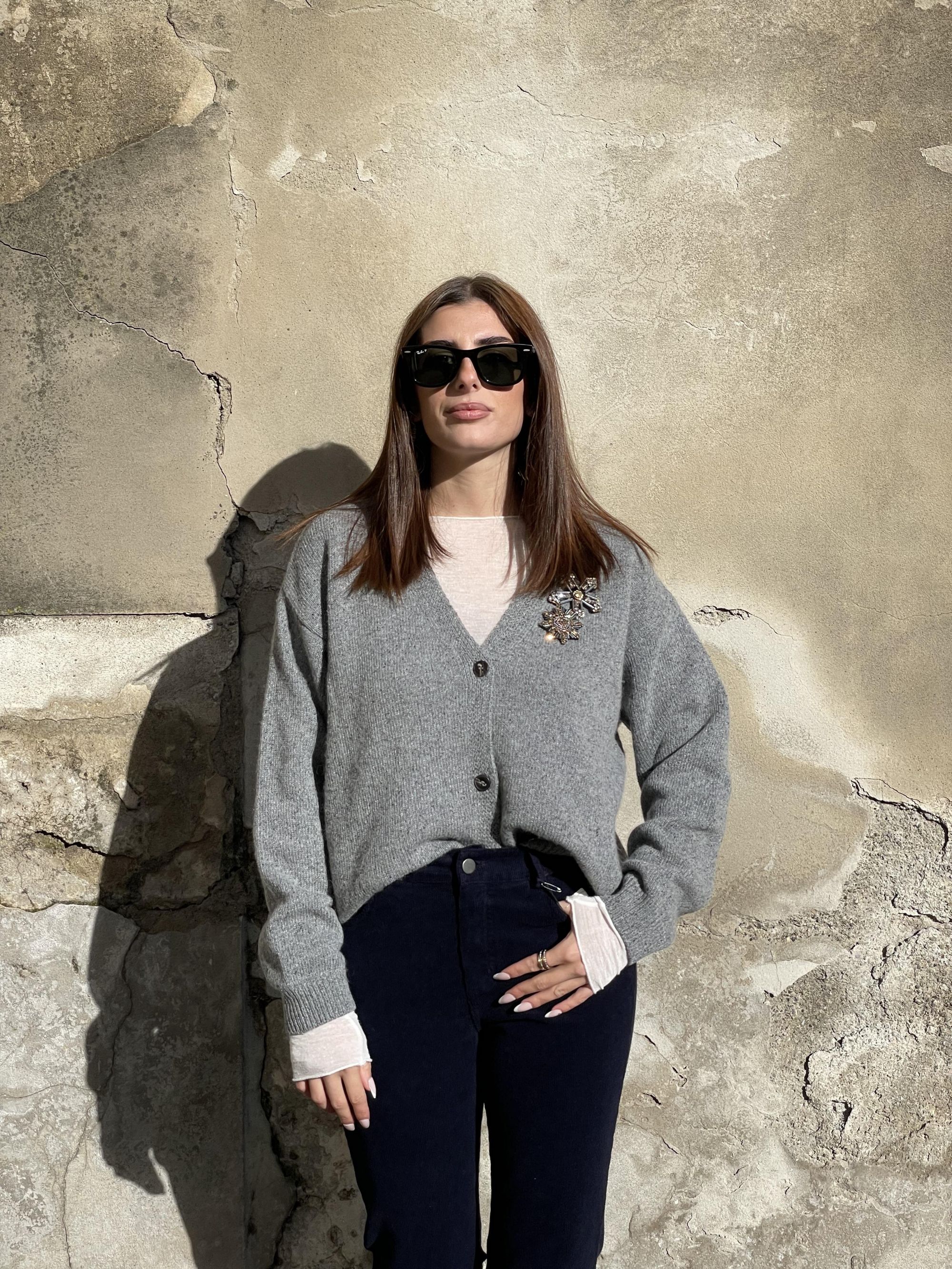 TENSIONE IN - CARDIGAN GRIGIO CON APPLICAZIONI GIOIELLO ART. D82046