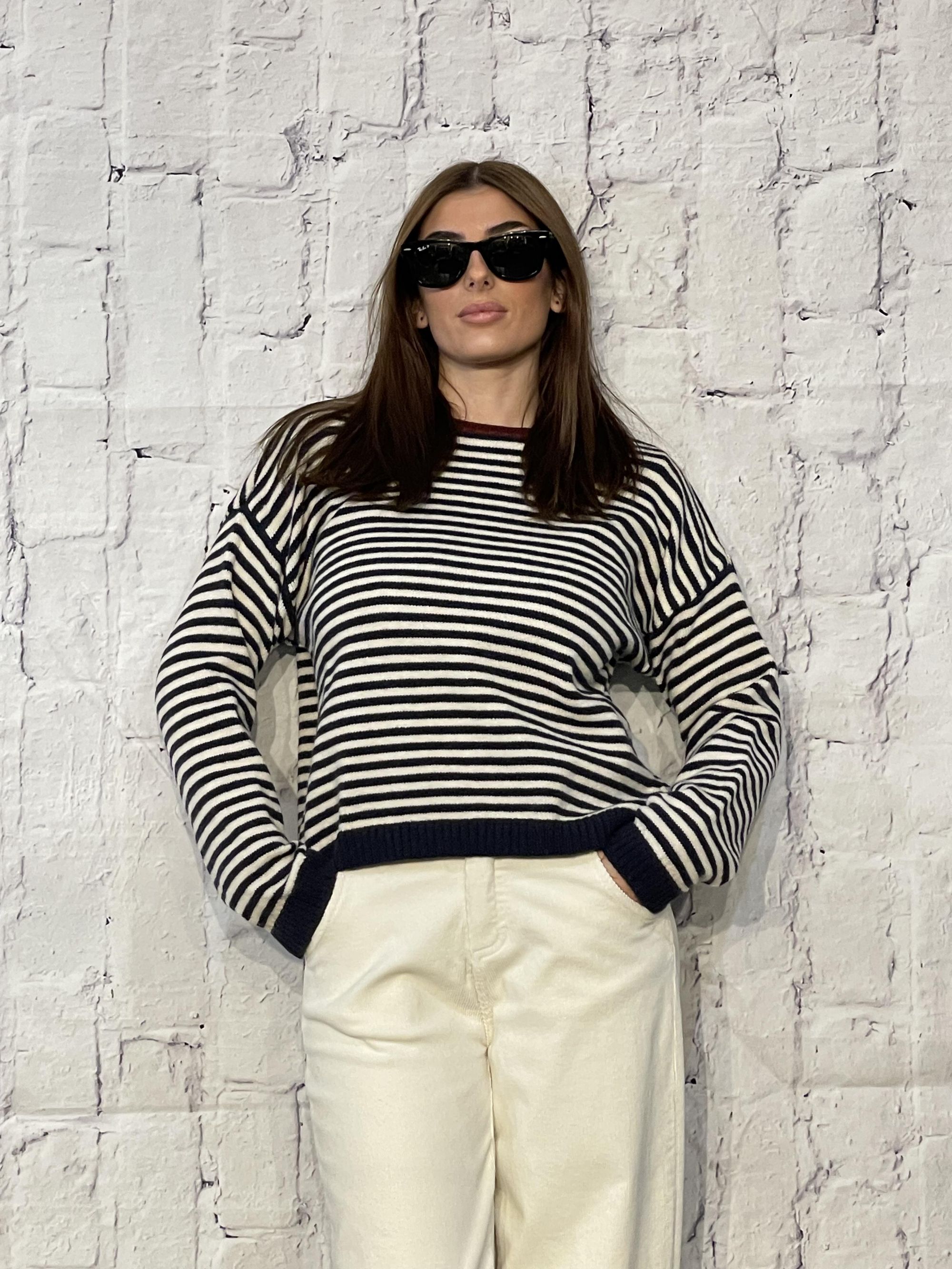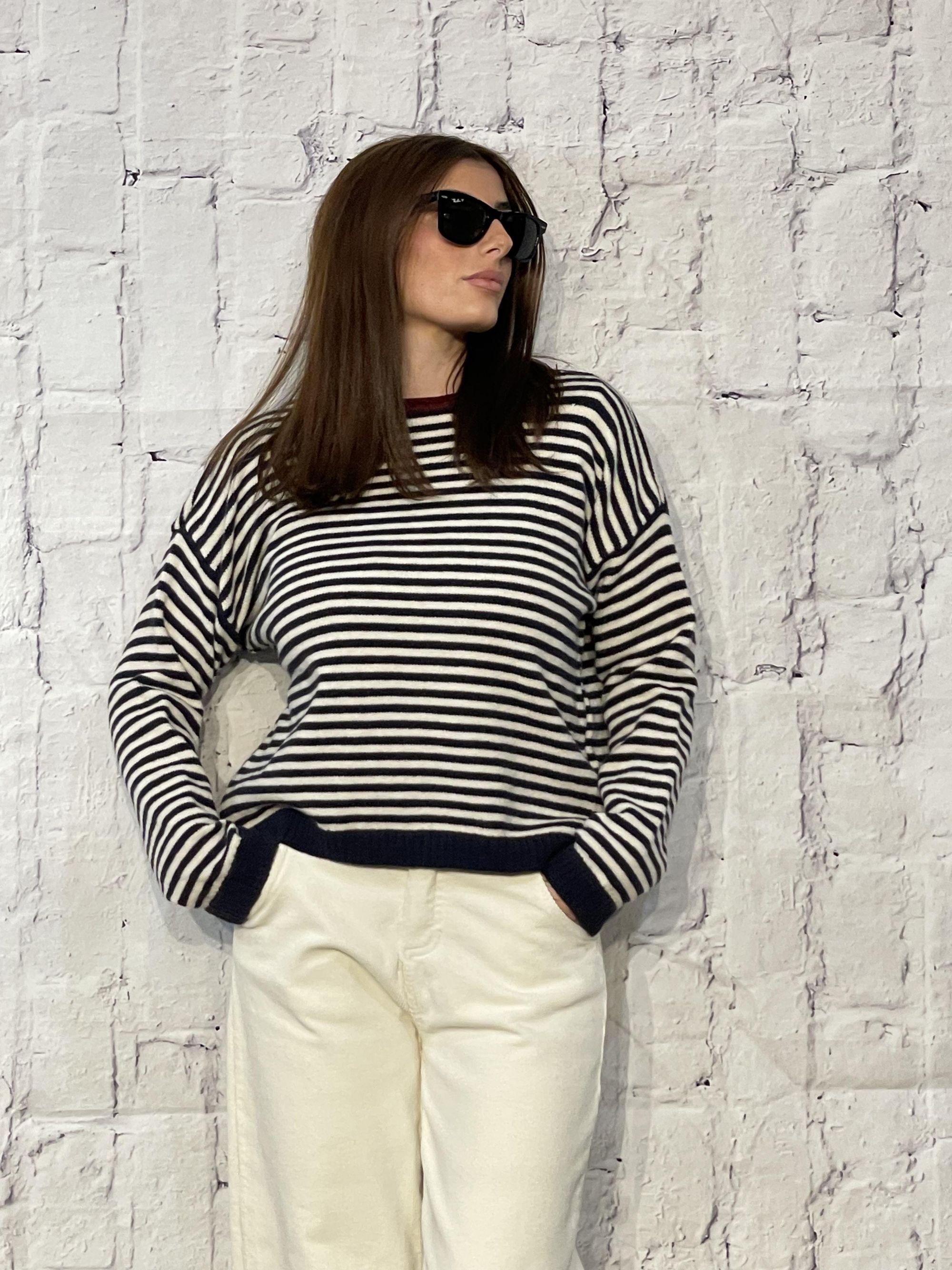 TENSIONE IN - MAGLIA BORDEAUX A RIGHE SCOLLO A BARCA ART. 25866/C