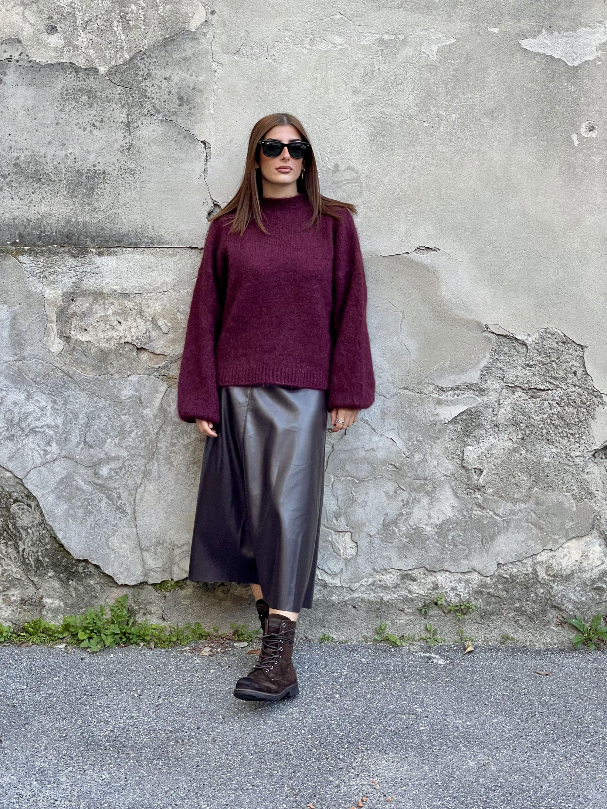 TENSIONE IN - MAGLIA BORDEAUX CON MANICHE A PALLONCINO ART. 252PA9393
