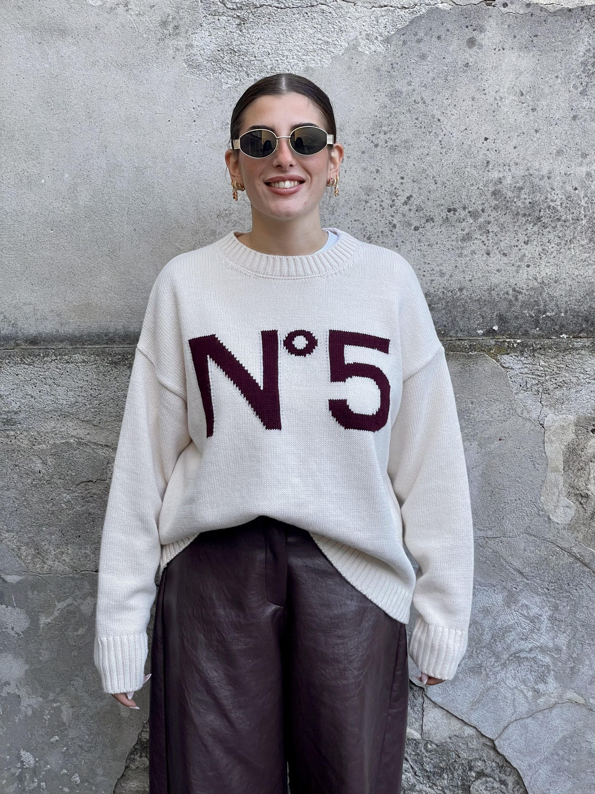 TENSIONE IN - MAGLIA BORDEAUX CON RICAMO N°5 ART. W5HMJ56A400
