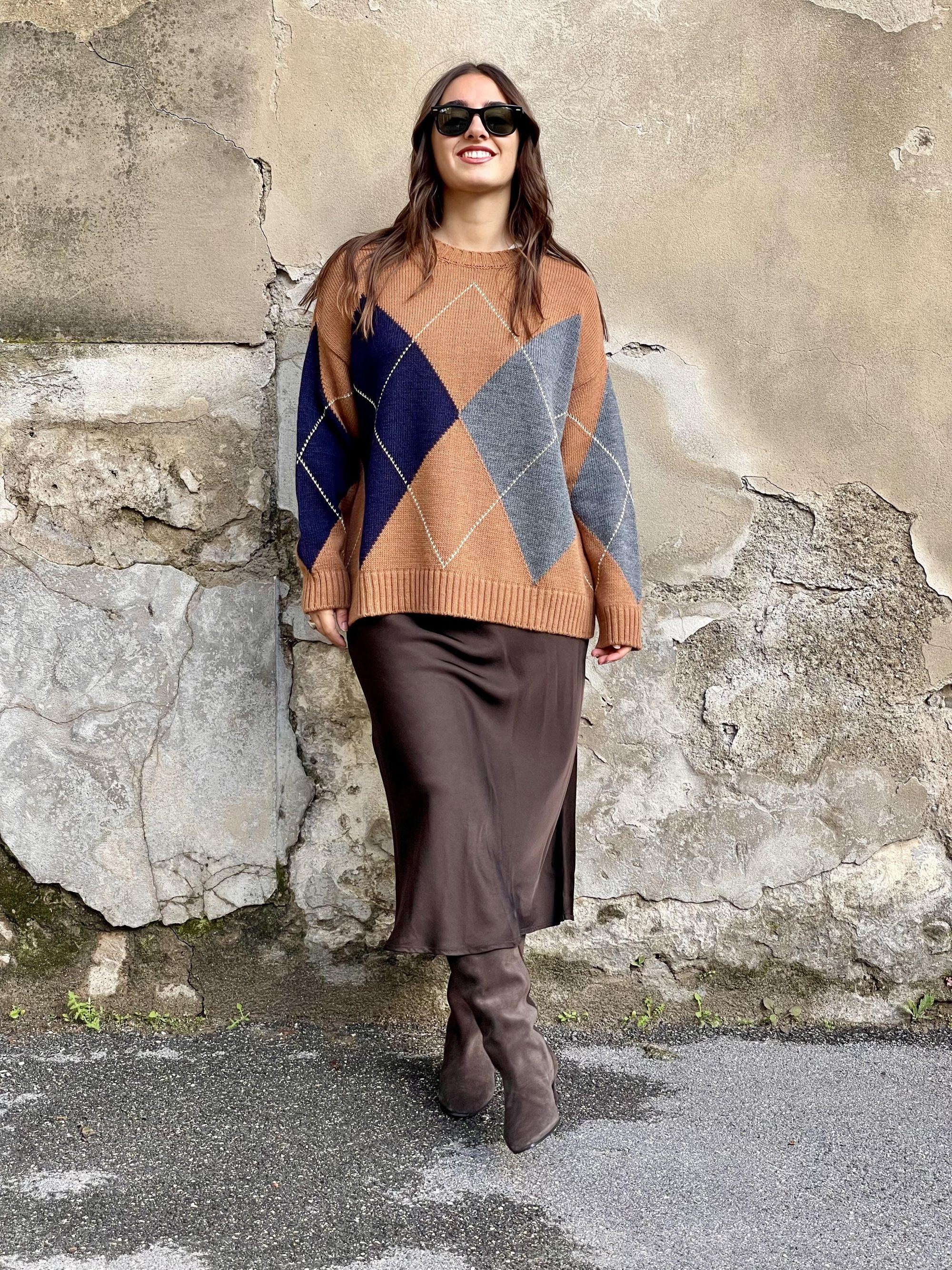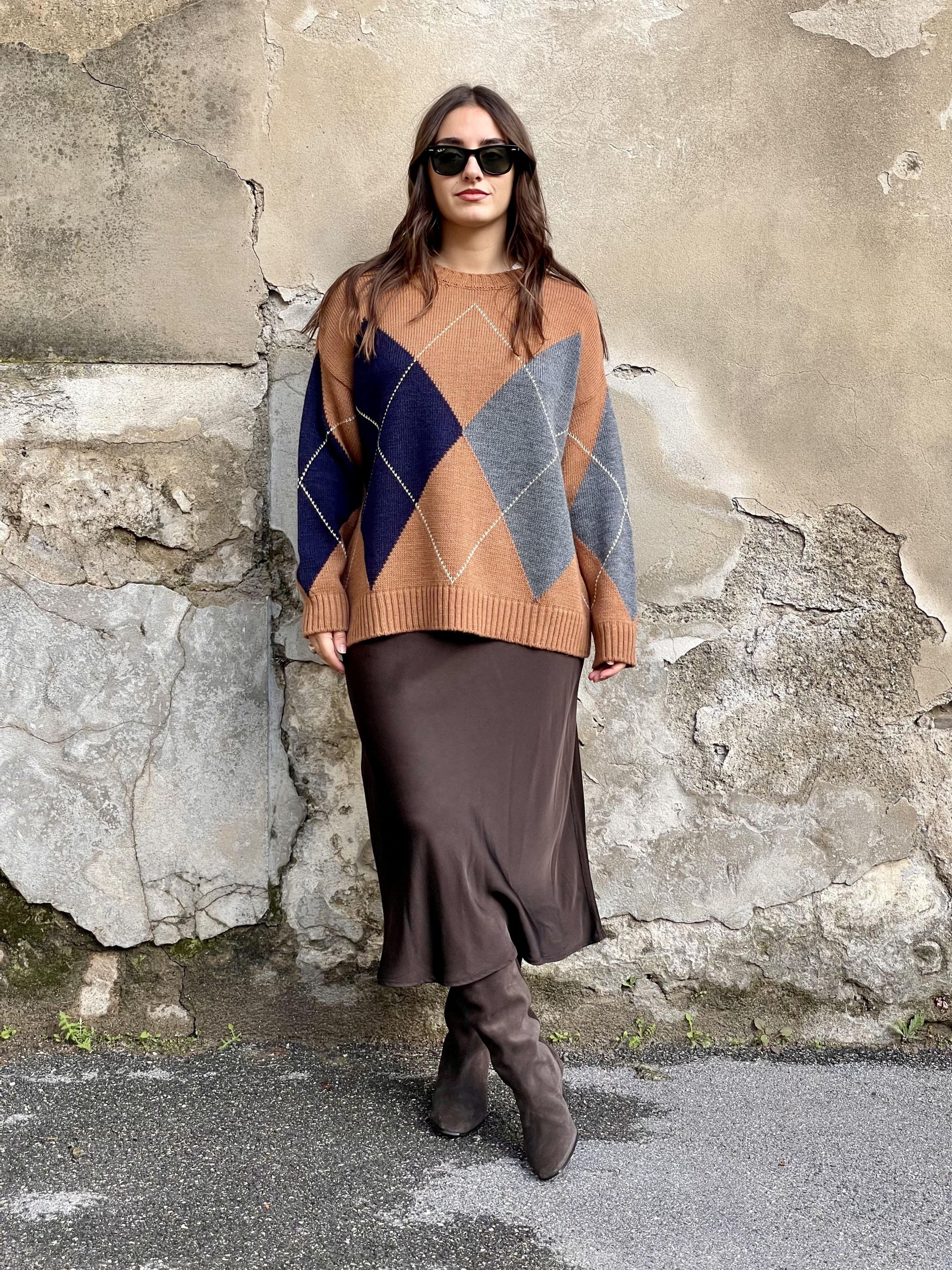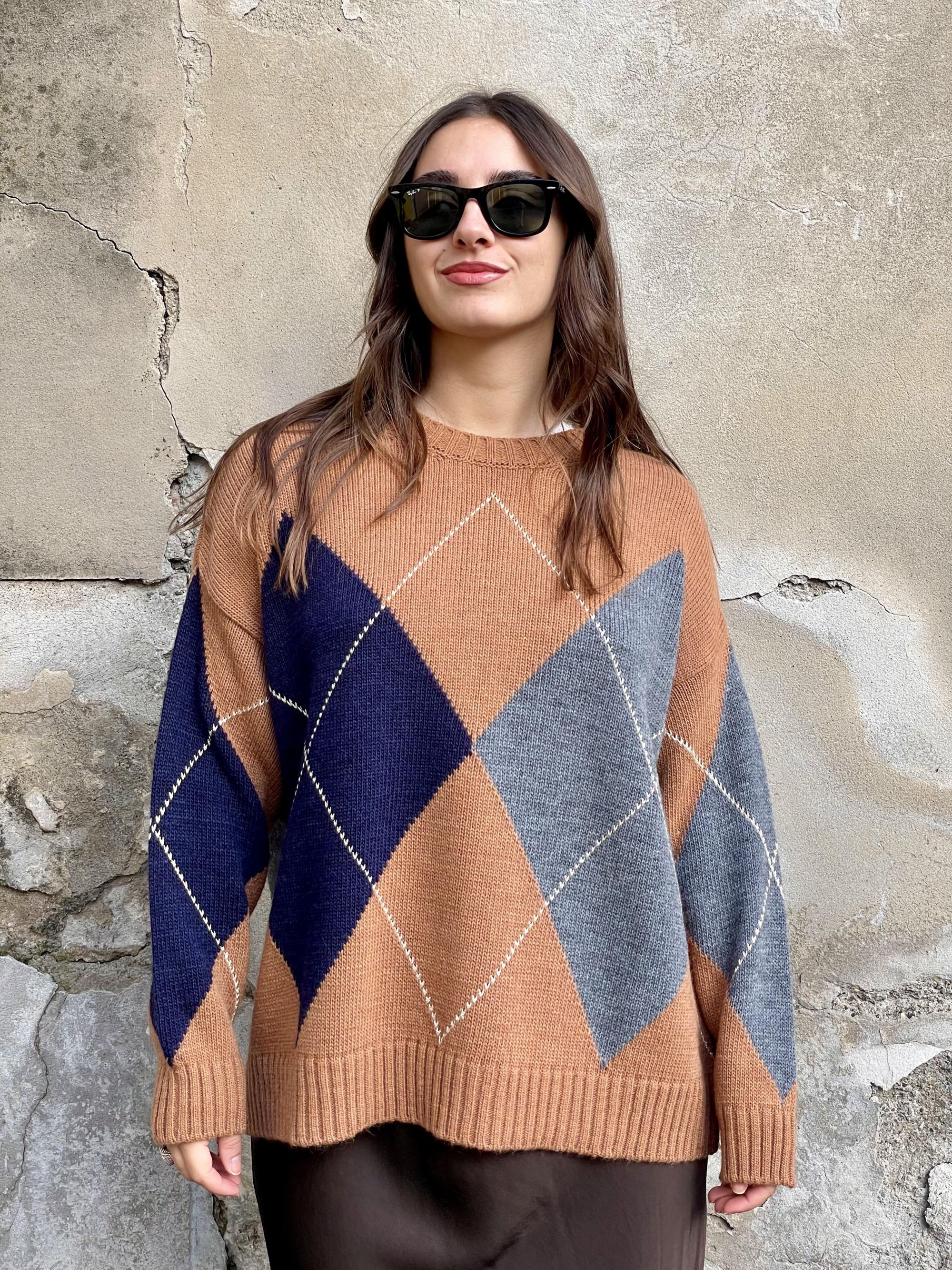 TENSIONE IN - MAGLIA CAMMELLO A LOSANGHE CON FILO LUREX ART. D81292