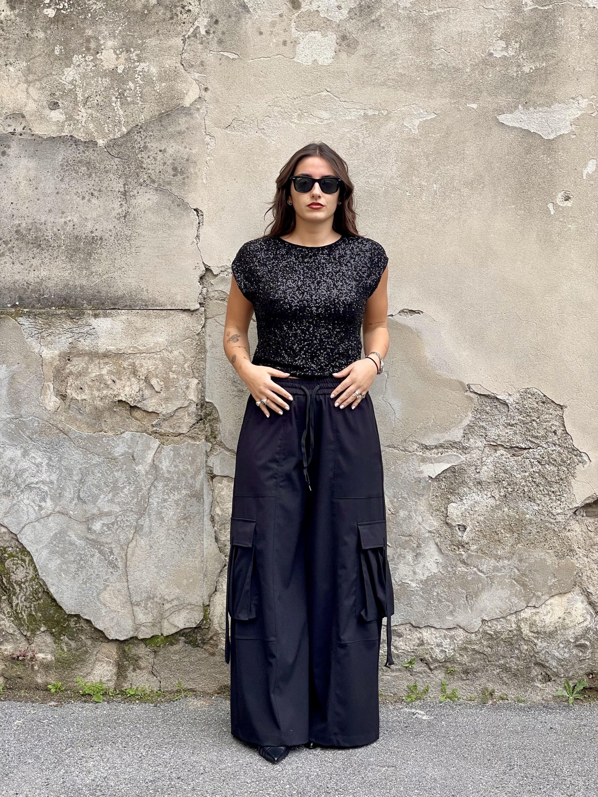 SUSY MIX - MAGLIA CON PAILLETTES NERA ART. B05029