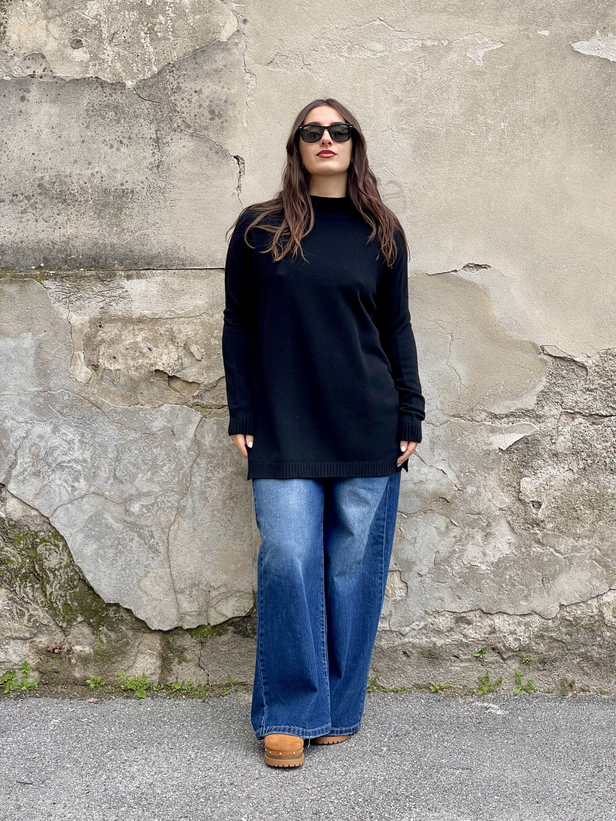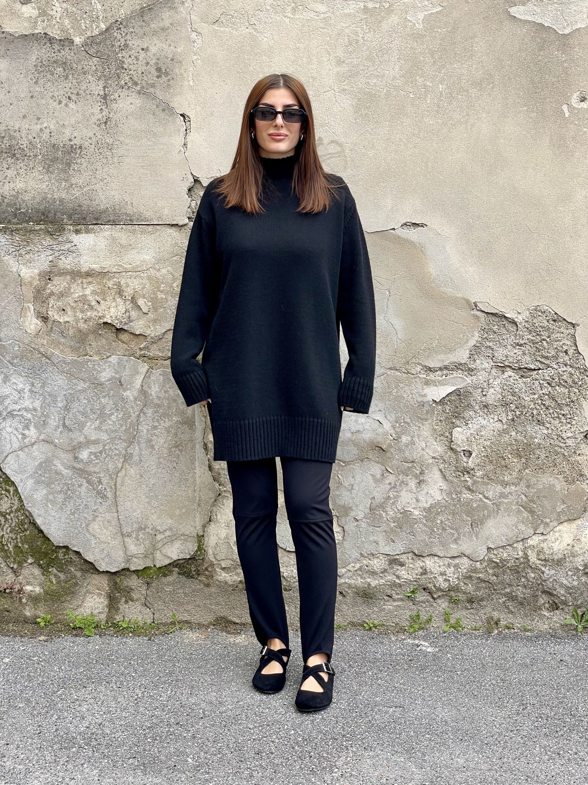 TENSIONE IN - MAXI MAGLIA NERA COLLO A CRATERE ART. D82035