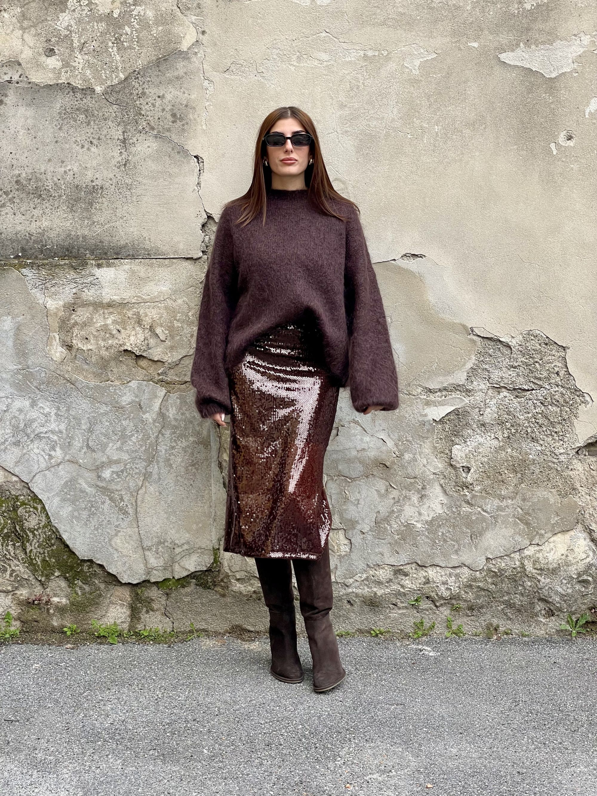 TENSIONE IN - MAGLIA MARRONE CON MANICHE A PALLONCINO ART. 252PA9393