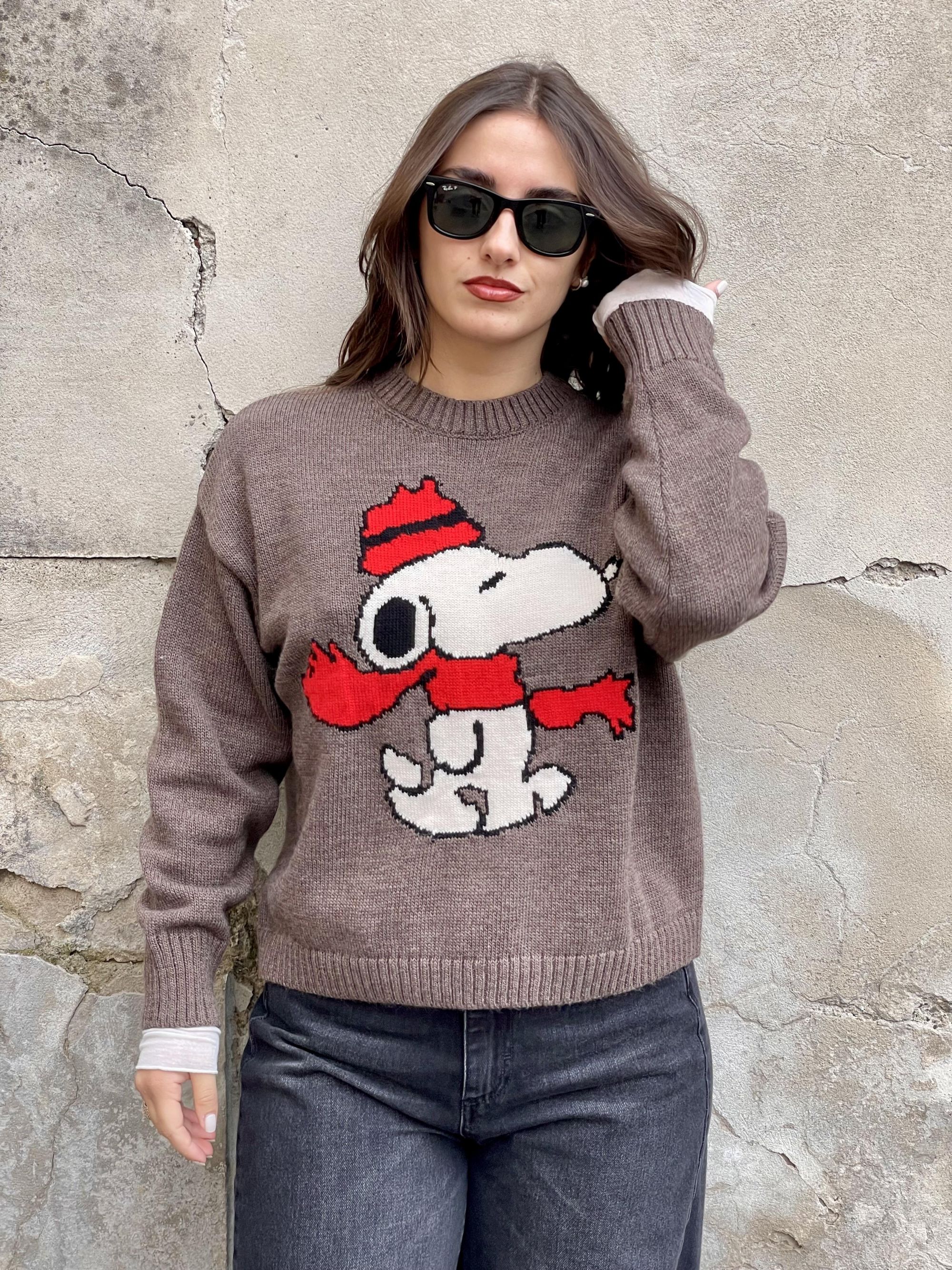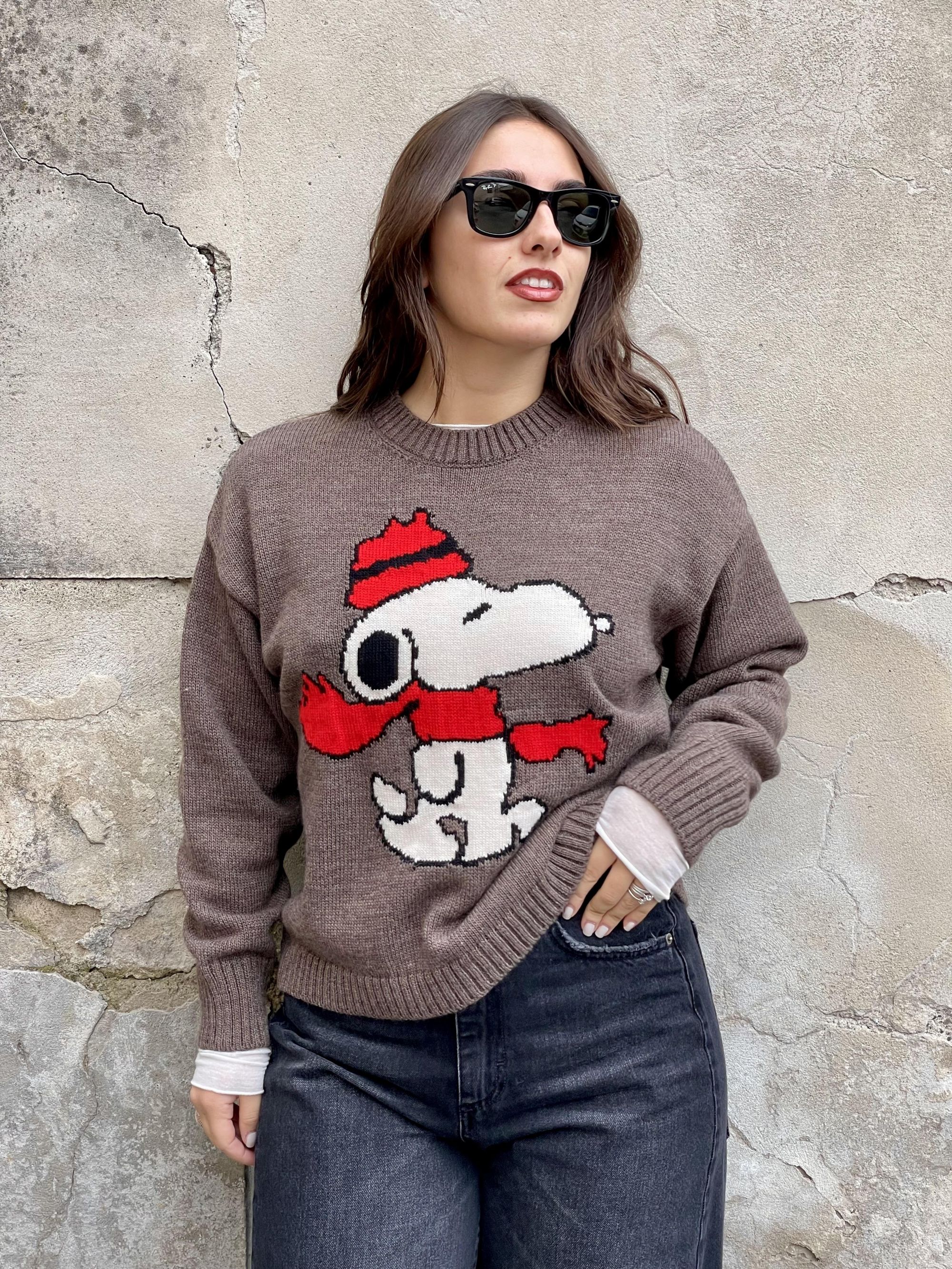 TENSIONE IN - MAGLIA MARRONE CON STAMPA SNOOPY ART. W5HMJ59A400SN