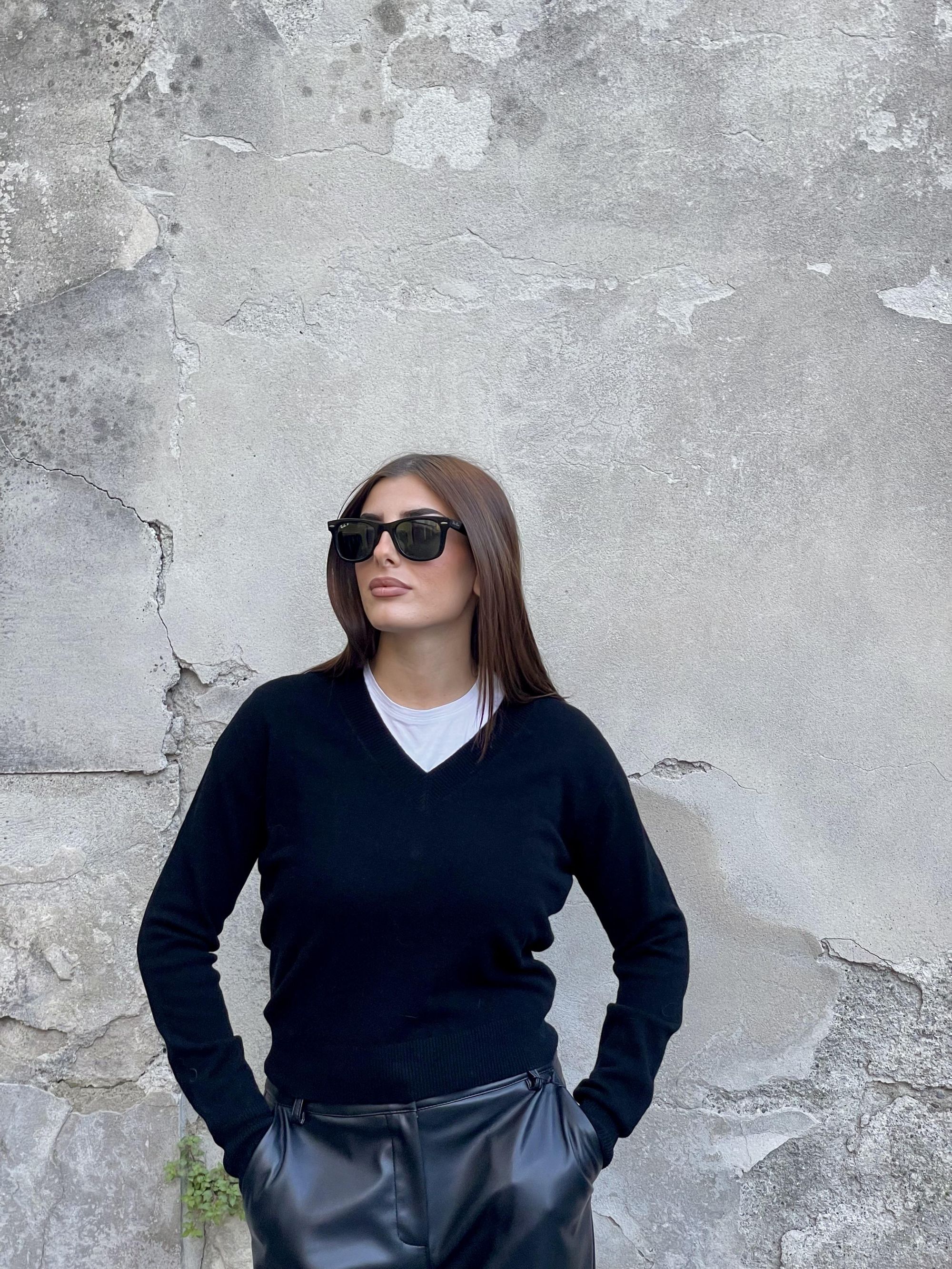 TENSIONE IN - MAGLIA NERA SCOLLO A V ART. WL180AI25