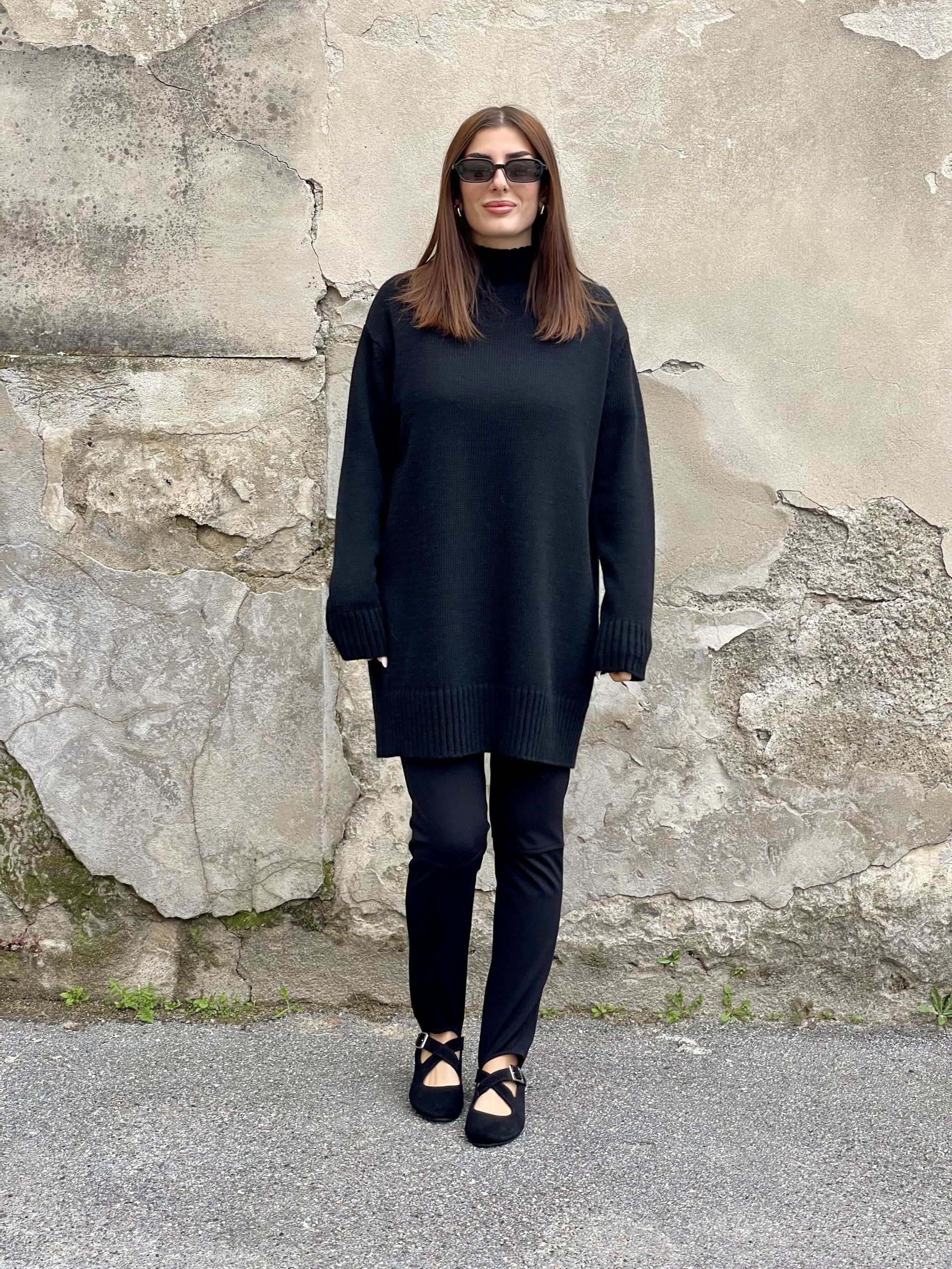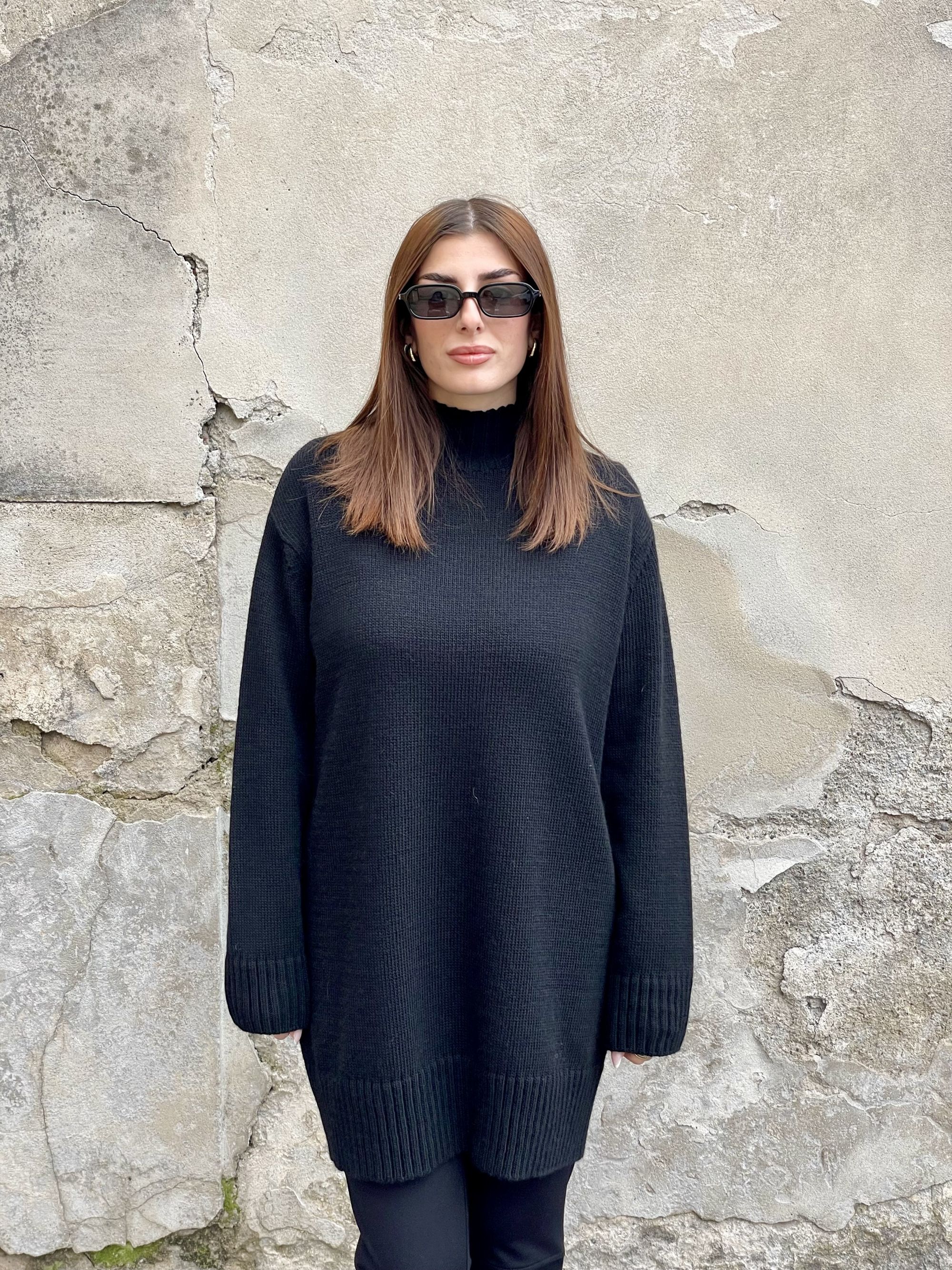 TENSIONE IN - MAXI MAGLIA NERA COLLO A CRATERE ART. D82035