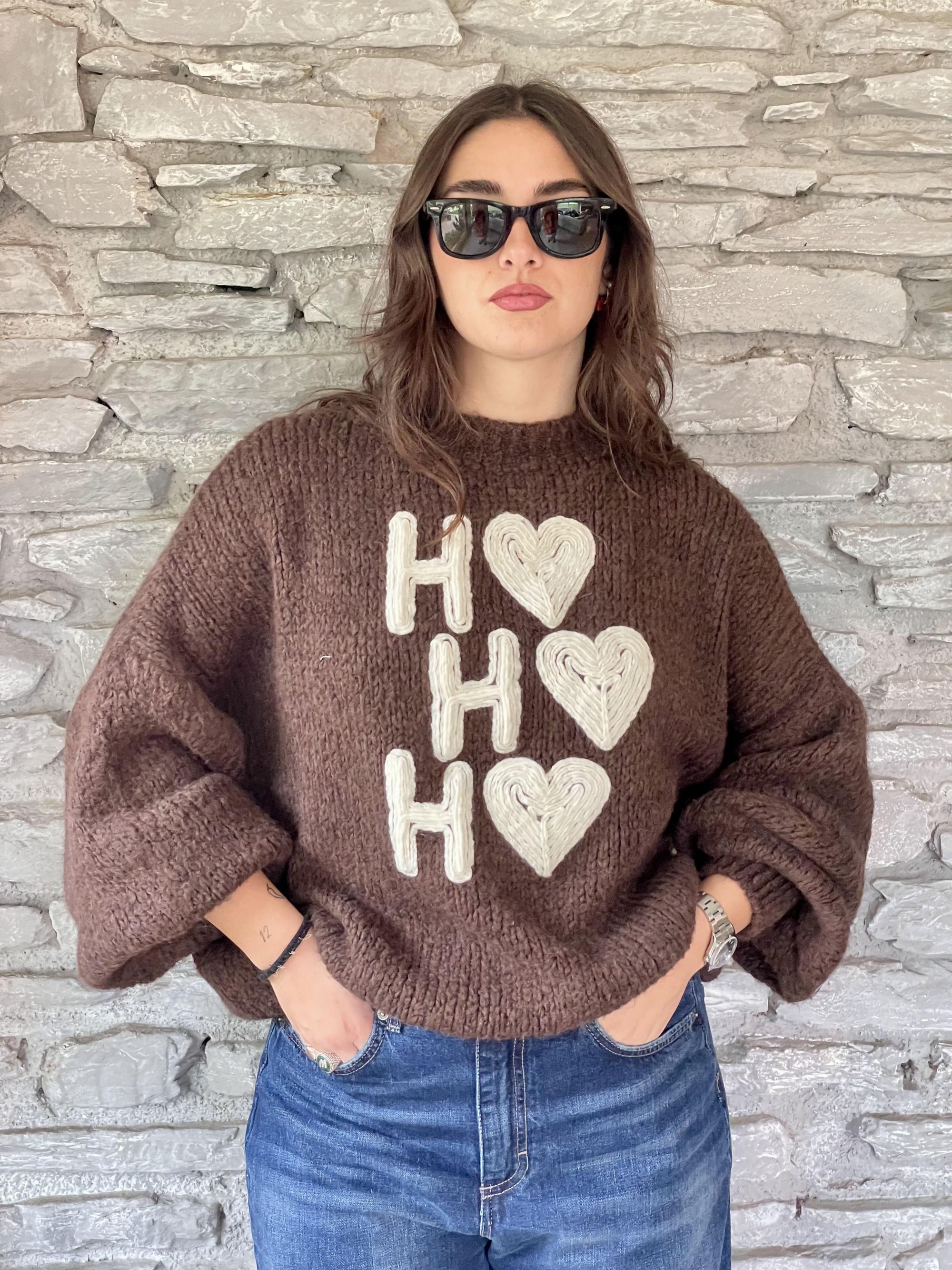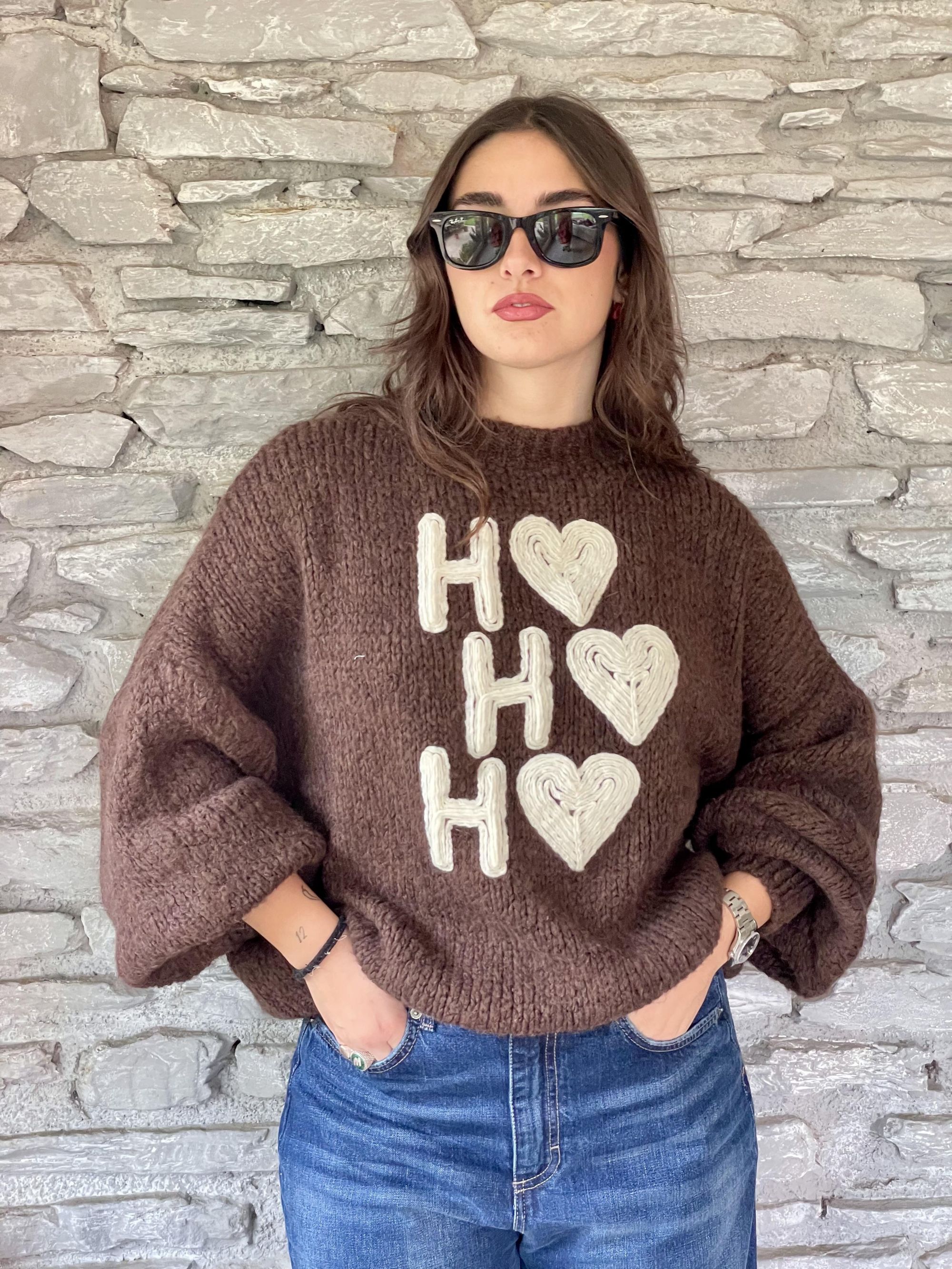 YOUDECIDE - MAGLIA MARRONE CON SCRITTA RICAMATA ART. AL62462G