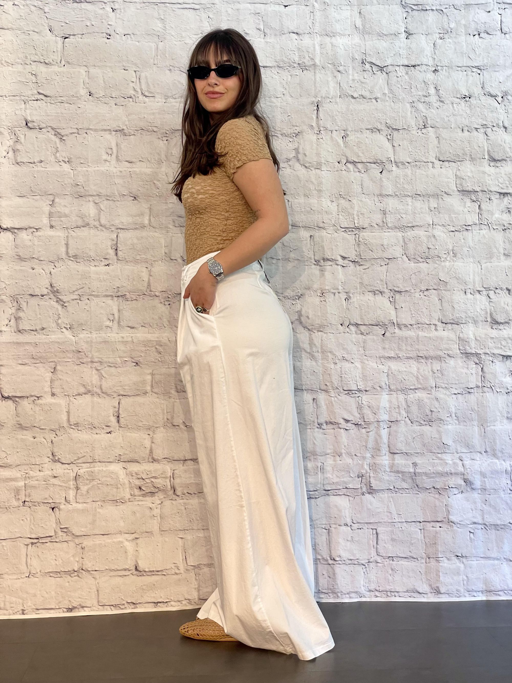TENSIONE IN - PANTALONE PANNA WIDE LEG CON TASCHINI DAVANTI ART. CJ12721