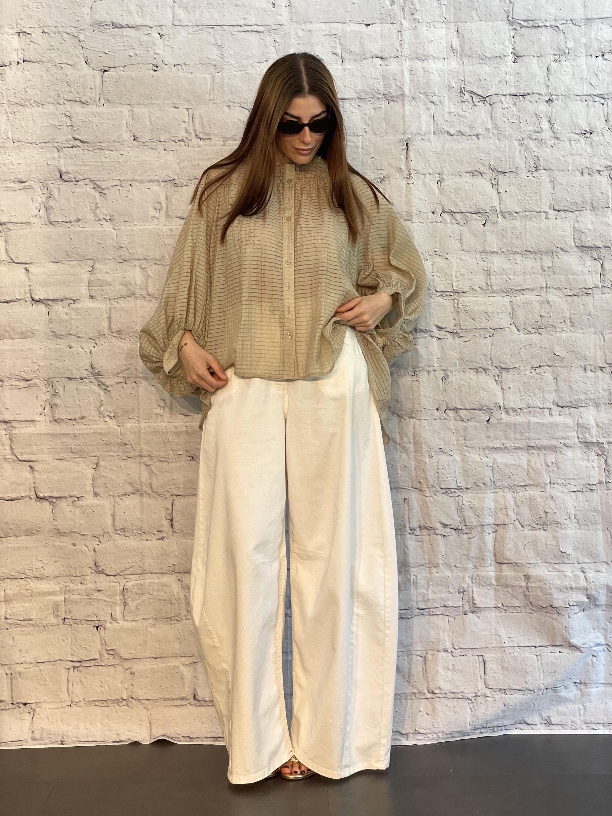 TENSIONE IN - PANTALONE PANNA WIDE LEG CON TASCHINI DAVANTI ART. CJ12721