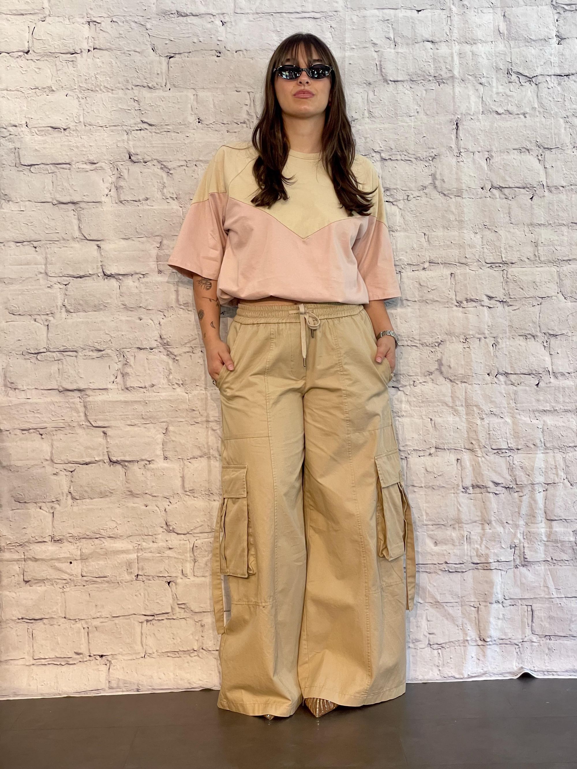 TENSIONE IN - PANTALONE CARGO BEIGE AMPIO ART. HM707