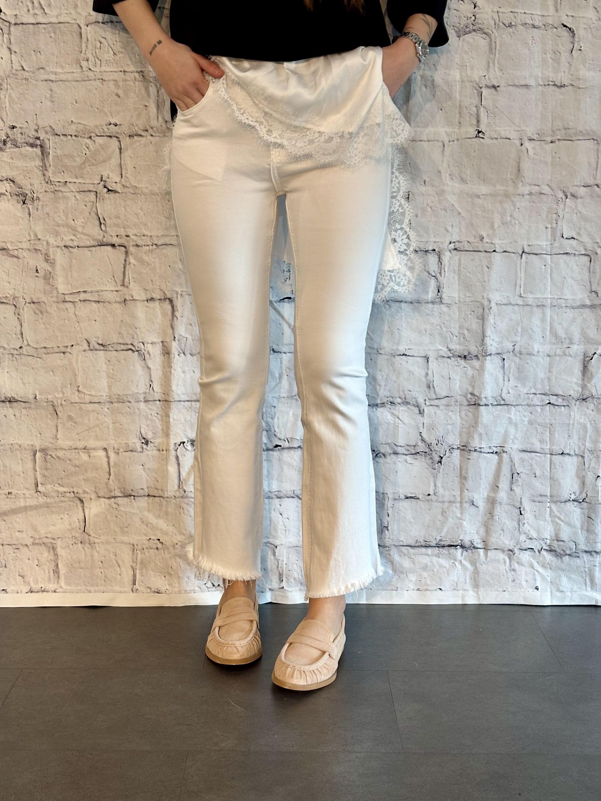 SUSY MIX - PANTALONE BIANCO CROPPED A ZAMPA ART. 68261