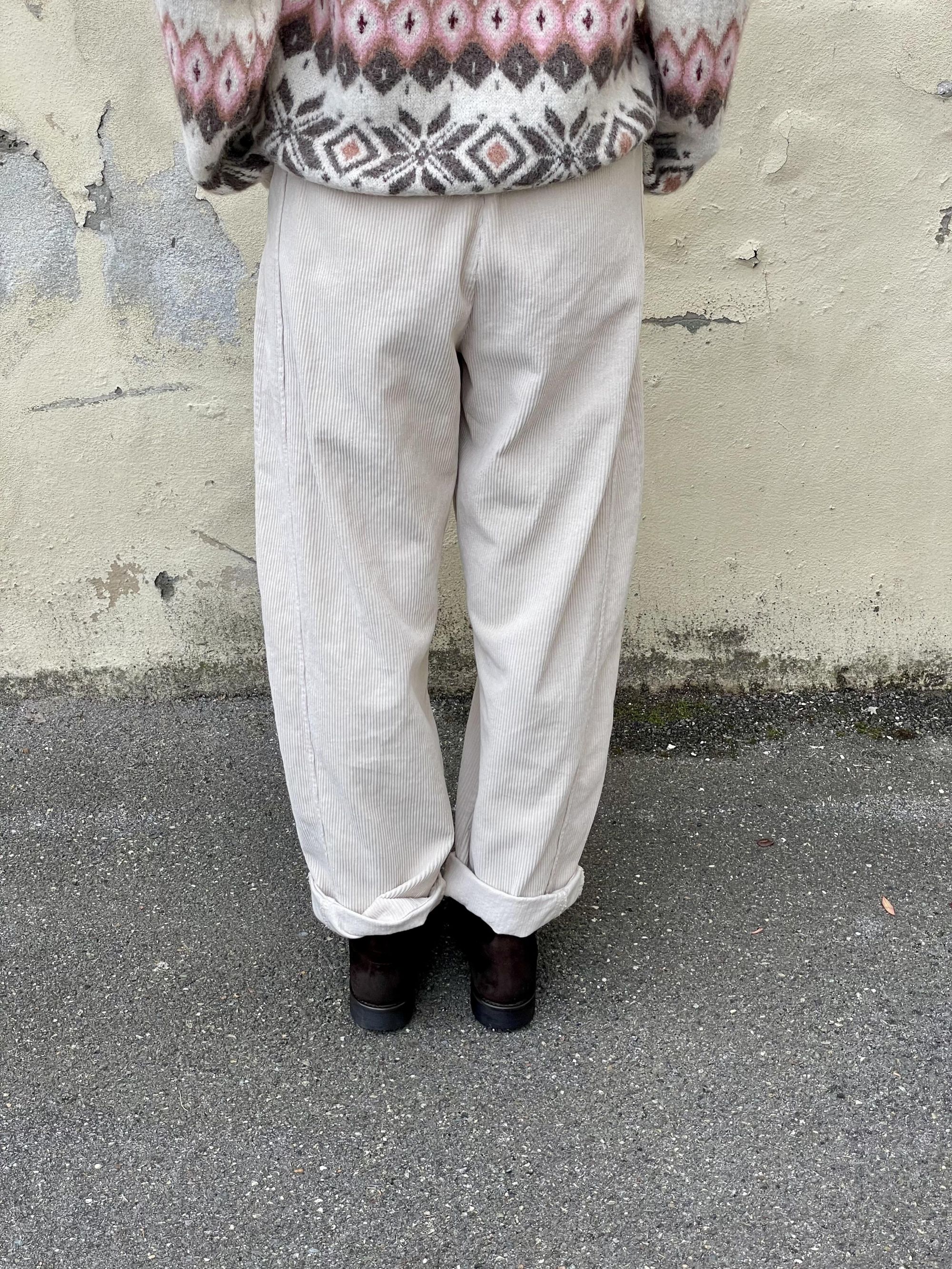 SUSY MIX - PANTALONE A OVETTO IN VELLUTO A COSTE COLOR LATTE ART. 59054P