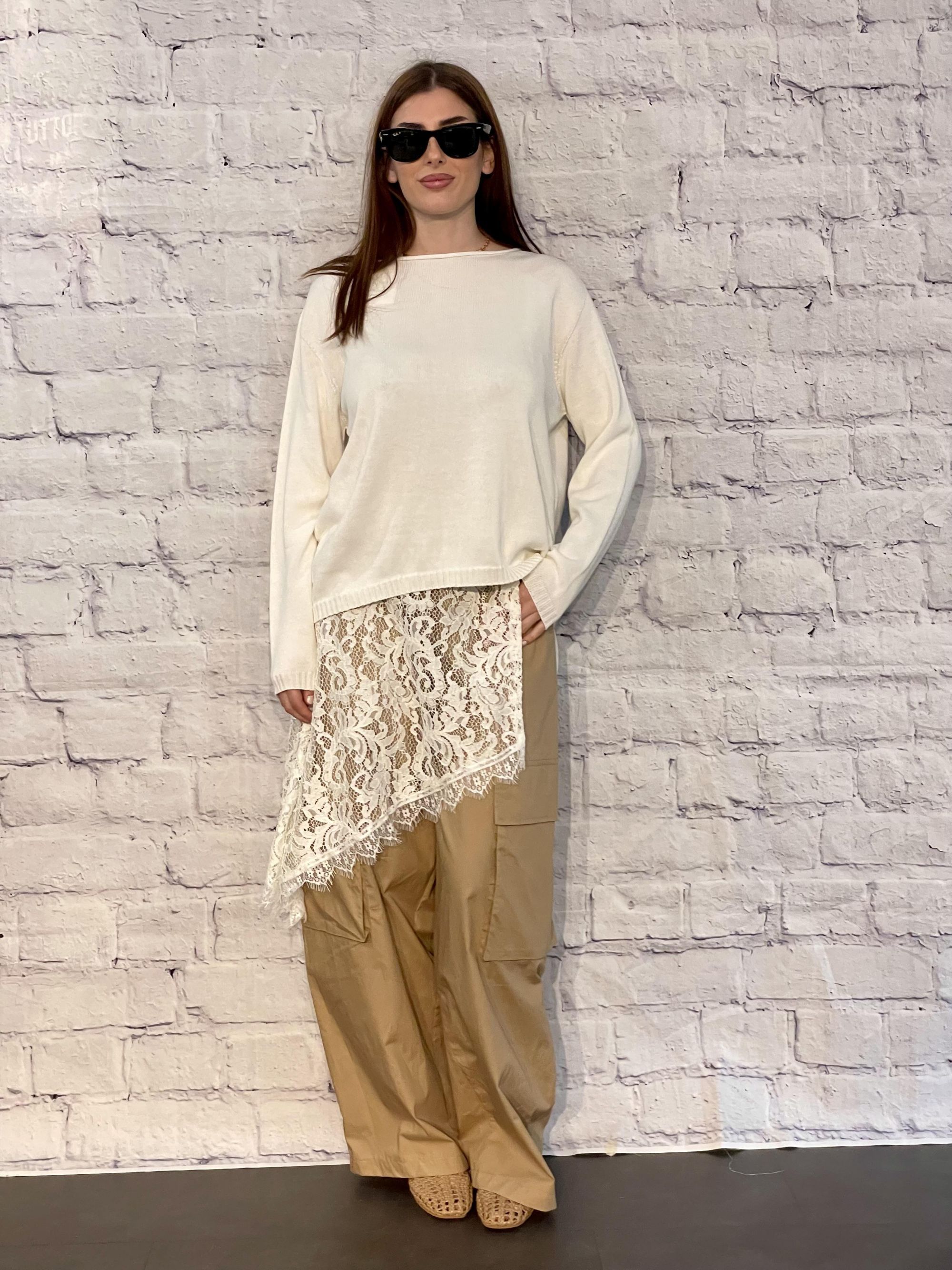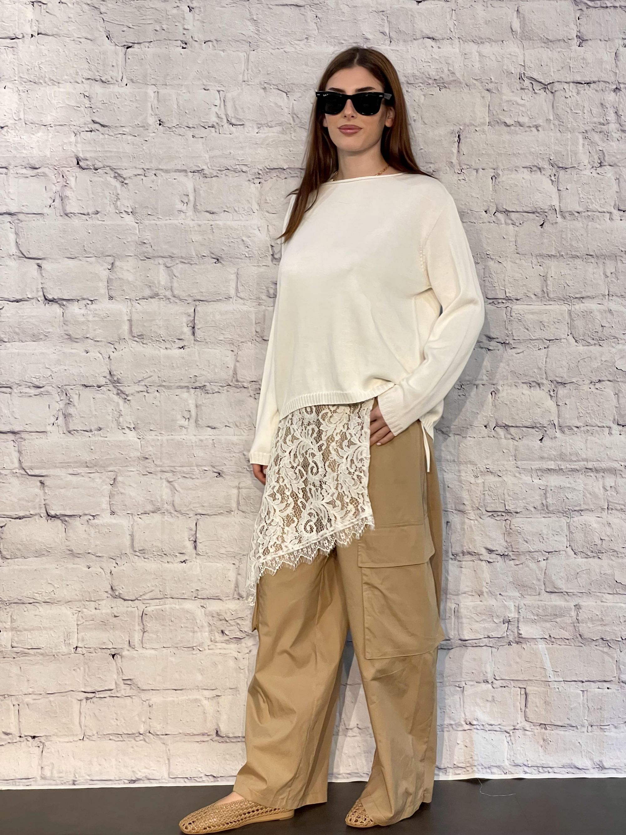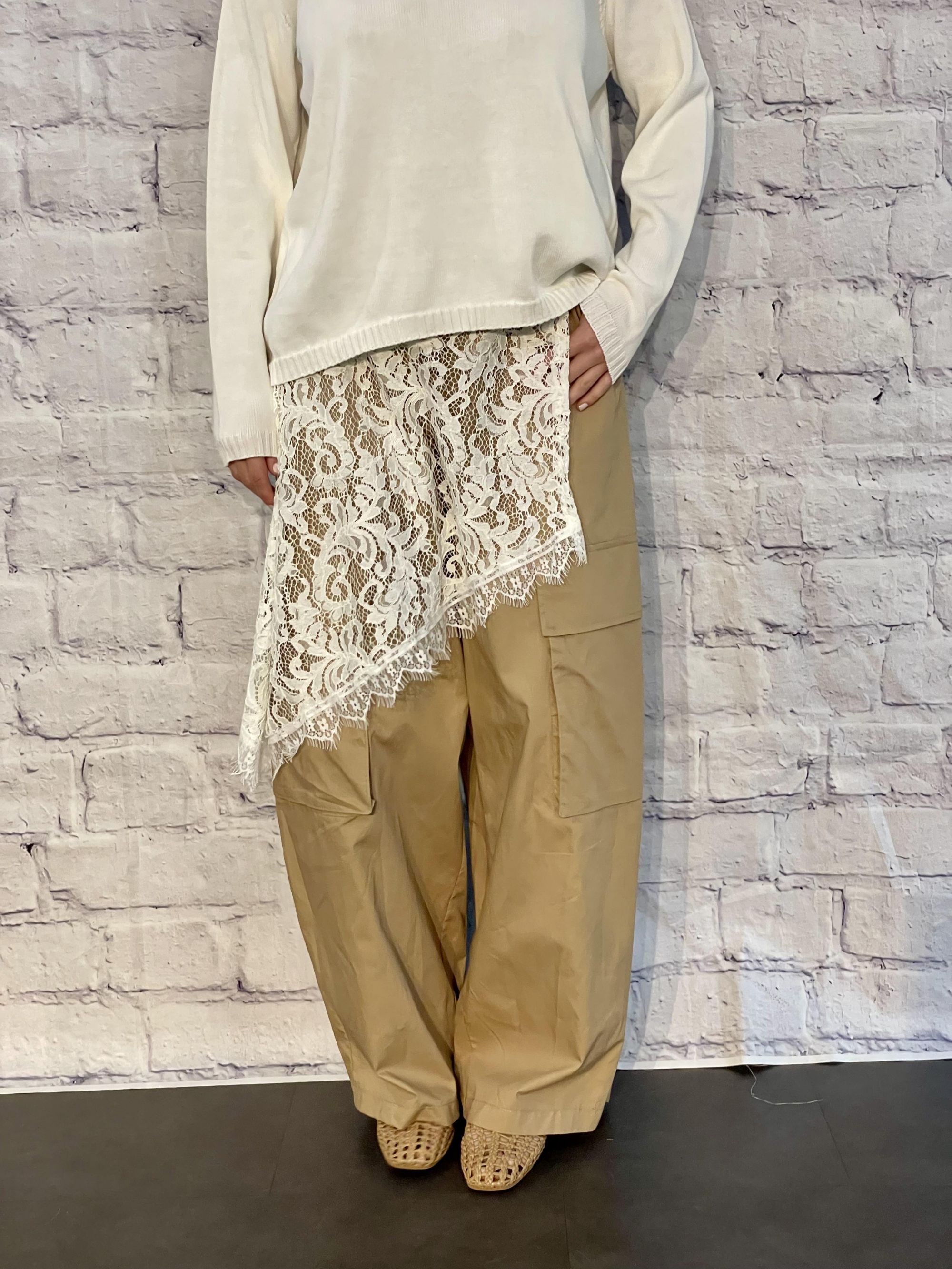 SUSY MIX - PANTALONE BEIGE CON TASCONI E PAREO IN PIZZO ART. 134P669PE26R