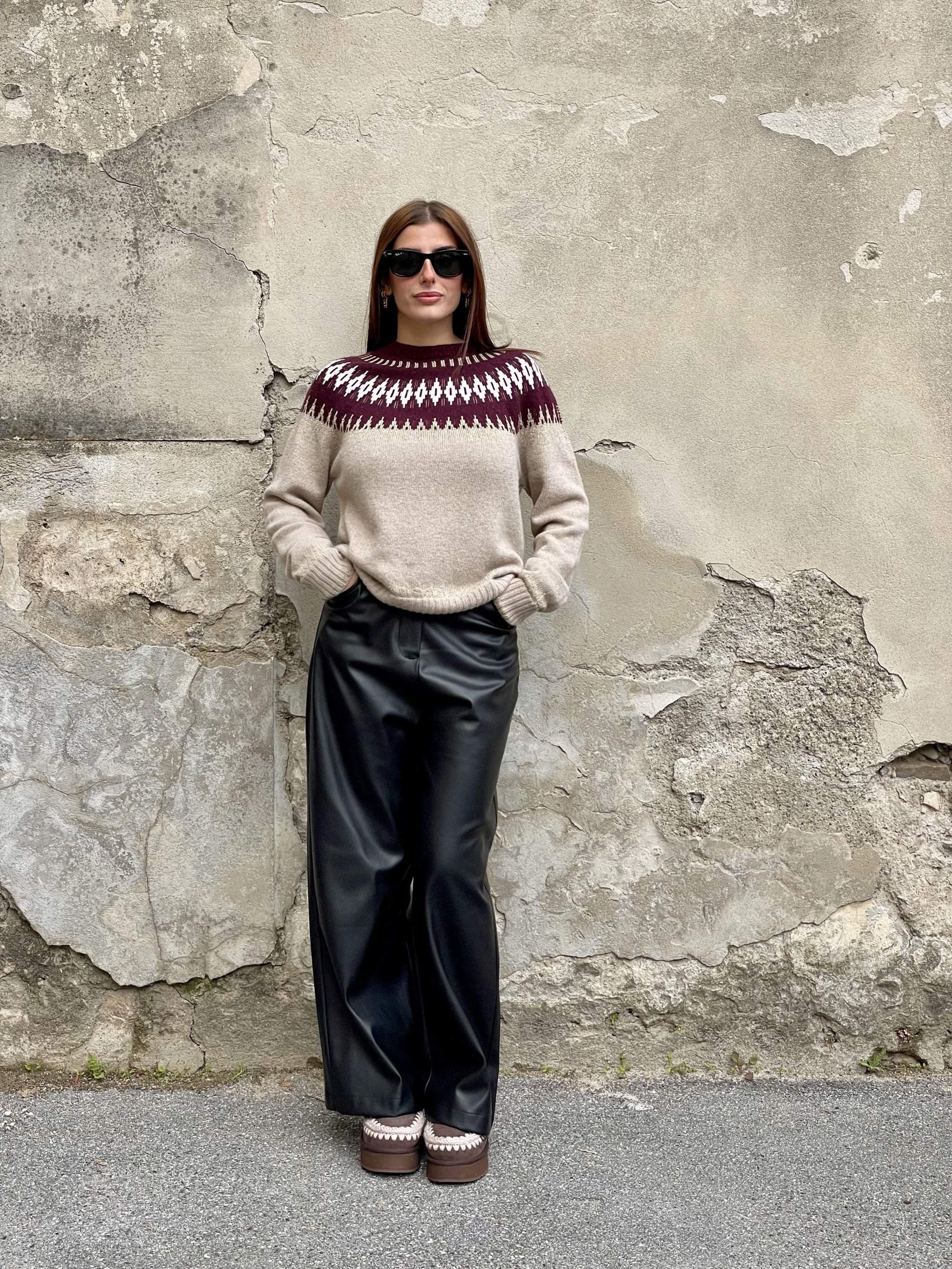 TENSIONE IN - PANTALONE BARREL IN ECOPELLE BORDEAUX ART. 225216