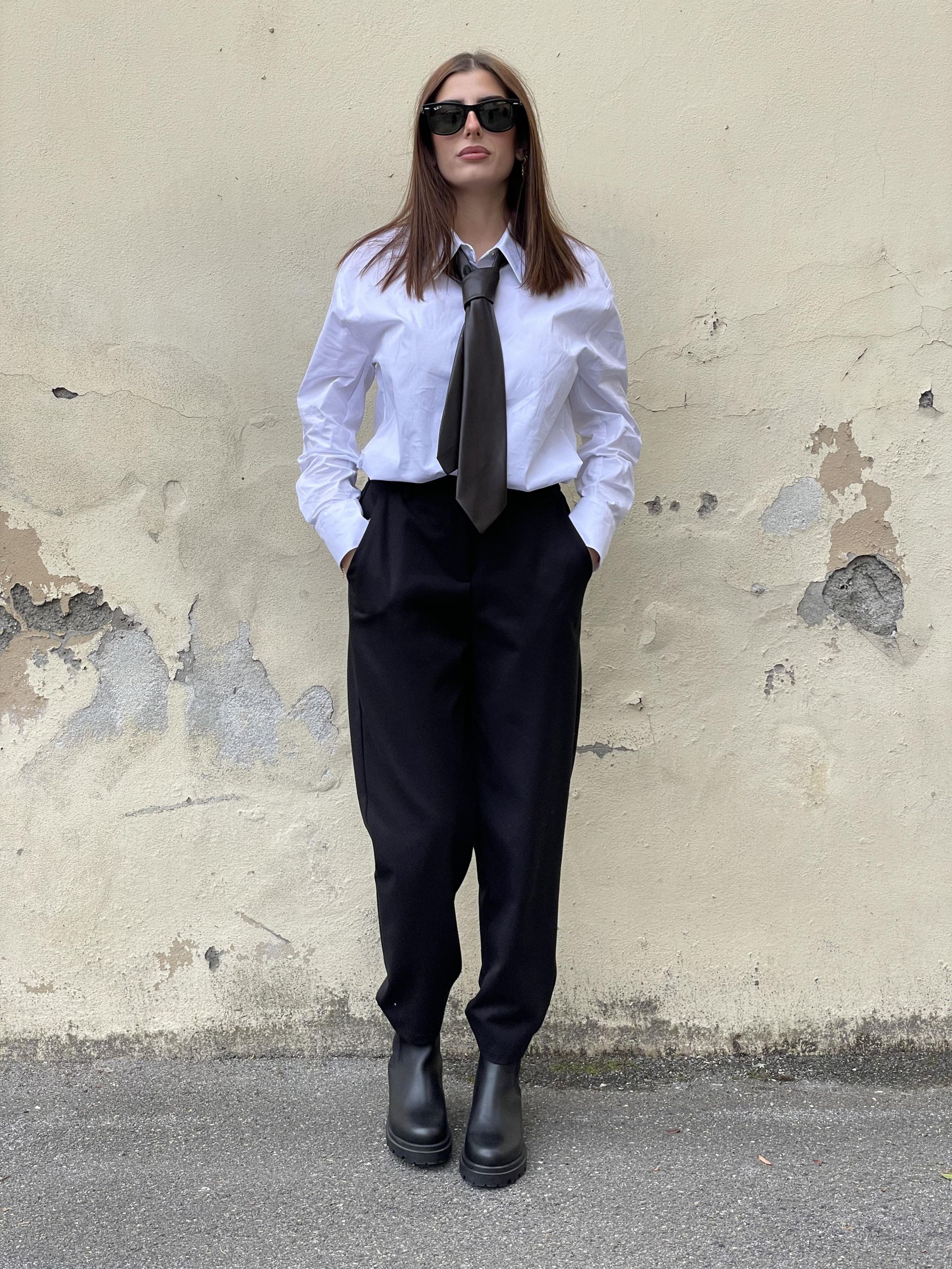 TENSIONE IN - PANTALONE CARROT NERO CON COULISSE DIETRO ART. 26P1576