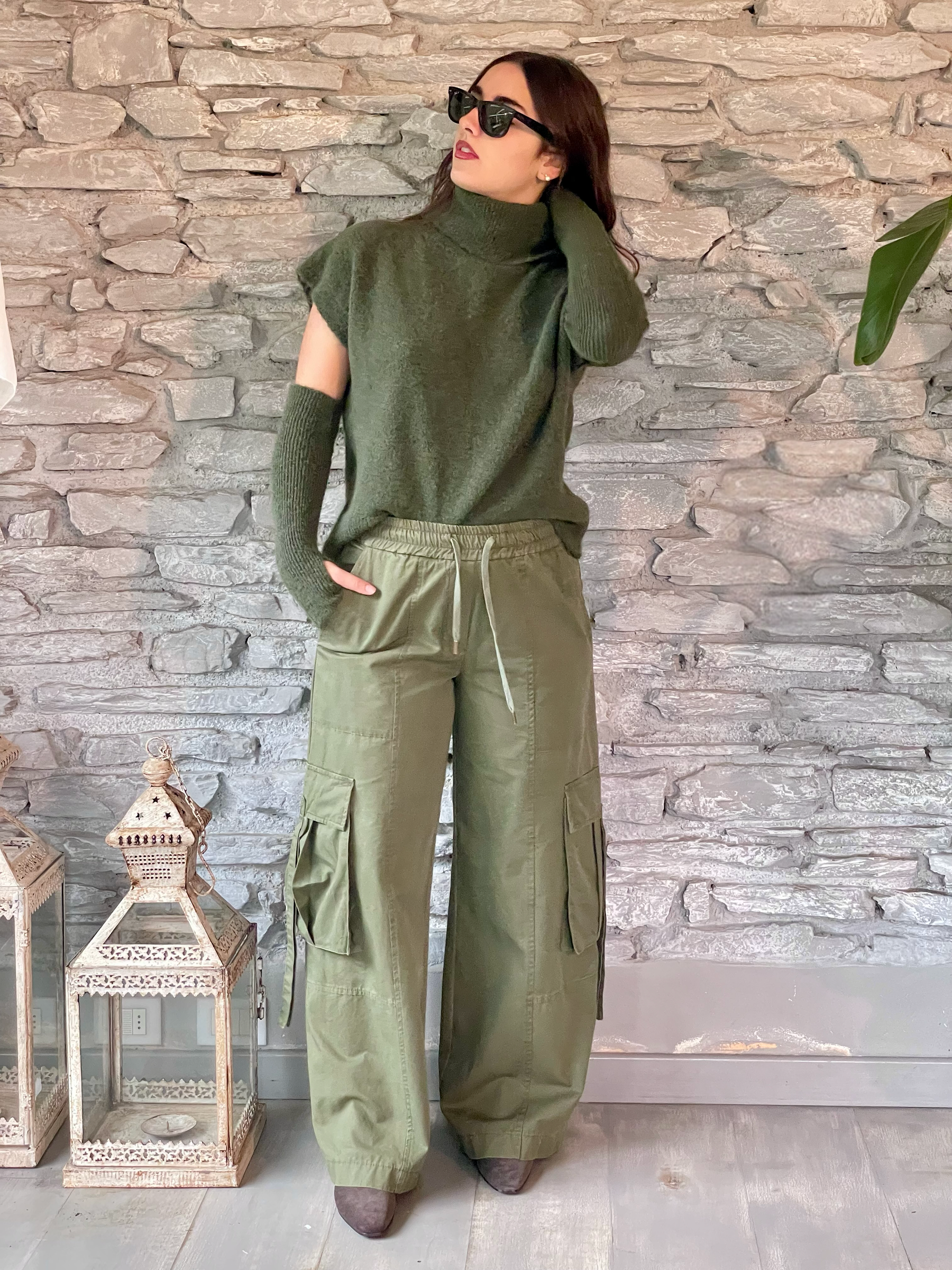 TENSIONE IN - PANTALONE PALAZZO CARGO MILITARE CON TASCONI ART. HM345