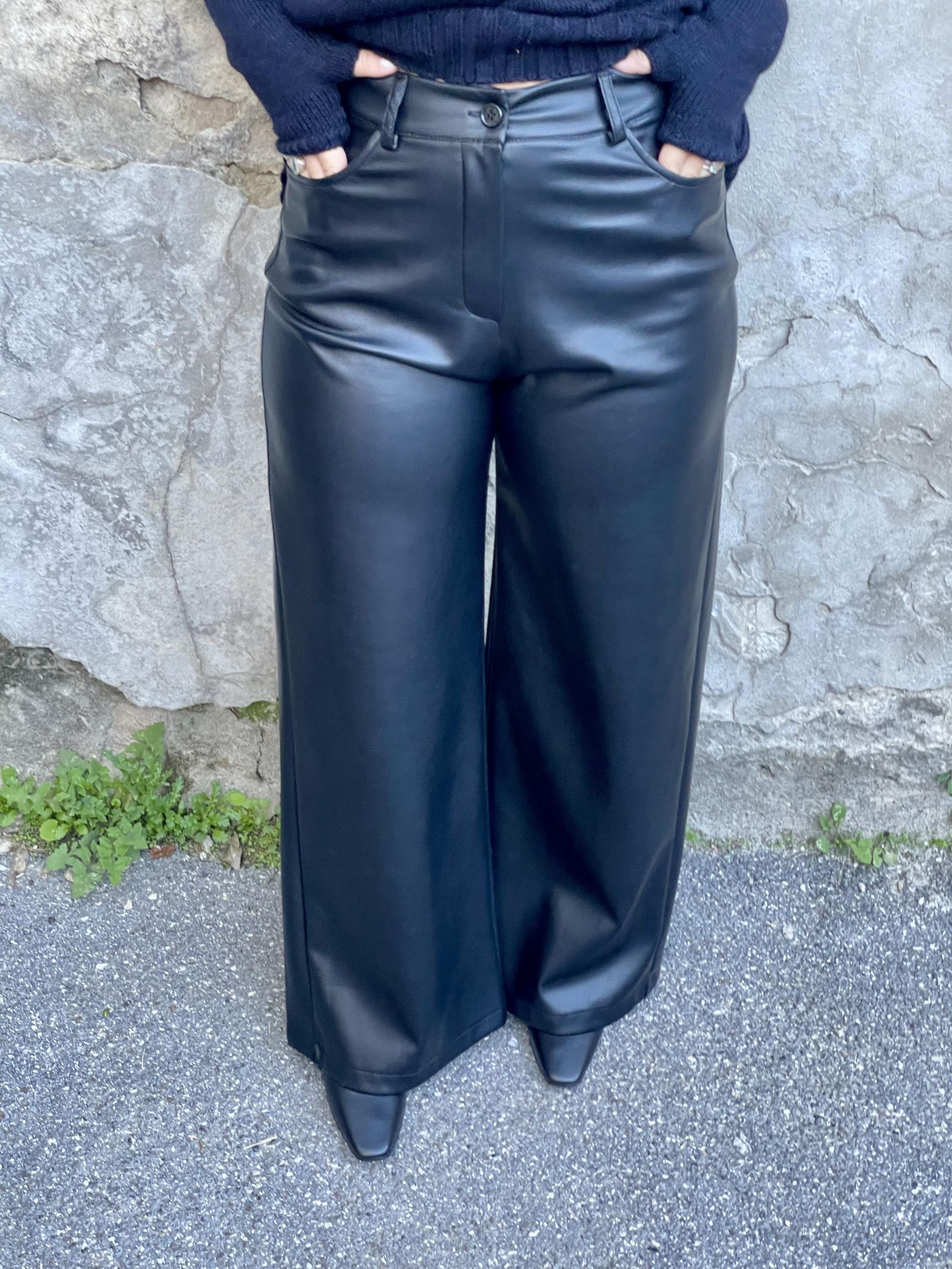 TENSIONE IN - JEANS PALAZZO SUPERPOCKET ECOPELLE LISCIA NERA ART. 224155-25