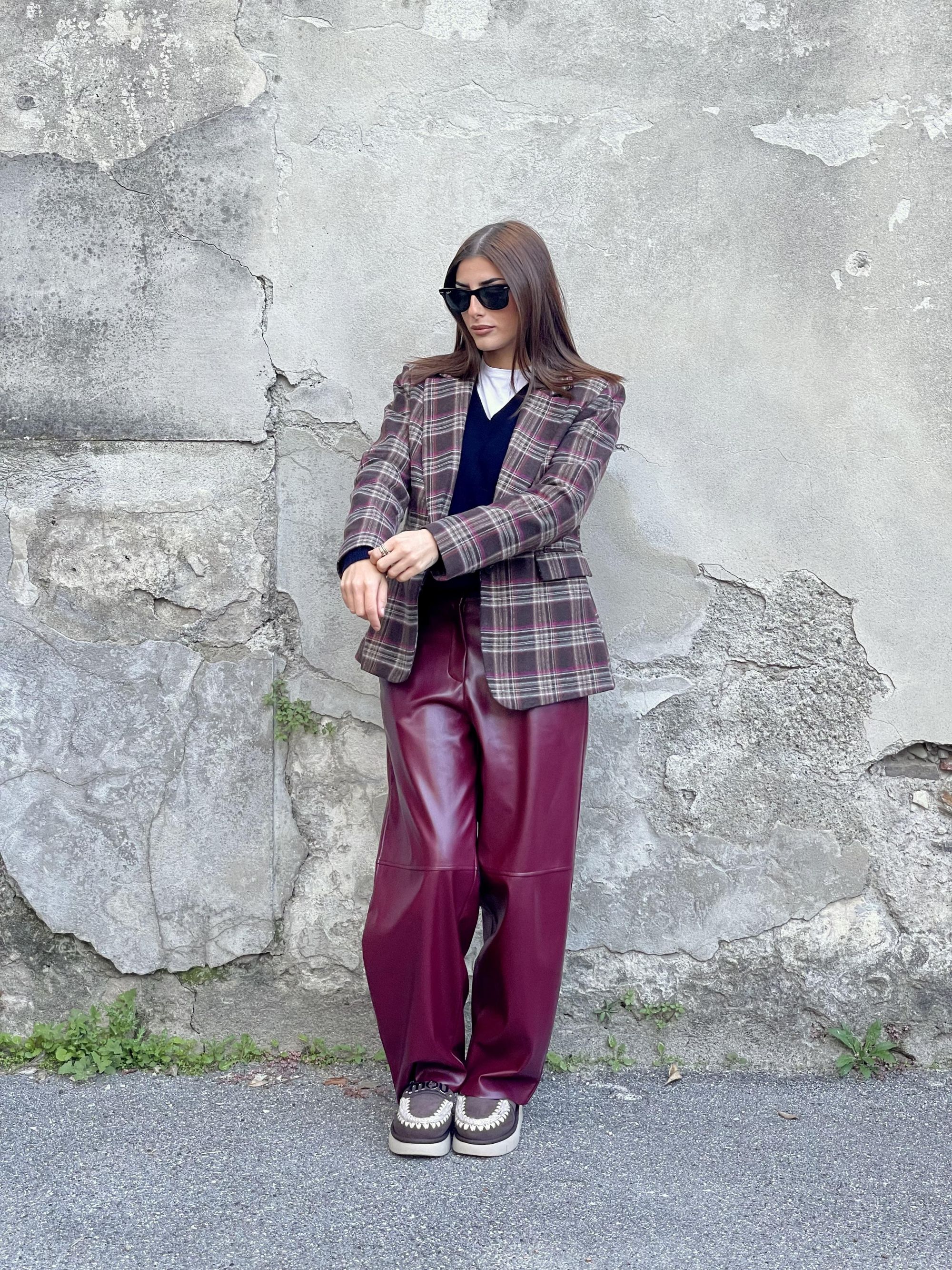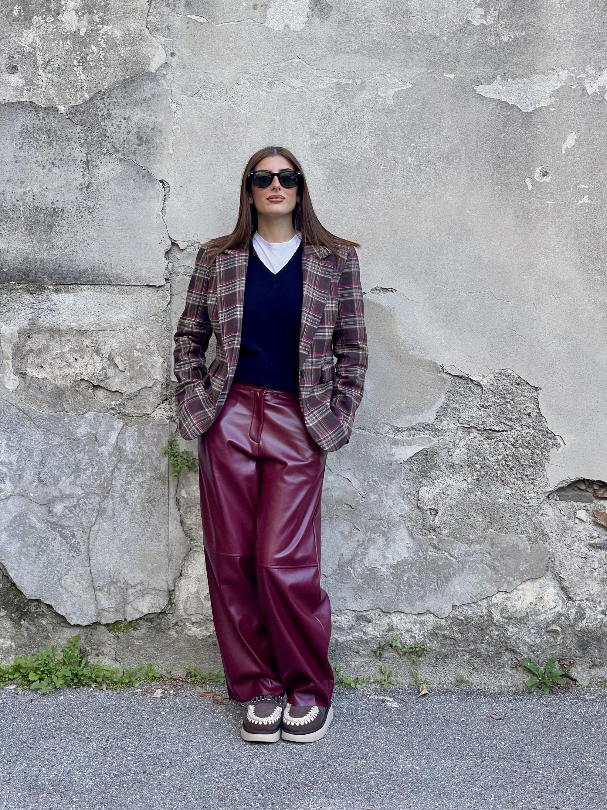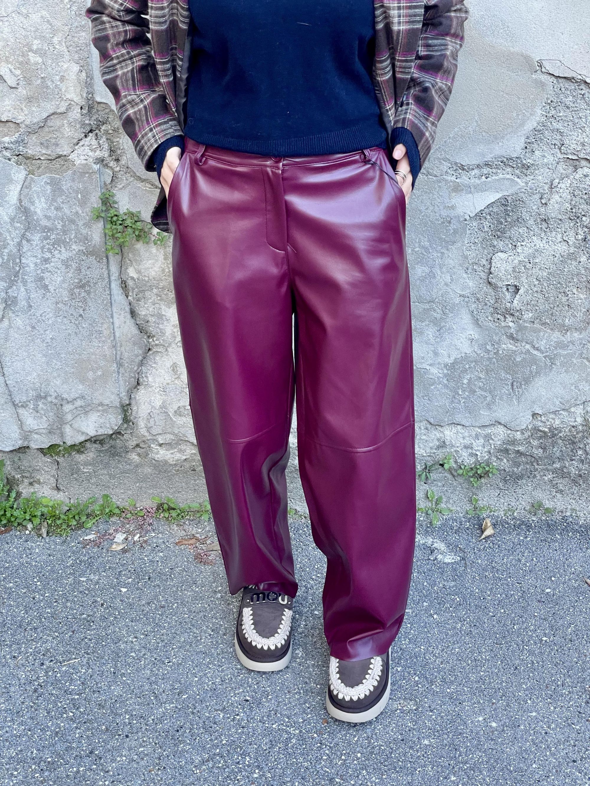 TENSIONE IN - PANTALONE BARREL IN ECOPELLE BORDEAUX ART. 225216